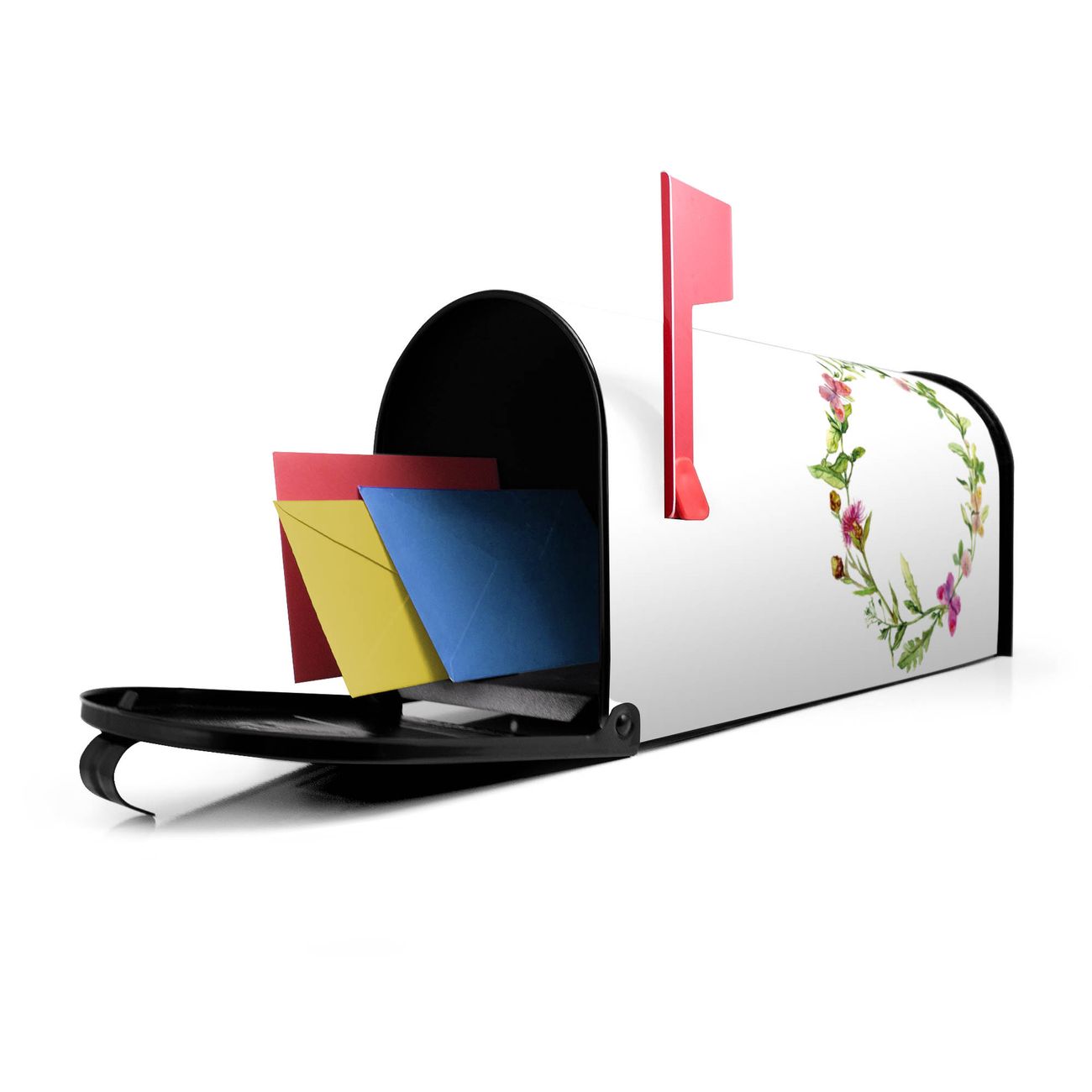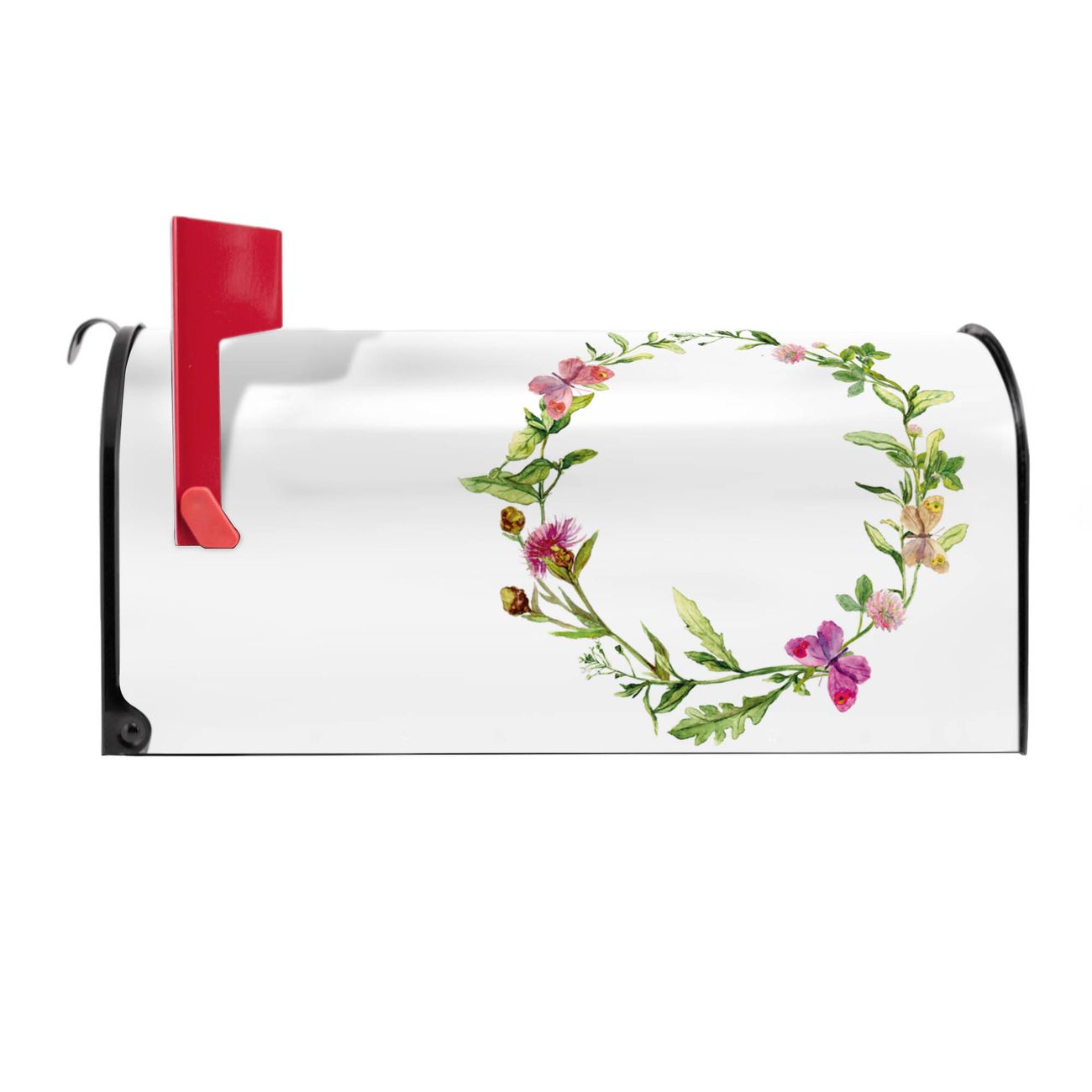 Unser amerikanischer Briefkasten mit dem Motiv Aquarell Blumenring hat ein sehr ansprechendes und ausgefallenes Design, ist in der Grundfarbe weiß, grün oder schwarz erhältlich. Damit entlocken Sie Ihren Nachbarn und dem Postboten immer wieder ein Lächeln. Die Mailbox ist ein Original Import aus Mississippi USA und wird von unserer kleinen Manufaktur in Sachsen von Hand veredelt. Die US-Mailbox bietet ausreichend Platz auch für große Sendungen, eine Fahne die Ihnen Post anzeigt, wetterfestes und äußerst stabiles Material - so macht Post empfangen Freude.