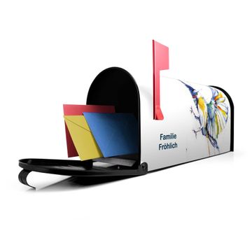 Unser amerikanischer Briefkasten mit dem Motiv Aquarell Vogel hat ein sehr ansprechendes und ausgefallenes Design, ist in der Grundfarbe weiß, grün oder schwarz erhältlich. Damit entlocken Sie Ihren Nachbarn und dem Postboten immer wieder ein Lächeln. Die Mailbox ist ein Original Import aus Mississippi USA und wird von unserer kleinen Manufaktur in Sachsen von Hand veredelt. Die US-Mailbox bietet ausreichend Platz auch für große Sendungen, eine Fahne die Ihnen Post anzeigt, wetterfestes und äußerst stabiles Material - so macht Post empfangen Freude.