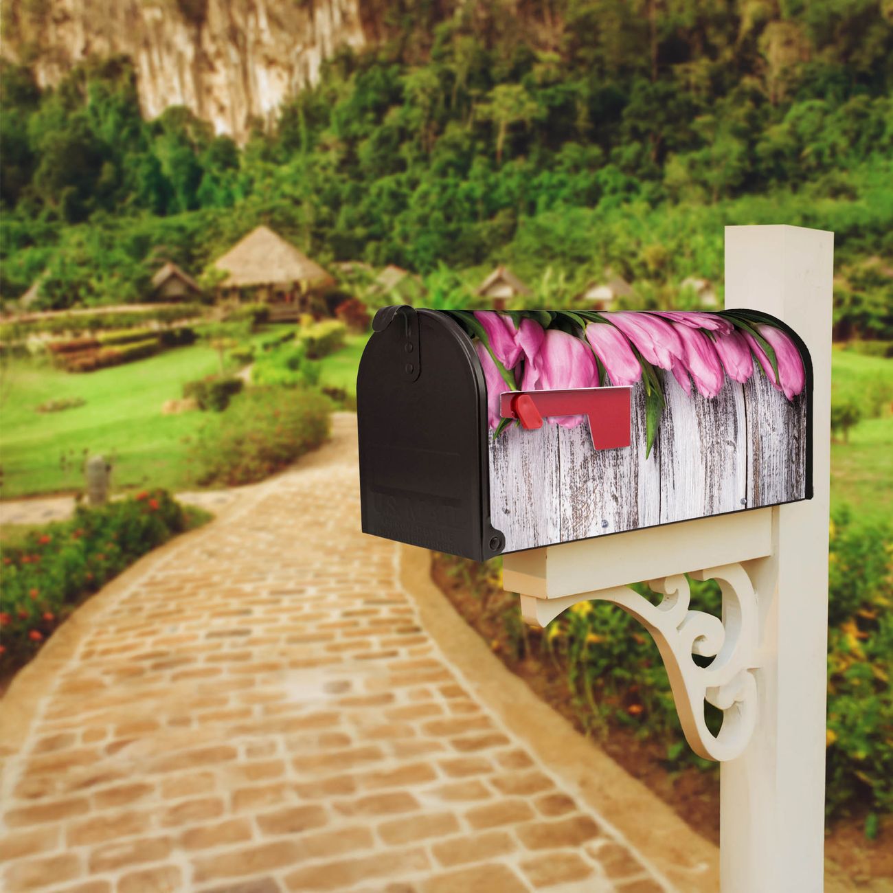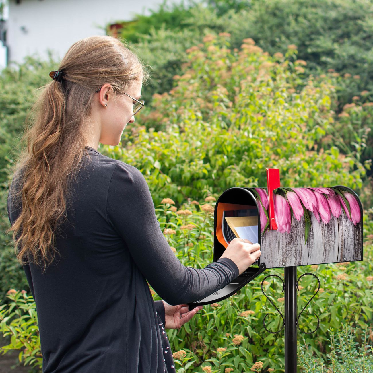 Amerikanischer Briefkasten Holz und Tulpen