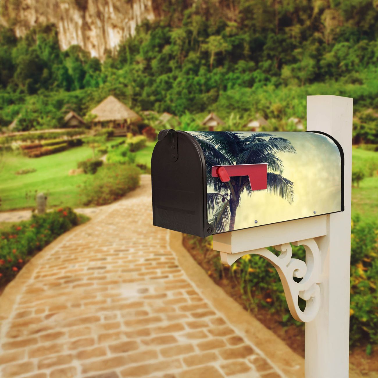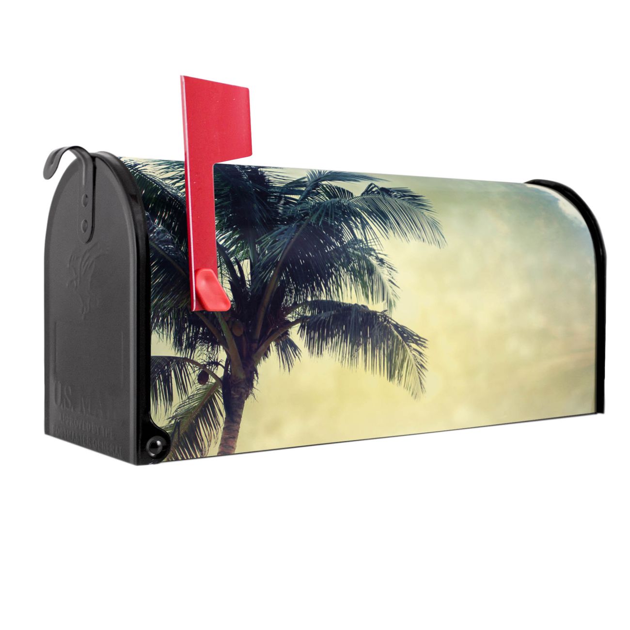 Unser amerikanischer Briefkasten mit dem Motiv Palme am Strand hat ein sehr ansprechendes und ausgefallenes Design, ist in der Grundfarbe weiß, grün oder schwarz erhältlich. Damit entlocken Sie Ihren Nachbarn und dem Postboten immer wieder ein Lächeln. Die Mailbox ist ein Original Import aus Mississippi USA und wird von unserer kleinen Manufaktur in Sachsen von Hand veredelt. Die US-Mailbox bietet ausreichend Platz auch für große Sendungen, eine Fahne die Ihnen Post anzeigt, wetterfestes und äußerst stabiles Material - so macht Post empfangen Freude.