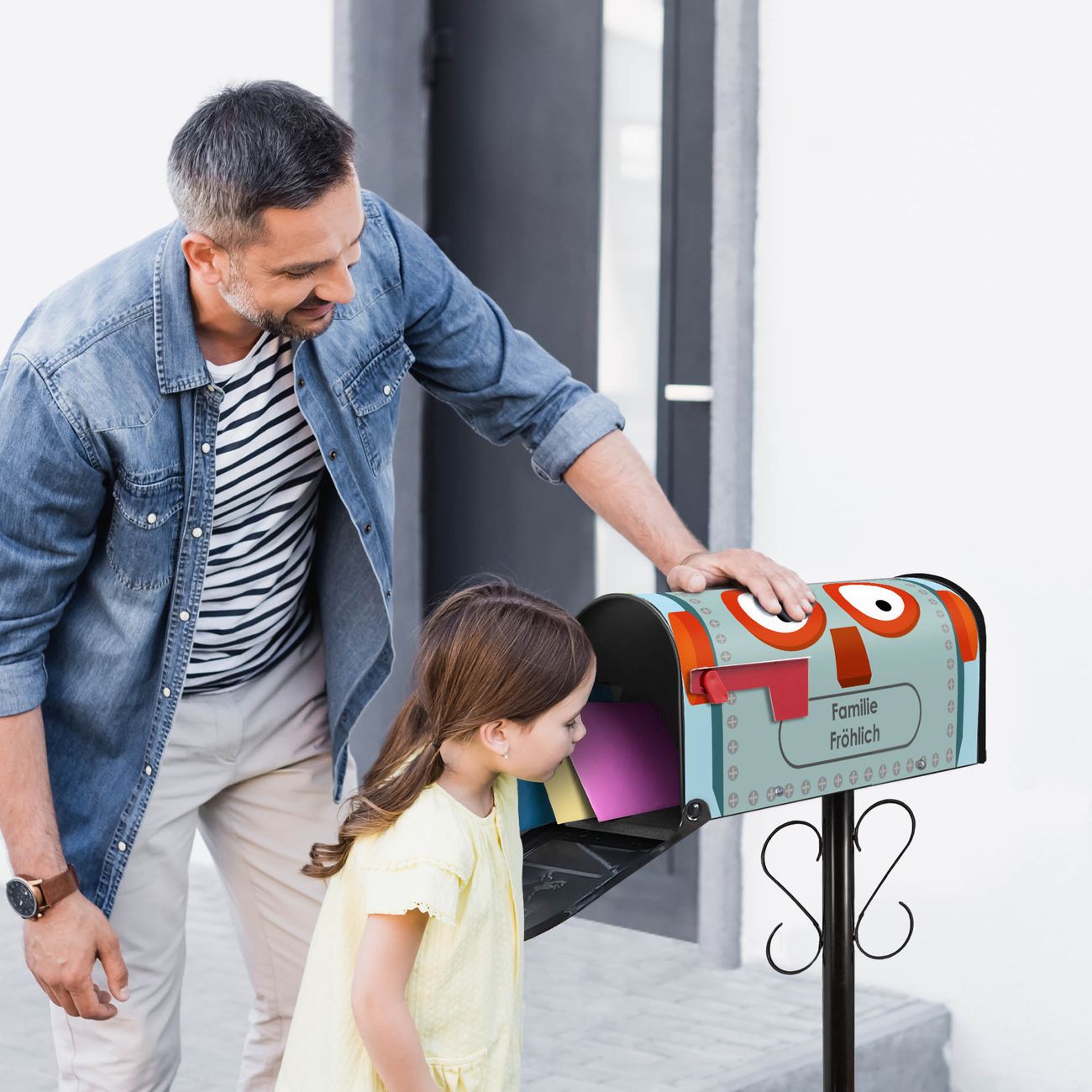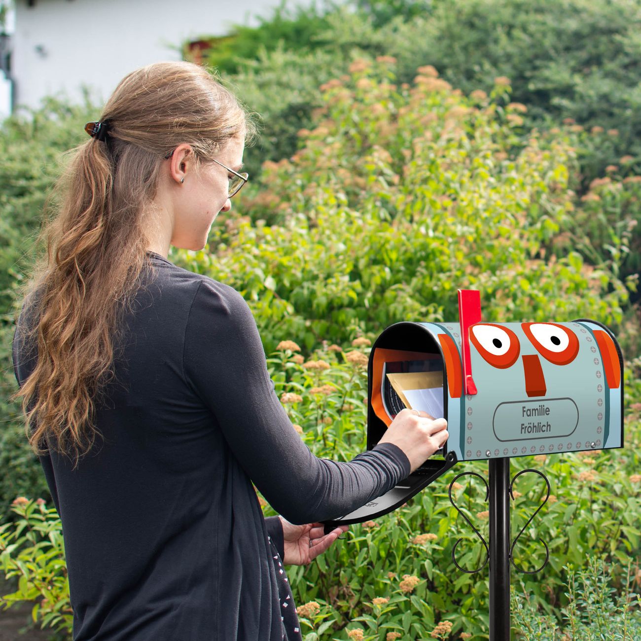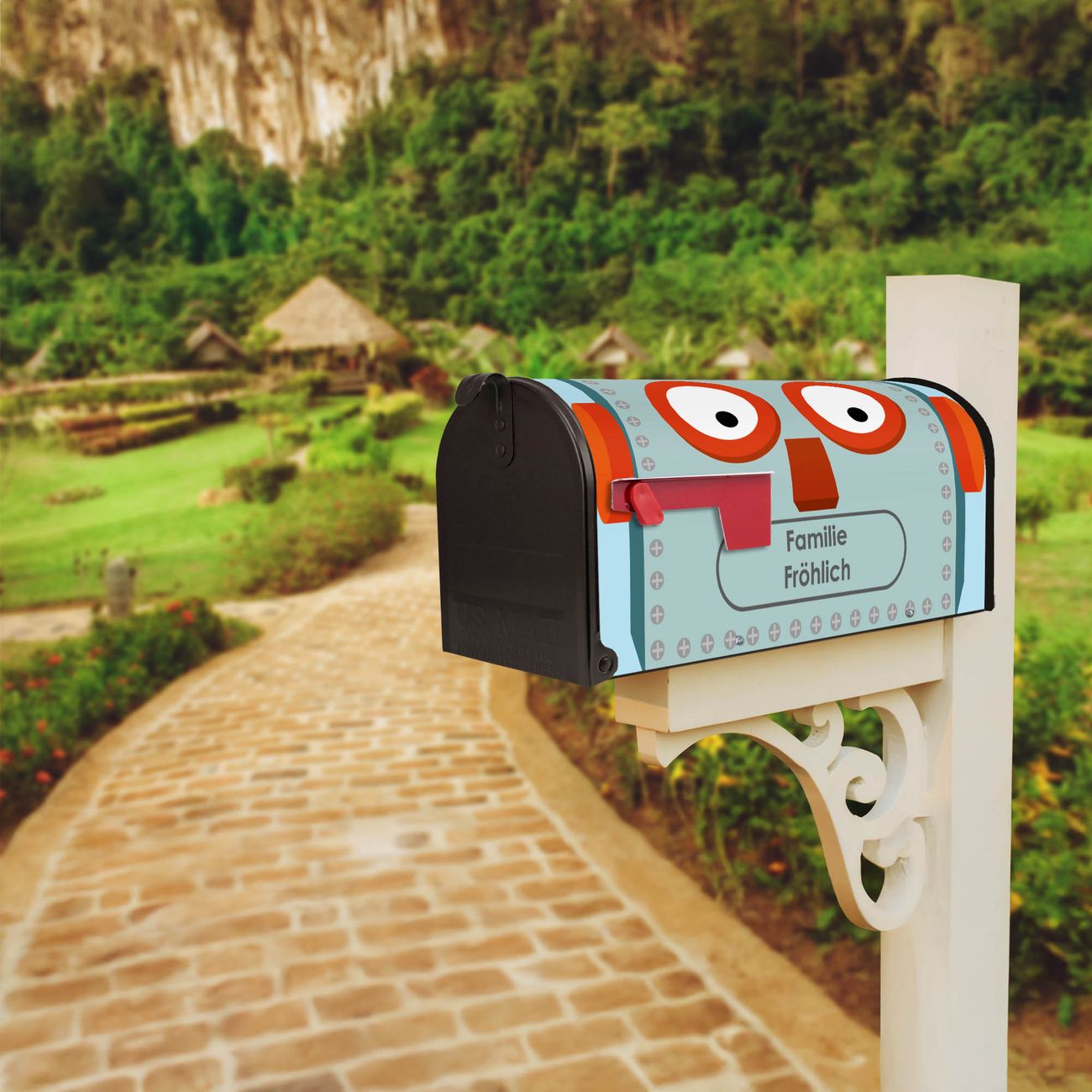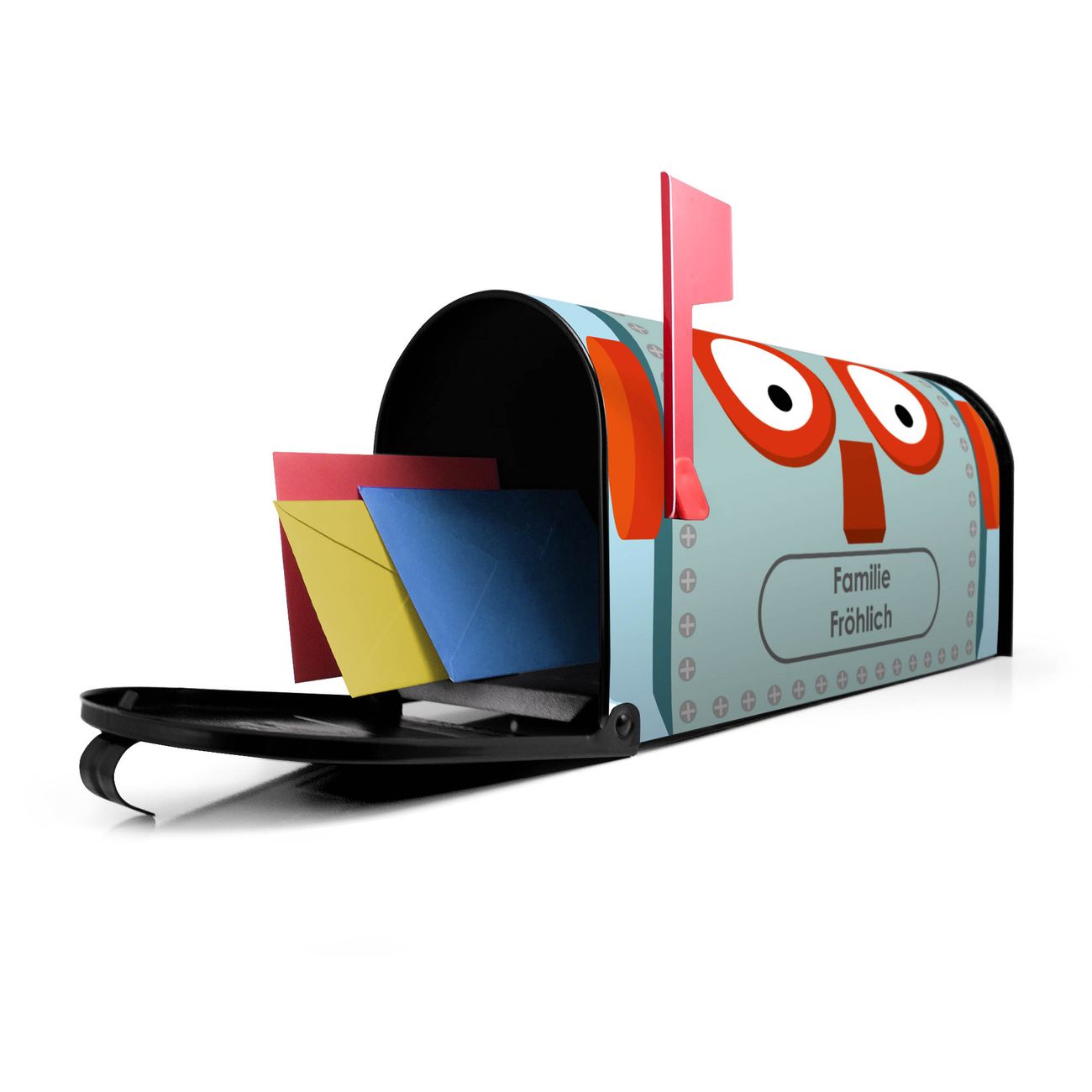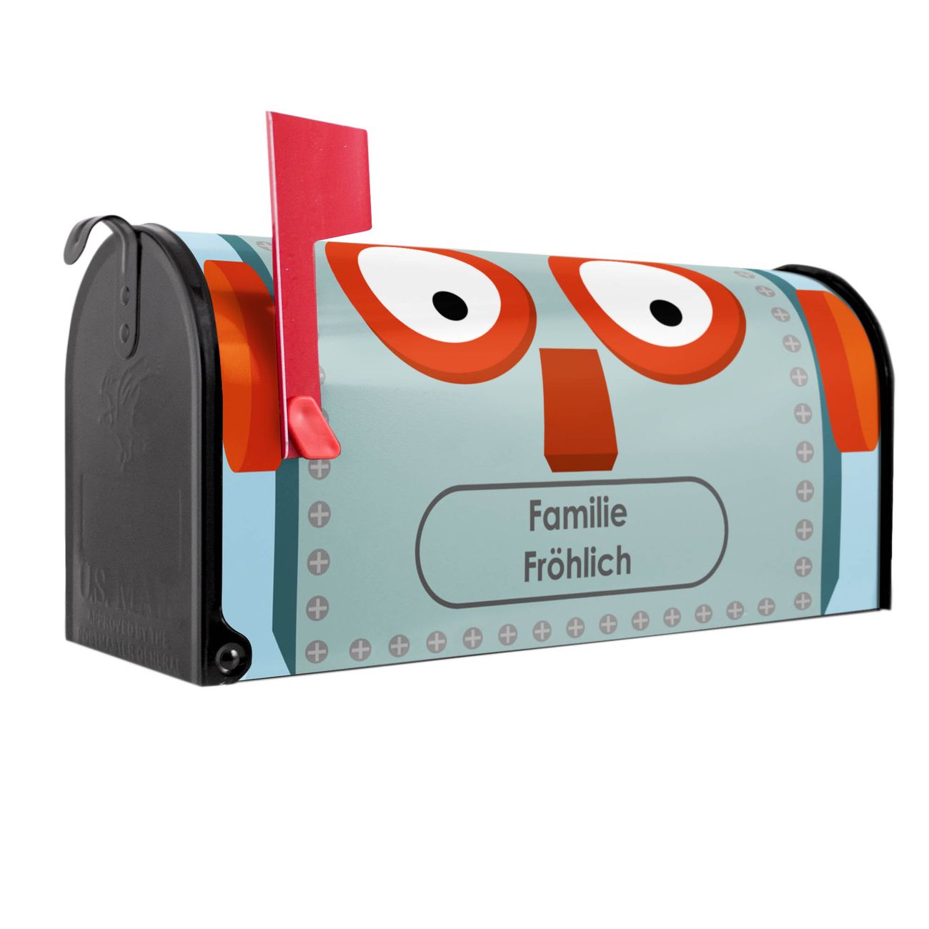 Unser amerikanischer Briefkasten mit dem Motiv Shocked Robot hat ein sehr ansprechendes und ausgefallenes Design, ist in der Grundfarbe weiß, grün oder schwarz erhältlich. Damit entlocken Sie Ihren Nachbarn und dem Postboten immer wieder ein Lächeln. Die Mailbox ist ein Original Import aus Mississippi USA und wird von unserer kleinen Manufaktur in Sachsen von Hand veredelt. Die US-Mailbox bietet ausreichend Platz auch für große Sendungen, eine Fahne die Ihnen Post anzeigt, wetterfestes und äußerst stabiles Material - so macht Post empfangen Freude.