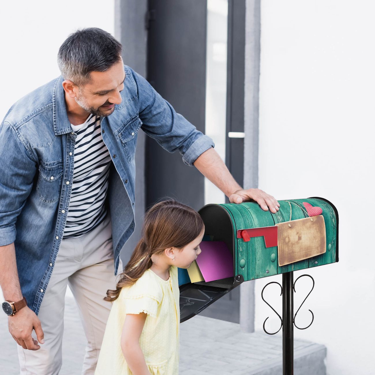 Unser amerikanischer Briefkasten mit dem Motiv Tür mit Herz hat ein sehr ansprechendes und ausgefallenes Design, ist in der Grundfarbe weiß, grün oder schwarz erhältlich. Damit entlocken Sie Ihren Nachbarn und dem Postboten immer wieder ein Lächeln. Die Mailbox ist ein Original Import aus Mississippi USA und wird von unserer kleinen Manufaktur in Sachsen von Hand veredelt. Die US-Mailbox bietet ausreichend Platz auch für große Sendungen, eine Fahne die Ihnen Post anzeigt, wetterfestes und äußerst stabiles Material - so macht Post empfangen Freude.