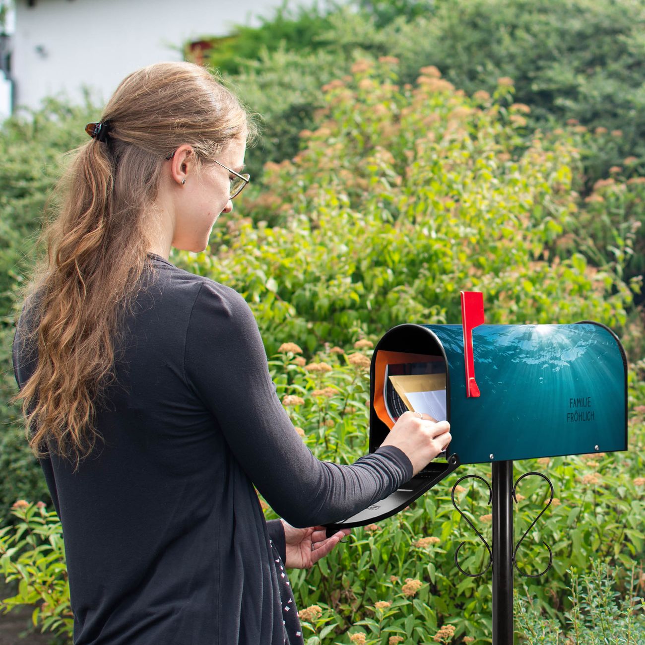 Unser amerikanischer Briefkasten mit dem Motiv Unter der Oberfläche hat ein sehr ansprechendes und ausgefallenes Design, ist in der Grundfarbe weiß, grün oder schwarz erhältlich. Damit entlocken Sie Ihren Nachbarn und dem Postboten immer wieder ein Lächeln. Die Mailbox ist ein Original Import aus Mississippi USA und wird von unserer kleinen Manufaktur in Sachsen von Hand veredelt. Die US-Mailbox bietet ausreichend Platz auch für große Sendungen, eine Fahne die Ihnen Post anzeigt, wetterfestes und äußerst stabiles Material - so macht Post empfangen Freude.