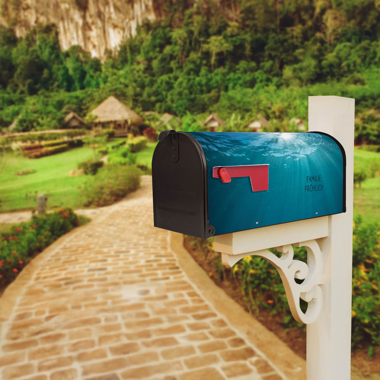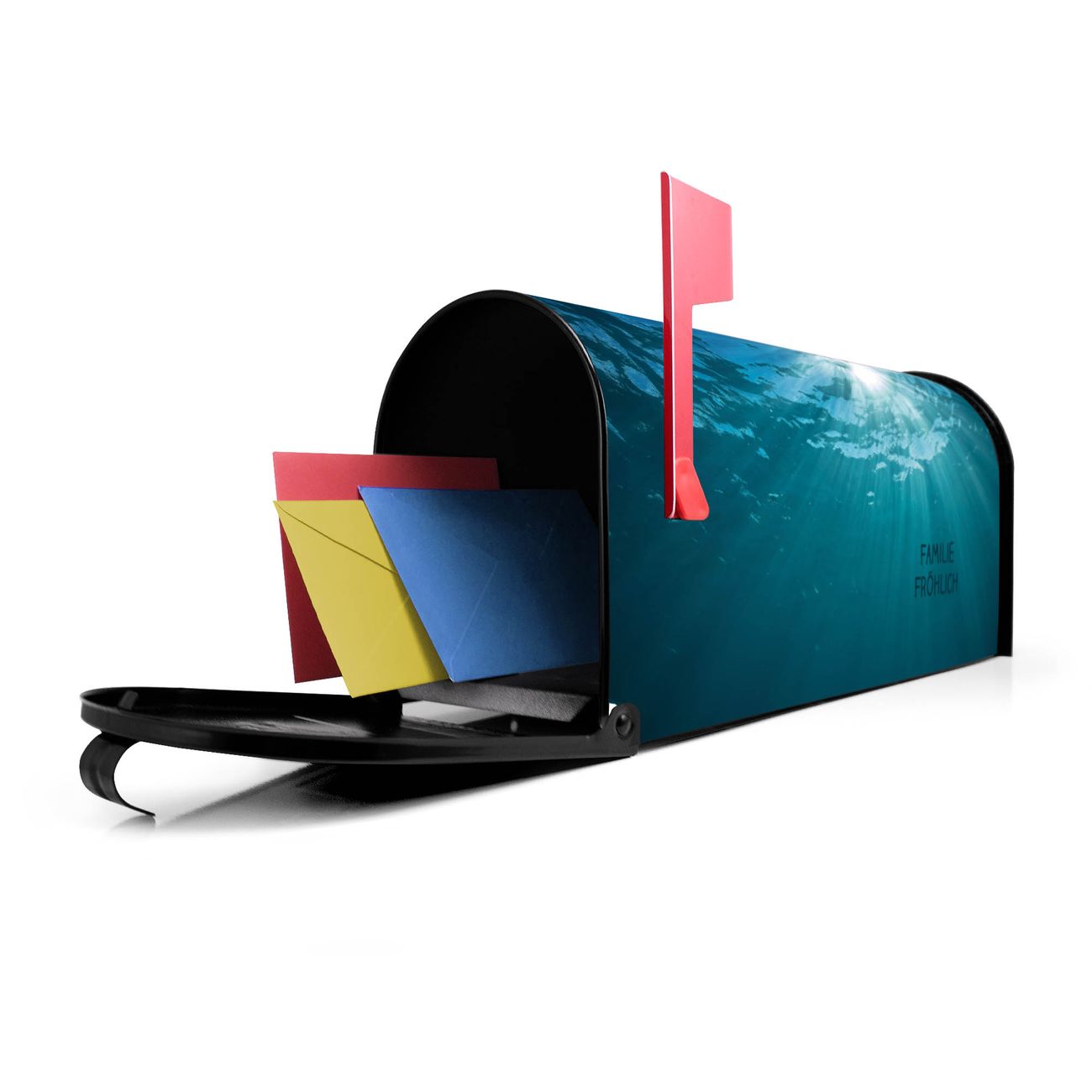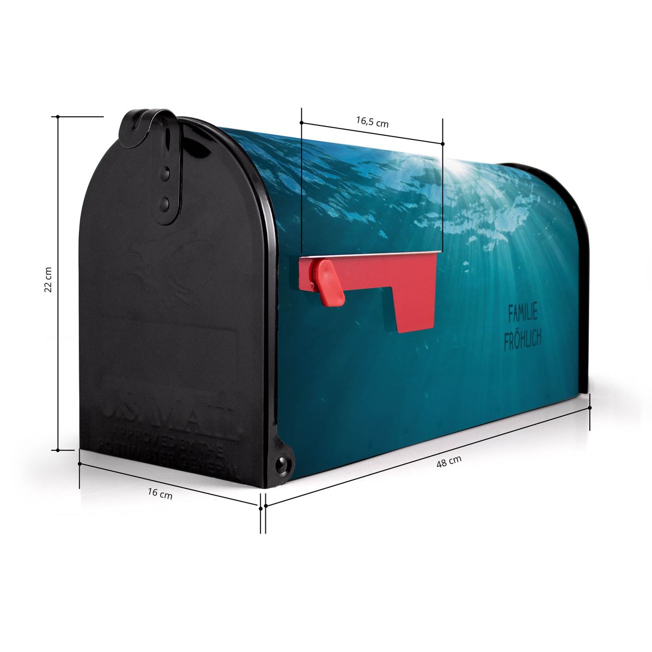 Der amerikanische Briefkasten von banjado mit Unter der Oberfläche Motiv bietet Ihnen ausreichend Fassungsvermögen, um große A4 Sendungen und Zeitschriften zu empfangen. Die typisch amerikanische rote Fahne zeigt Ihnen an, wenn Sie Post erhalten haben. Die US-Mailbox besteht aus verzinktem Stahlblech welches lackiert wurde und ist 48 x 22 x 16 CM (BxHxT) groß. Die Folie mit Motiv Unter der Oberfläche besteht aus einer wetter- und UV-resistenten Folie, die mit einem Schutzlaminat überzogen ist, sodass die US Mailbox zusätzlich vor Kratzern geschützt ist. An der Unterkante sind 4 Löcher je Seite um die Mailbox, typisch amerikanisch, an einem Holzpfahl oder einem Zaun zu befestigen. Auf Wunsch können Sie bei uns den passenden Standfuß oder die passende Wandhalterung kaufen um die US-Mailbox sicher zu befestigen. Wir bieten Ihnen ebenfalls Namensschilder, bereits beschriftet oder frei zu beschriften, und verschiedene selbst gestaltete Bitte-Keine-Werbung-Aufkleber.