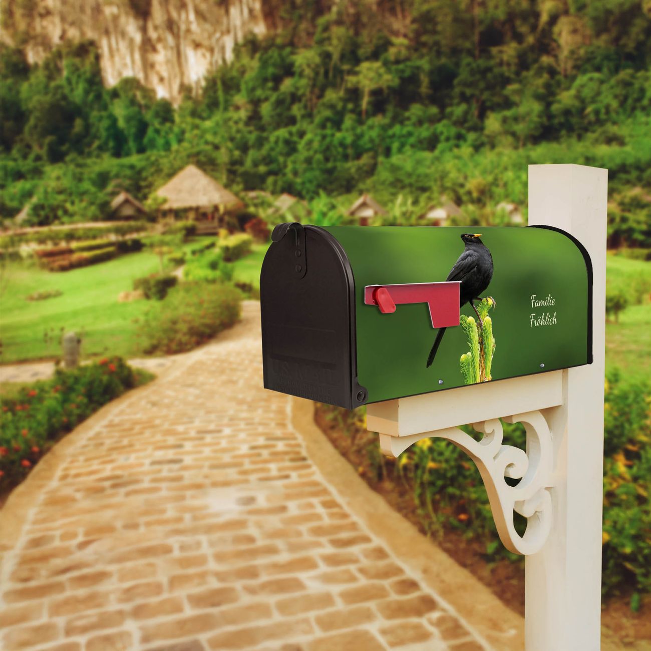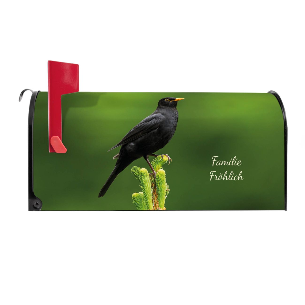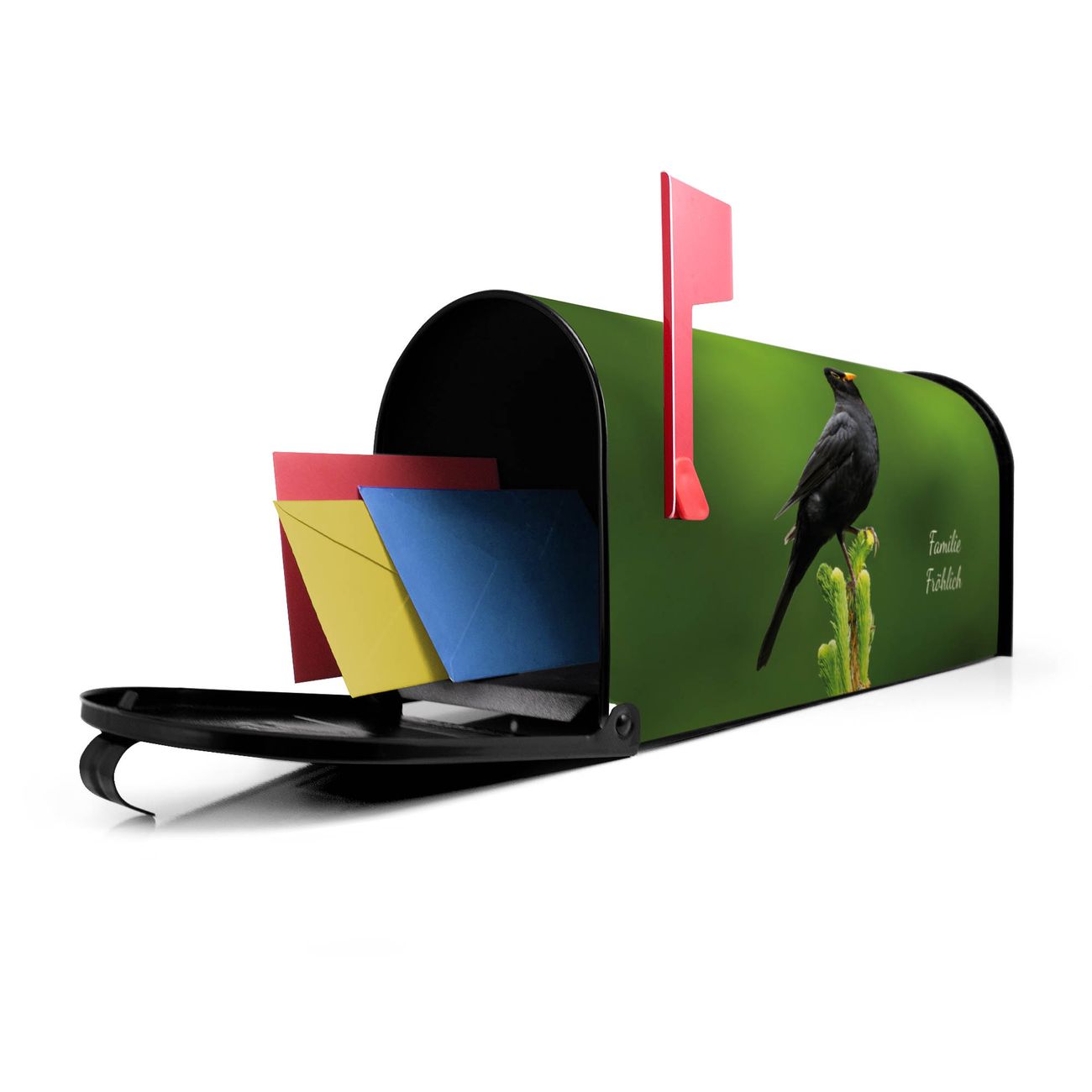 Der amerikanische Briefkasten von banjado mit Vogel auf Tannenzweig Motiv bietet Ihnen ausreichend Fassungsvermögen, um große A4 Sendungen und Zeitschriften zu empfangen. Die typisch amerikanische rote Fahne zeigt Ihnen an, wenn Sie Post erhalten haben. Die US-Mailbox besteht aus verzinktem Stahlblech welches lackiert wurde und ist 48 x 22 x 16 CM (BxHxT) groß. Die Folie mit Motiv Vogel auf Tannenzweig besteht aus einer wetter- und UV-resistenten Folie, die mit einem Schutzlaminat überzogen ist, sodass die US Mailbox zusätzlich vor Kratzern geschützt ist. An der Unterkante sind 4 Löcher je Seite um die Mailbox, typisch amerikanisch, an einem Holzpfahl oder einem Zaun zu befestigen. Auf Wunsch können Sie bei uns den passenden Standfuß oder die passende Wandhalterung kaufen um die US-Mailbox sicher zu befestigen. Wir bieten Ihnen ebenfalls Namensschilder, bereits beschriftet oder frei zu beschriften, und verschiedene selbst gestaltete Bitte-Keine-Werbung-Aufkleber.
