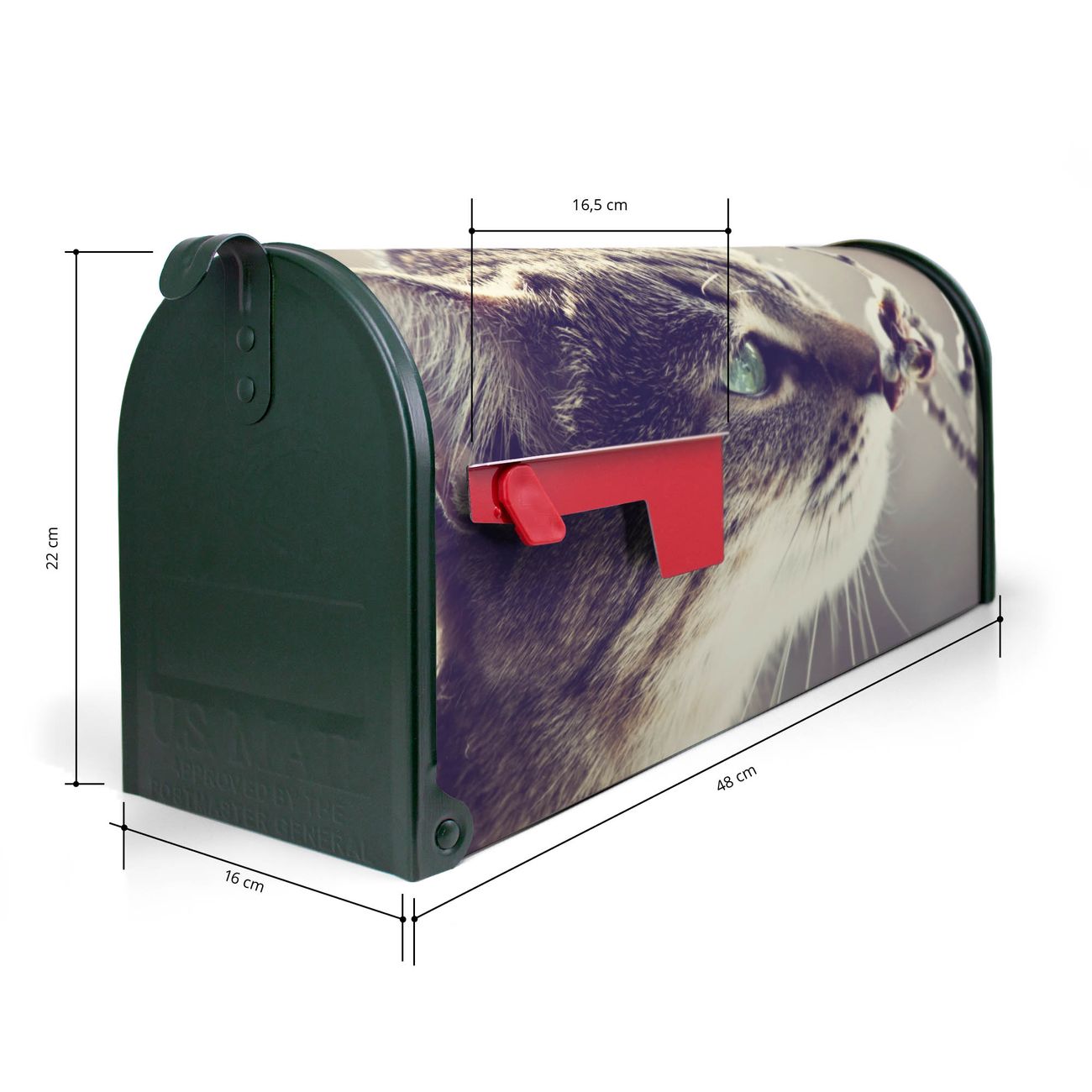 Der amerikanische Briefkasten von banjado mit Weidenkätzchen Motiv bietet Ihnen ausreichend Fassungsvermögen, um große A4 Sendungen und Zeitschriften zu empfangen. Die typisch amerikanische rote Fahne zeigt Ihnen an, wenn Sie Post erhalten haben. Die US-Mailbox besteht aus verzinktem Stahlblech welches lackiert wurde und ist 48 x 22 x 16 CM (BxHxT) groß. Die Folie mit Motiv Weidenkätzchen besteht aus einer wetter- und UV-resistenten Folie, die mit einem Schutzlaminat überzogen ist, sodass die US Mailbox zusätzlich vor Kratzern geschützt ist. An der Unterkante sind 4 Löcher je Seite um die Mailbox, typisch amerikanisch, an einem Holzpfahl oder einem Zaun zu befestigen. Auf Wunsch können Sie bei uns den passenden Standfuß oder die passende Wandhalterung kaufen um die US-Mailbox sicher zu befestigen. Wir bieten Ihnen ebenfalls Namensschilder, bereits beschriftet oder frei zu beschriften, und verschiedene selbst gestaltete Bitte-Keine-Werbung-Aufkleber.