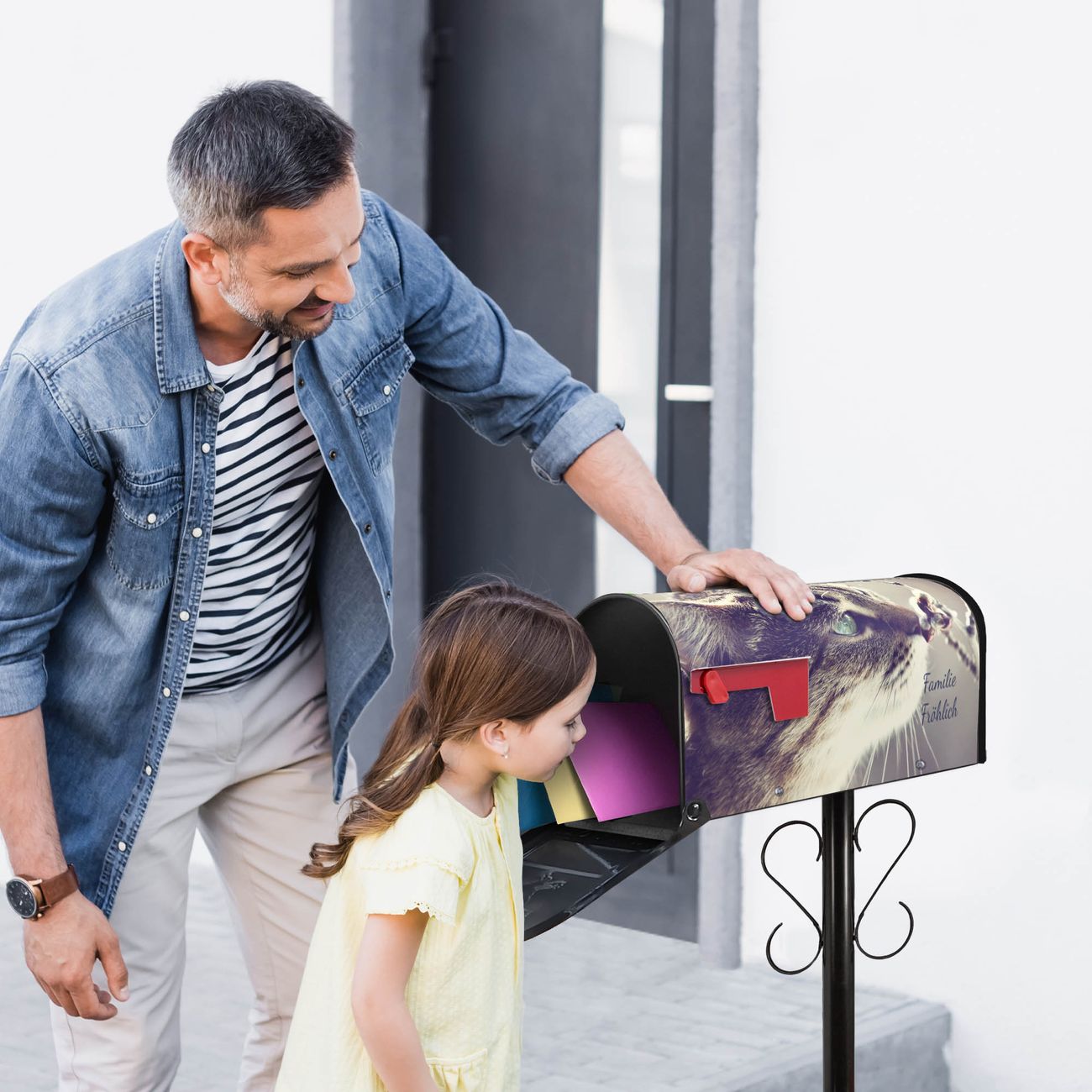 Unser amerikanischer Briefkasten mit dem Motiv Weidenkätzchen hat ein sehr ansprechendes und ausgefallenes Design, ist in der Grundfarbe weiß, grün oder schwarz erhältlich. Damit entlocken Sie Ihren Nachbarn und dem Postboten immer wieder ein Lächeln. Die Mailbox ist ein Original Import aus Mississippi USA und wird von unserer kleinen Manufaktur in Sachsen von Hand veredelt. Die US-Mailbox bietet ausreichend Platz auch für große Sendungen, eine Fahne die Ihnen Post anzeigt, wetterfestes und äußerst stabiles Material - so macht Post empfangen Freude.