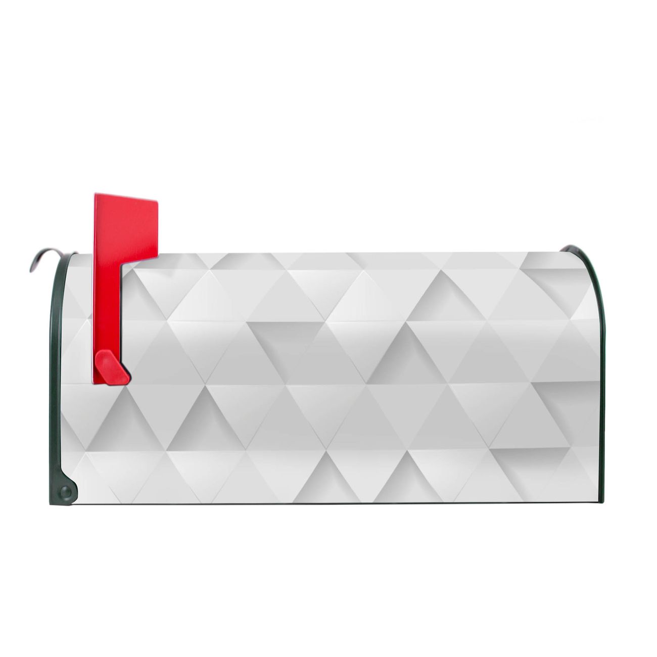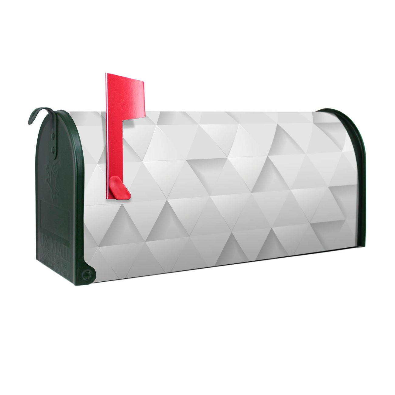 Der amerikanische Briefkasten von banjado mit Weisse Dreiecke Motiv bietet Ihnen ausreichend Fassungsvermögen, um große A4 Sendungen und Zeitschriften zu empfangen. Die typisch amerikanische rote Fahne zeigt Ihnen an, wenn Sie Post erhalten haben. Die US-Mailbox besteht aus verzinktem Stahlblech welches lackiert wurde und ist 48 x 22 x 16 CM (BxHxT) groß. Die Folie mit Motiv Weisse Dreiecke besteht aus einer wetter- und UV-resistenten Folie, die mit einem Schutzlaminat überzogen ist, sodass die US Mailbox zusätzlich vor Kratzern geschützt ist. An der Unterkante sind 4 Löcher je Seite um die Mailbox, typisch amerikanisch, an einem Holzpfahl oder einem Zaun zu befestigen. Auf Wunsch können Sie bei uns den passenden Standfuß oder die passende Wandhalterung kaufen um die US-Mailbox sicher zu befestigen. Wir bieten Ihnen ebenfalls Namensschilder, bereits beschriftet oder frei zu beschriften, und verschiedene selbst gestaltete Bitte-Keine-Werbung-Aufkleber.