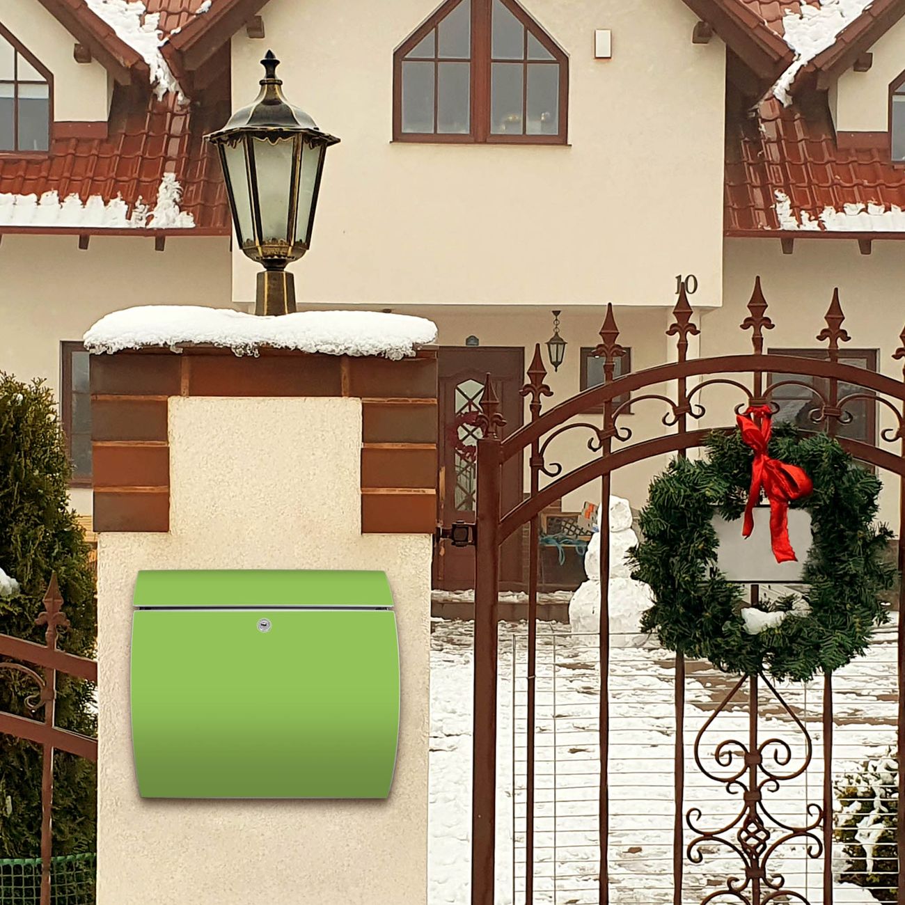 Der geschwungene Burg Wächter Briefkasten Toscana mit Farbe Limettengrün bietet Ihnen mit seinem großen Fassungsvermögen genügend Platz auch für große A4 Sendungen. Auf Wunsch können Sie bei uns den passenden Standfuß bestellen und so aus dem Wandbriefkasten einen Standbriefkasten machen. Der integrierte Öffnungsstopp ermöglicht eine einfache Handhabung beim Entnehmen der Post.