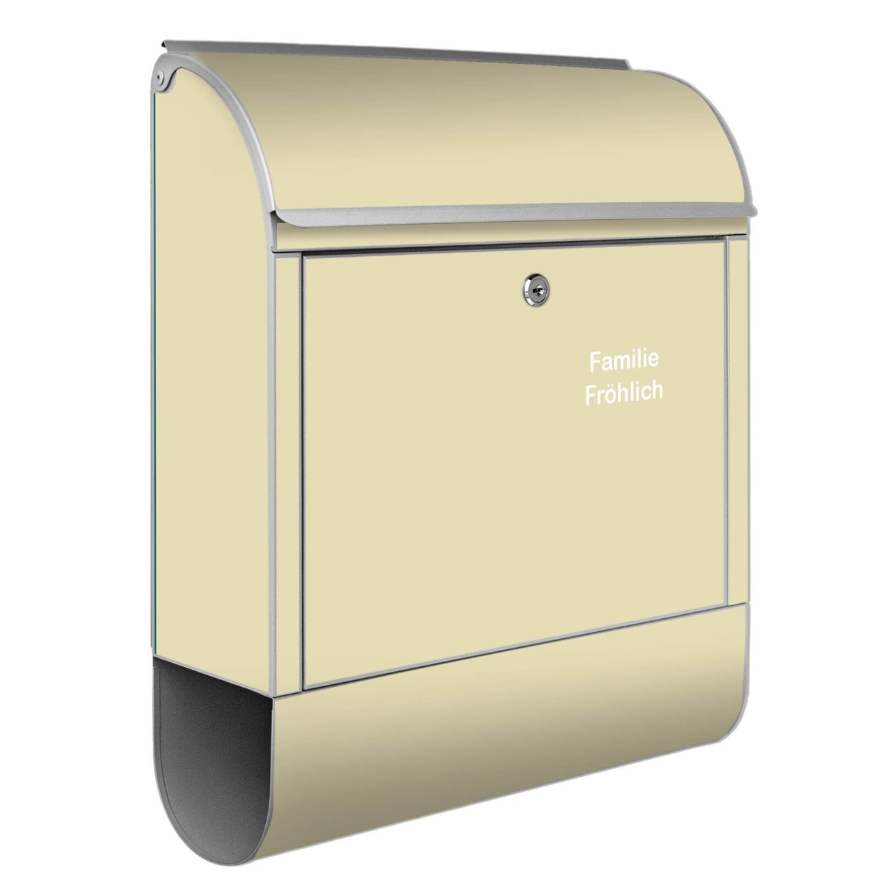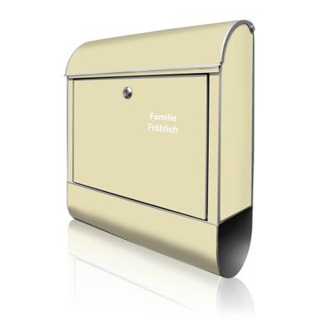 DESIGN: Der Postkasten mit Motiv Farbe Beige hat ein sehr ansprechendes und ausgefallenes Design, damit entlocken Sie Ihren Nachbarn und dem Postboten ein Lächeln. Heben Sie Sich von der tristen grauen Masse ab, ohne auf Funktionalität zu verzichten. DETAILS: Der Postkasten besteht aus pulverbeschichtetem Stahl. Er ist 38x46x12,5cm groß. Das Motiv besteht aus einer wetter- und UV-resistenten Folie, die mit einem Schutzlaminat überzogen ist, sodass der Briefkasten zusätzlich vor Kratzern geschützt ist. Der Briefkasten wird mit Montagematerial, zusätzlich zwei Schlüssel sowie einer Bohrschablone geliefert. NUTZEN: Sie können diesen Briefkasten sowohl als Wandbriefkasten montieren oder einen passenden Ständer kaufen und als Standbriefkasten einbetonieren. Die Größe bietet genügend Platz für Sendungen aller Art, der Einwurf fasst auch größere A4 Sendungen. BANJADO: Ihr Briefkasten wird in Sachsen in einer kleinen Manufaktur von Hand veredelt. Die Motivfolie ist lösungsmittelfrei und schutzlaminiert für einen langen Halt. Wir legen großen Wert auf die Verbindung von Funktionalität und Design. Sie erhalten Handarbeit aus Sachsen.