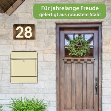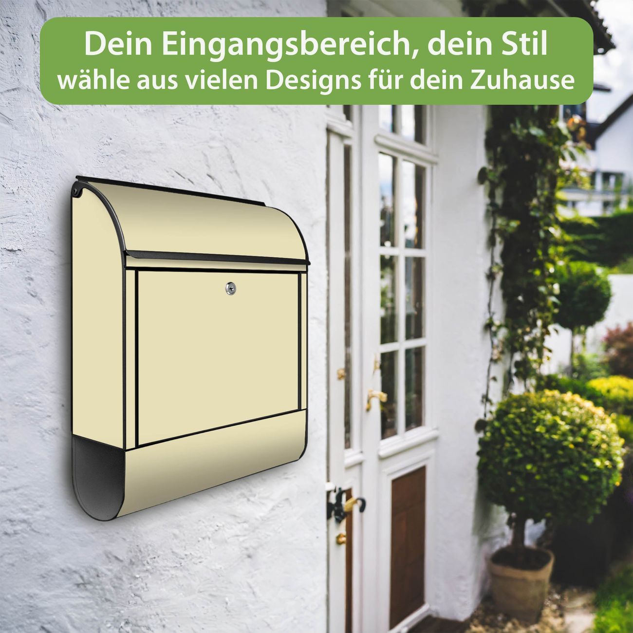 DESIGN: Der Postkasten mit Motiv Farbe Beige hat ein sehr ansprechendes und ausgefallenes Design, damit entlocken Sie Ihren Nachbarn und dem Postboten ein Lächeln. Heben Sie Sich von der tristen grauen Masse ab, ohne auf Funktionalität zu verzichten. DETAILS: Der Postkasten besteht aus pulverbeschichtetem Stahl. Er ist 38x46x12,5cm groß. Das Motiv besteht aus einer wetter- und UV-resistenten Folie, die mit einem Schutzlaminat überzogen ist, sodass der Briefkasten zusätzlich vor Kratzern geschützt ist. Der Briefkasten wird mit Montagematerial, zusätzlich zwei Schlüssel sowie einer Bohrschablone geliefert. NUTZEN: Sie können diesen Briefkasten sowohl als Wandbriefkasten montieren oder einen passenden Ständer kaufen und als Standbriefkasten einbetonieren. Die Größe bietet genügend Platz für Sendungen aller Art, der Einwurf fasst auch größere A4 Sendungen. BANJADO: Ihr Briefkasten wird in Sachsen in einer kleinen Manufaktur von Hand veredelt. Die Motivfolie ist lösungsmittelfrei und schutzlaminiert für einen langen Halt. Wir legen großen Wert auf die Verbindung von Funktionalität und Design. Sie erhalten Handarbeit aus Sachsen.
