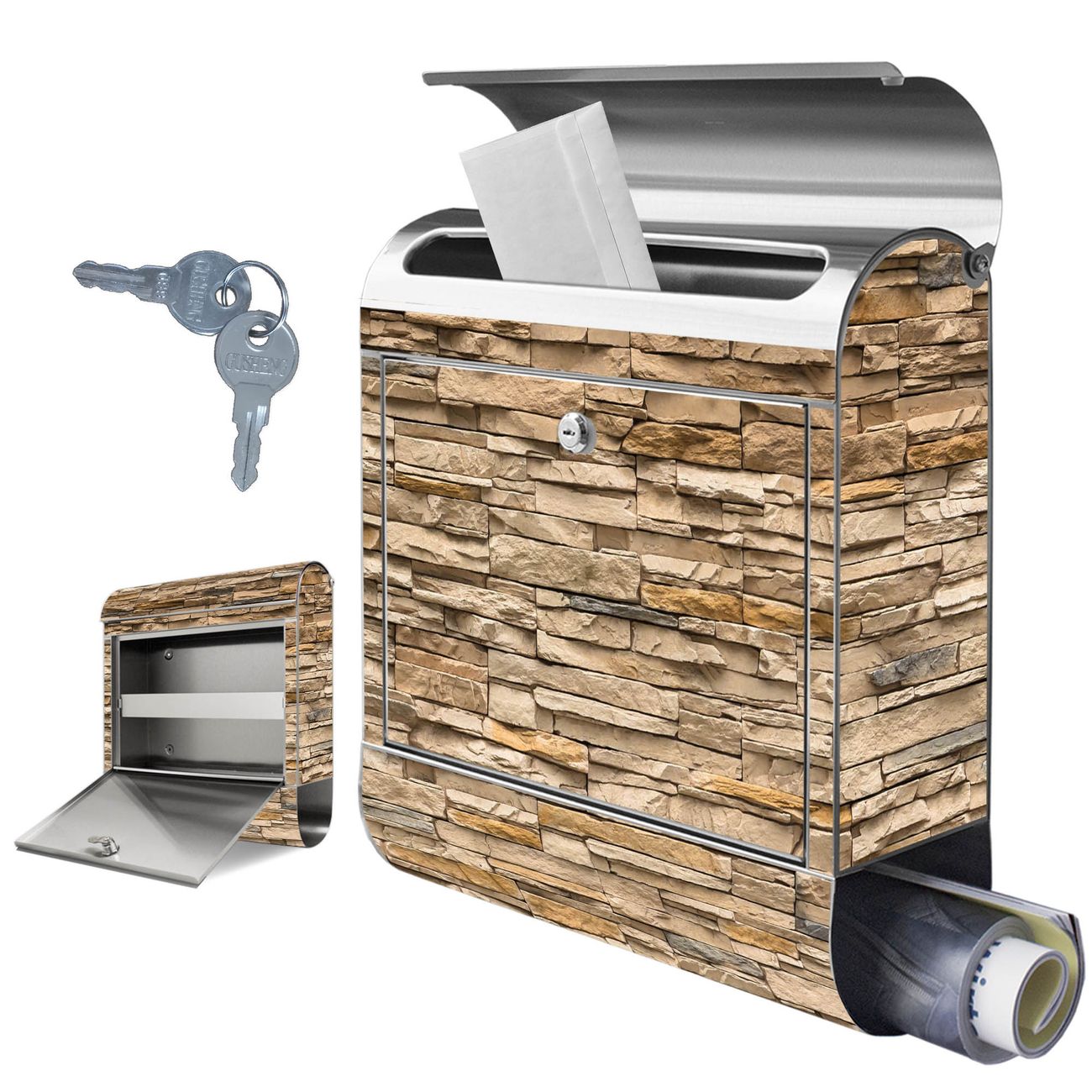 Wandbriefkasten Edelstahl Motiv Alte Mauer