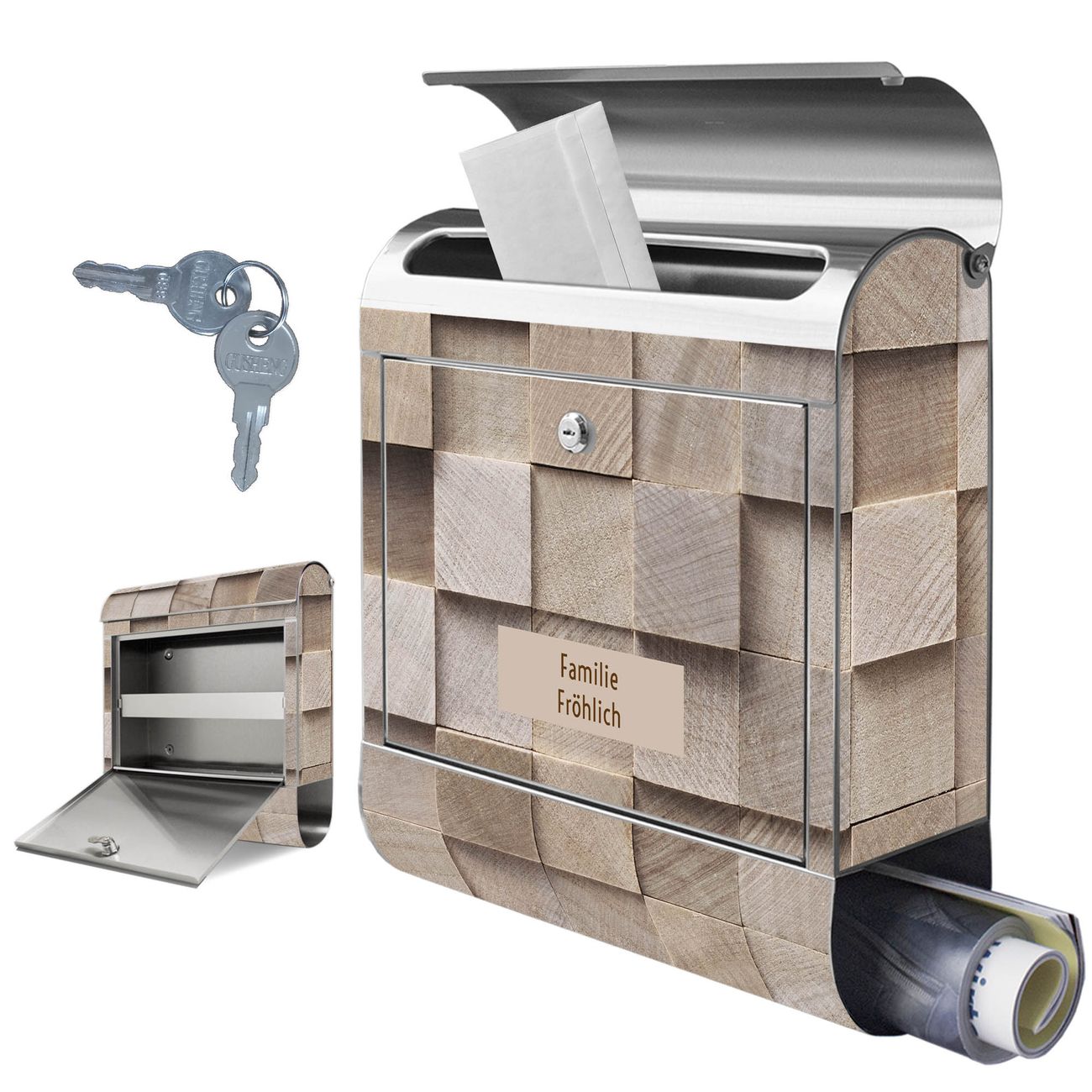 Wandbriefkasten Edelstahl Motiv Bauklötze Relief