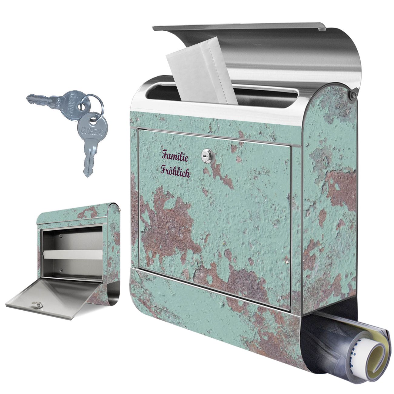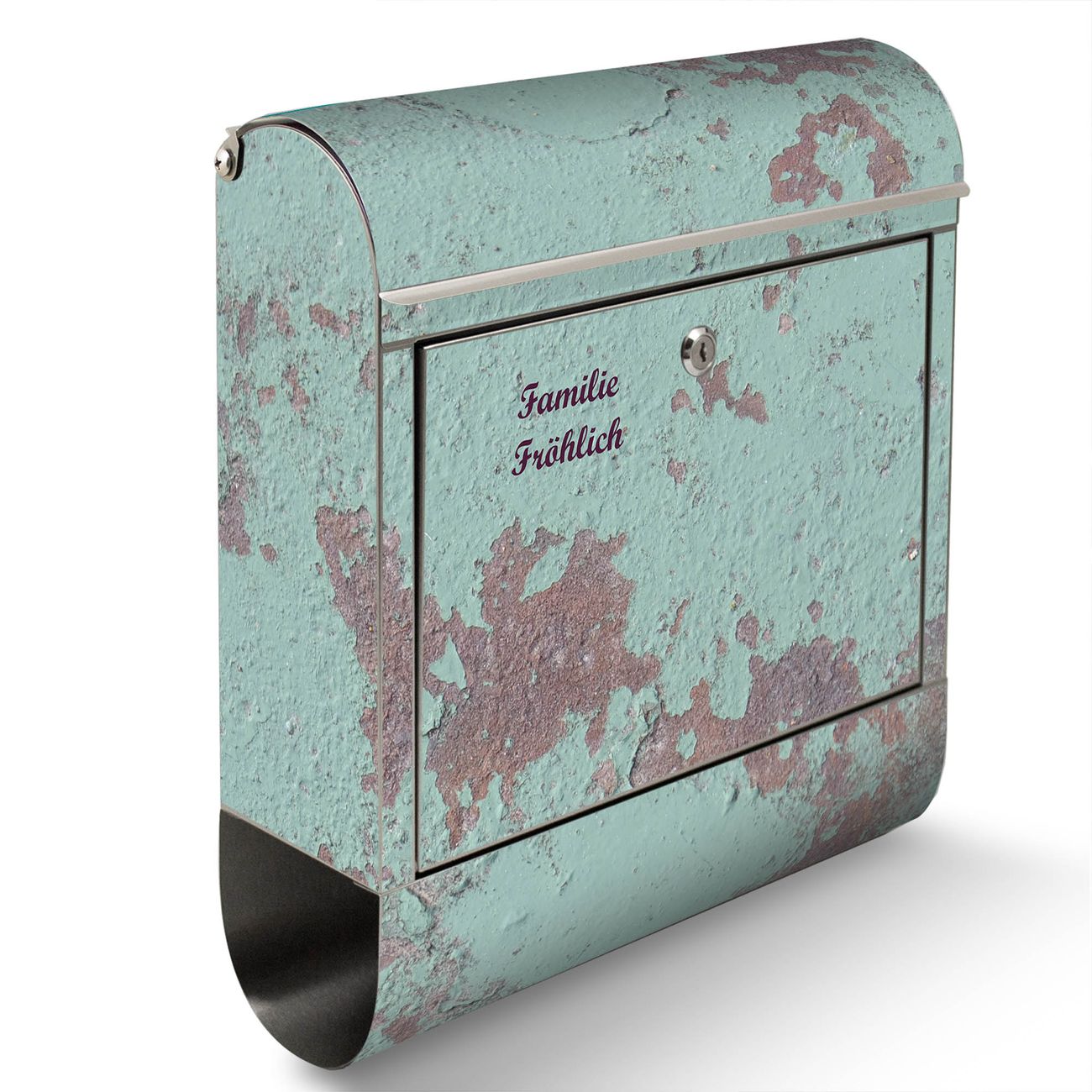 Wandbriefkasten Edelstahl Motiv Blaue Struktur