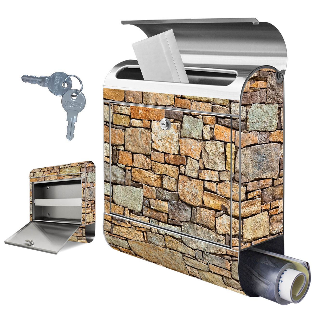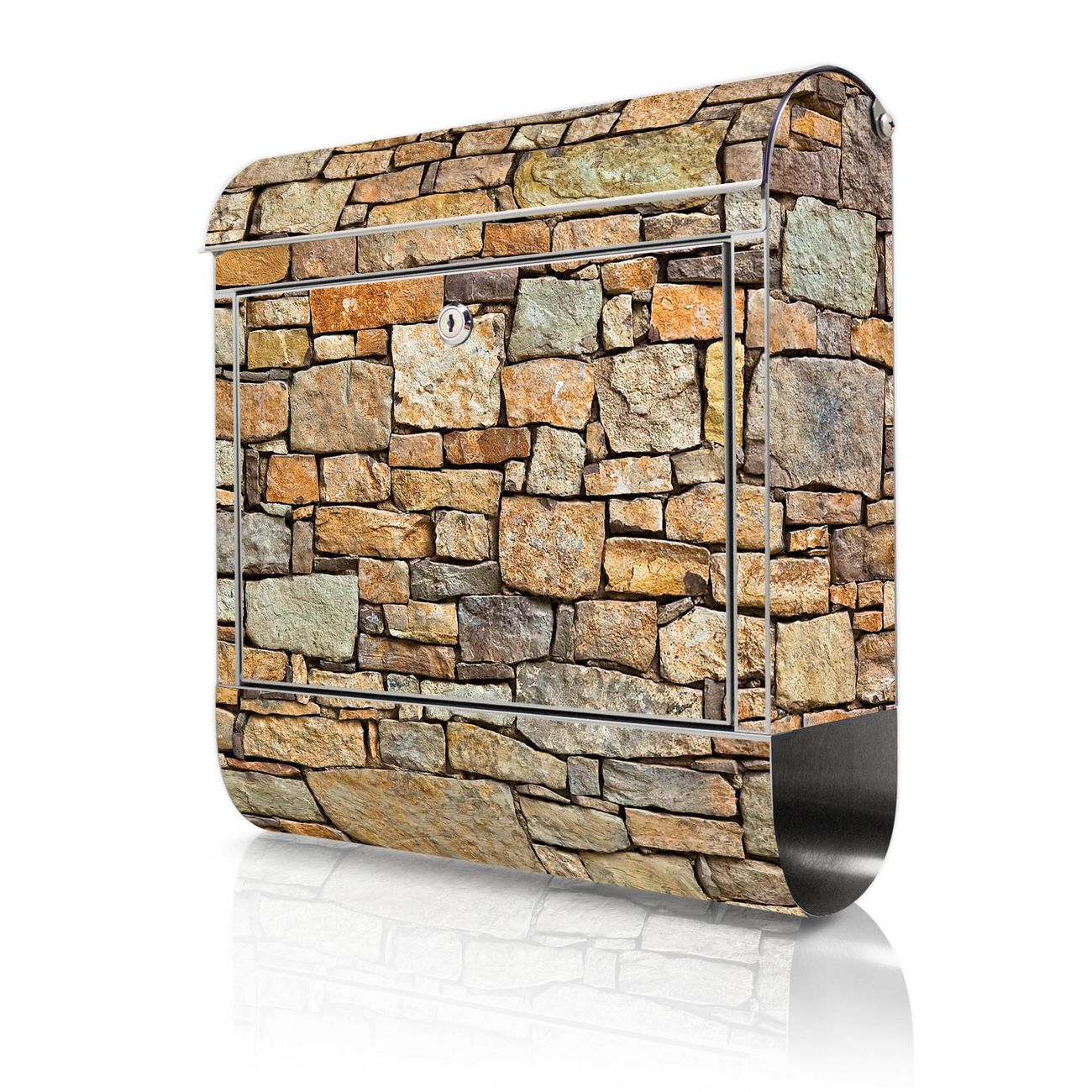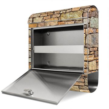 Wandbriefkasten Edelstahl Motiv Bruchsteinmauer