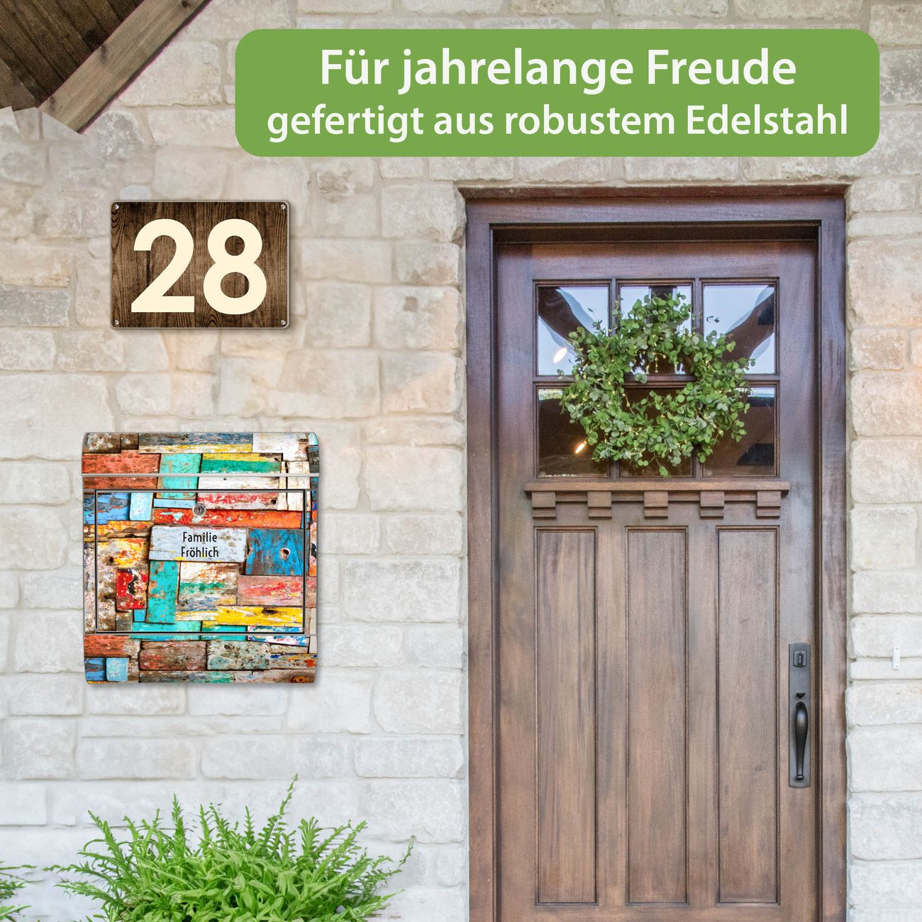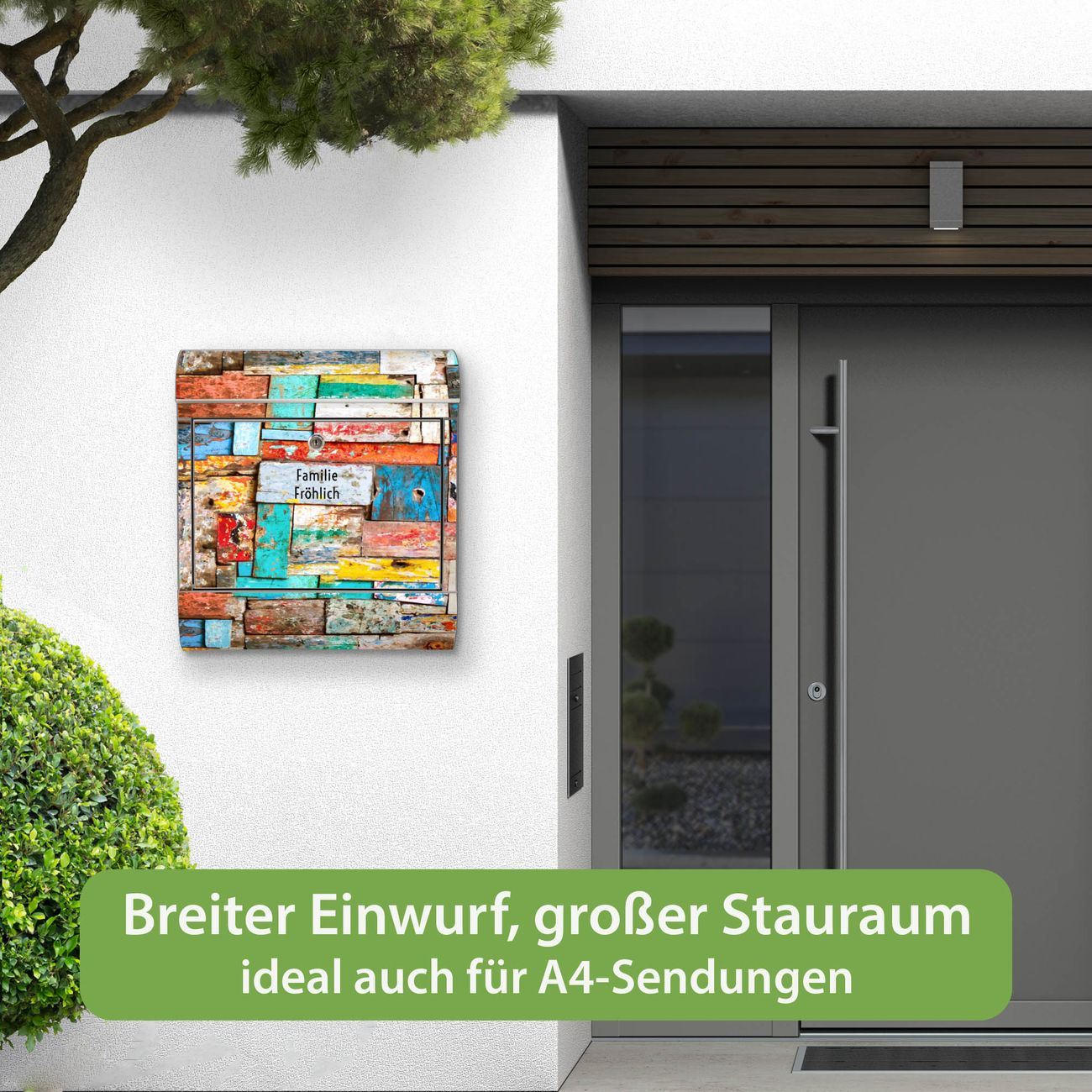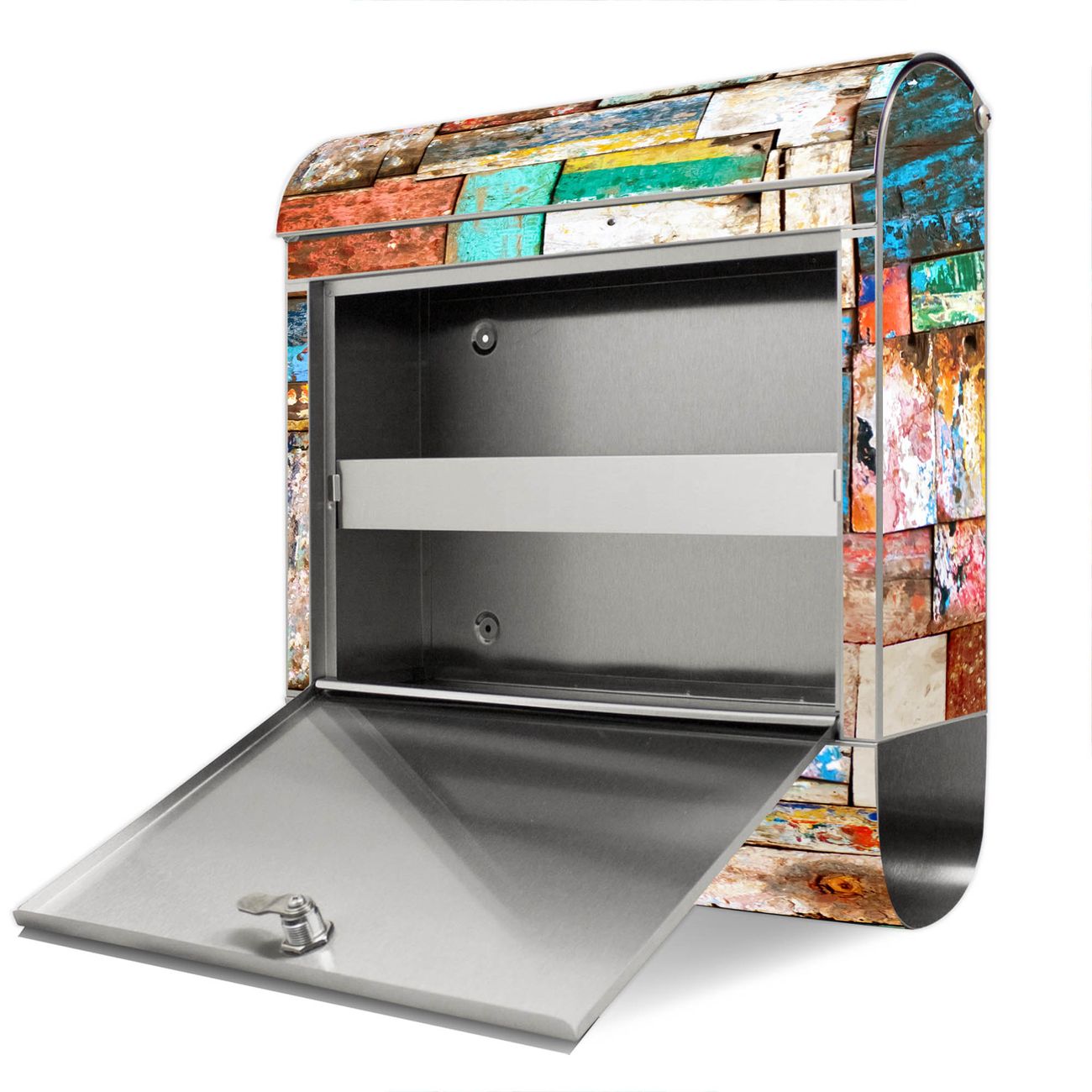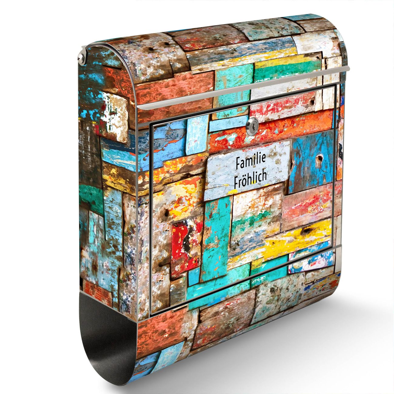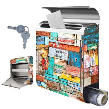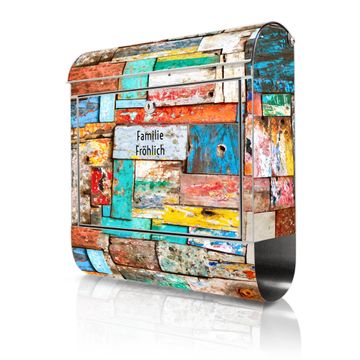 Wandbriefkasten Edelstahl Motiv Bunte Holzschindeln