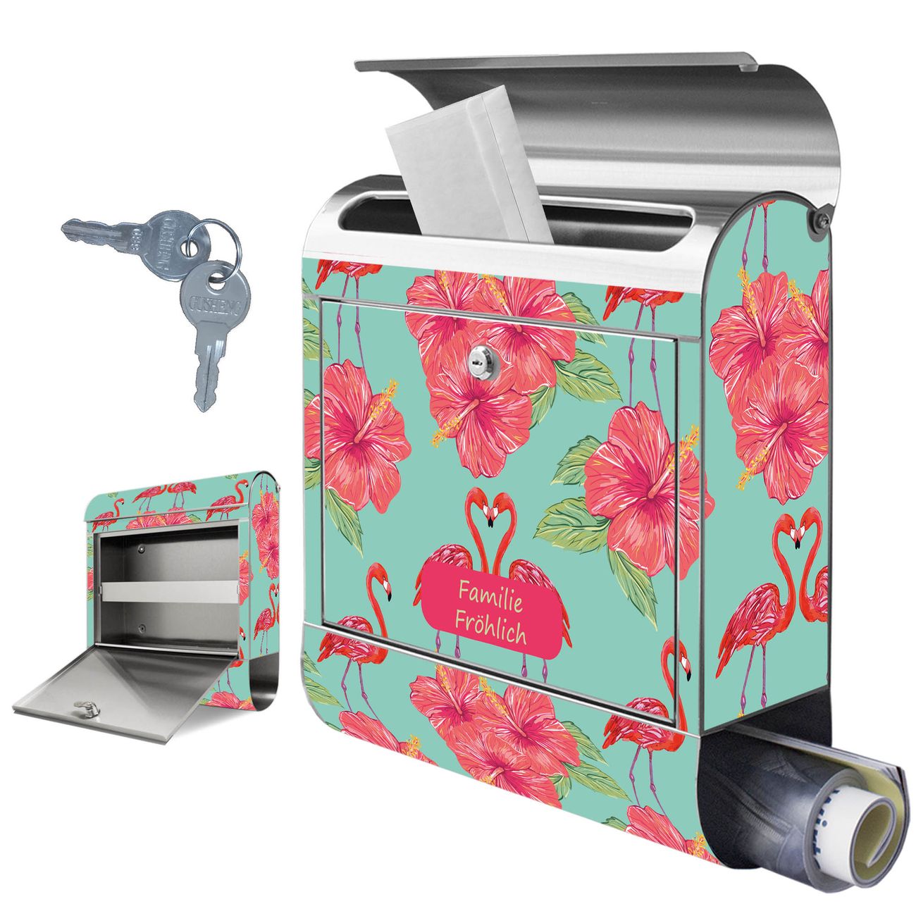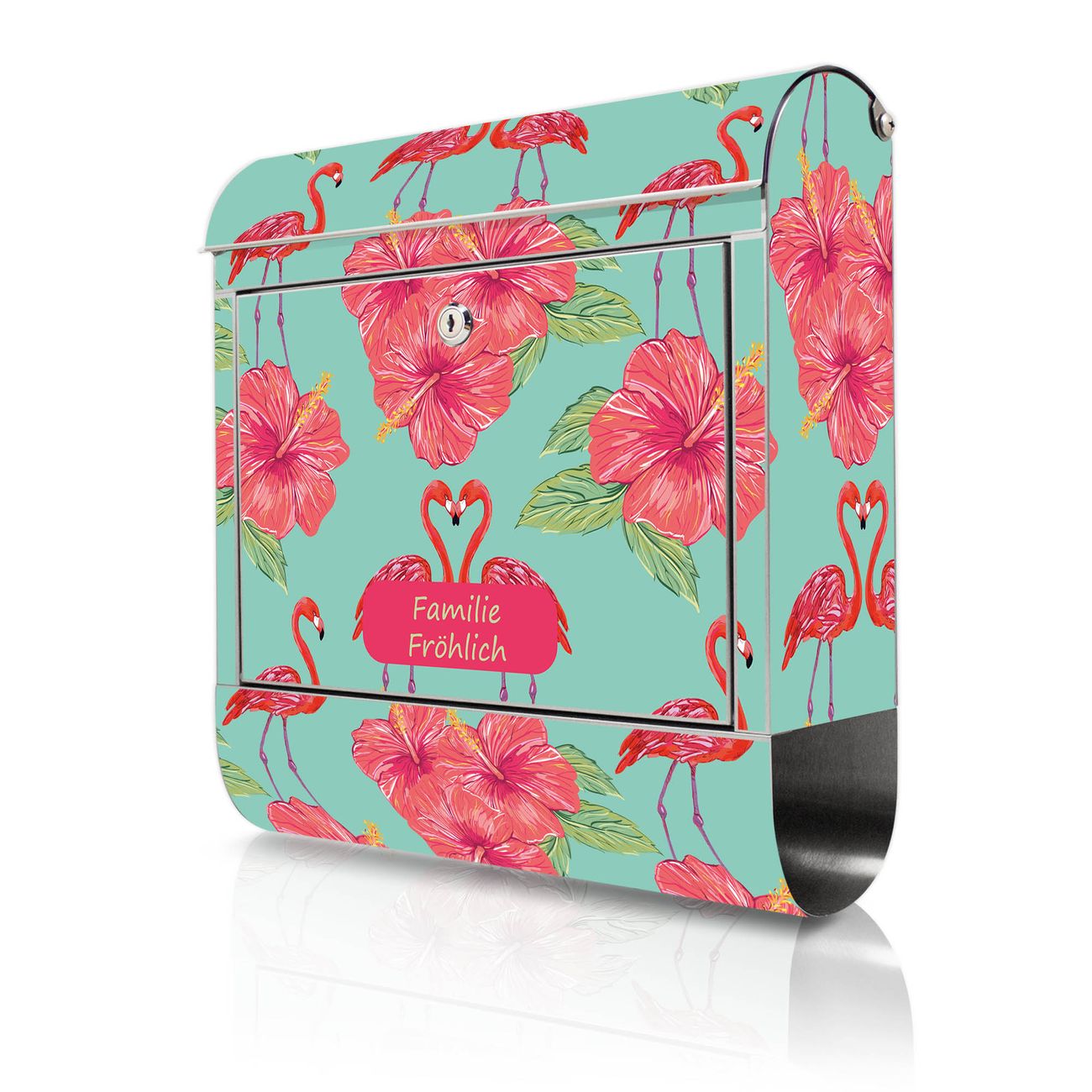 Wandbriefkasten Edelstahl Motiv Flamingo Liebe