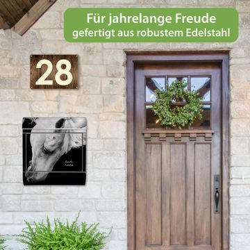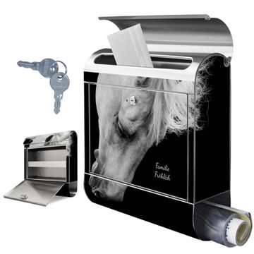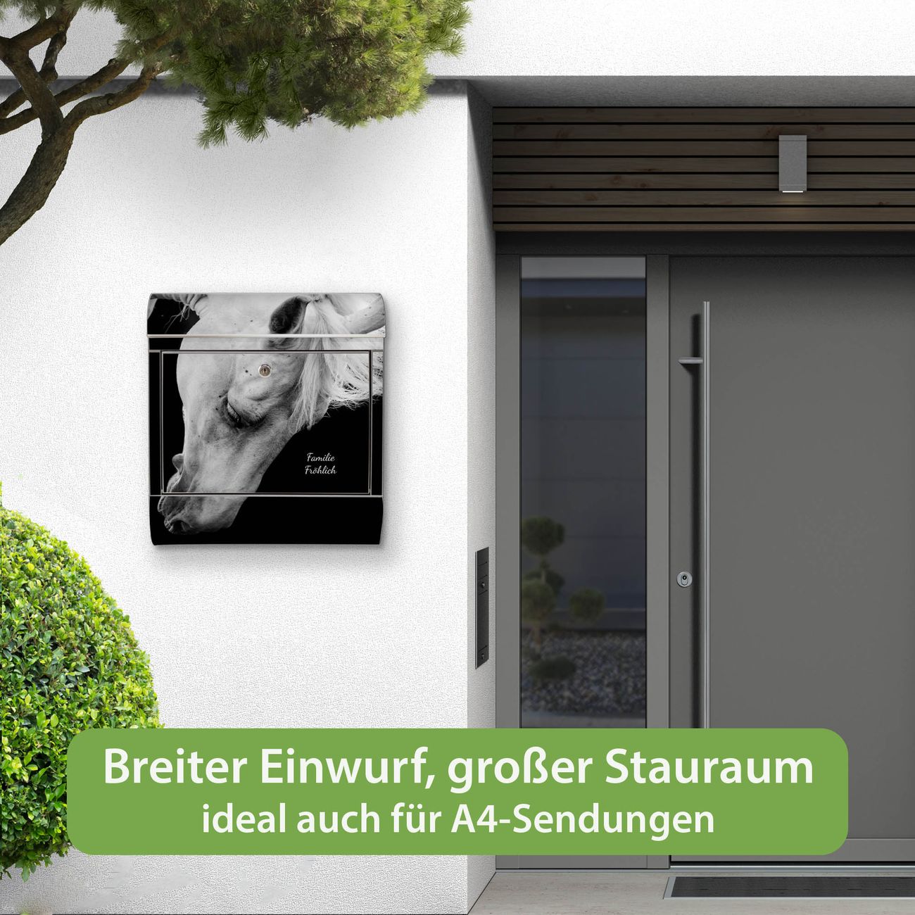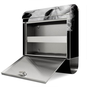 FUNKTION: Der banjado Edelstahl Briefkasten mit Motiv Motiv Frederik bietet Ihnen mit seinem Fassungsvermögen genügend Platz auch für große A4 Sendungen. Das integrierte Zeitungsfach eignet sich hervorragend um unkompliziert die Tageszeitung zu fassen. Auf Wunsch können Sie bei uns den passenden Ständer kaufen und so aus dem Wandbriefkasten einen Standbriefkasten machen. DESIGN: Der Motivbriefkasten hat ein sehr ansprechendes und ausgefallenes Design, damit entlocken Sie Ihren Nachbarn und dem Postboten ein Lächeln. Heben Sie Sich ab von der tristen grauen Masse ohne auf Funktionalität zu verzichten. DETAILS: Der Design Briefkasten mit Motiv Motiv Frederik besteht aus hochwertigem 18/0 Edelstahl. Das Motiv besteht aus einer wetter- und UV-resistenten Folie, die mit einem Schutzlaminat überzogen ist. Der Briefkasten wird mit Montagematerial und zwei Schlüsseln geliefert. NUTZEN: Sie können diesen Briefkasten sowohl als Wandbriefkasten montieren oder einen passenden Ständer auswählen und als Standbriefkasten einbetonieren. Die Größe bietet genügend Platz für Sendungen aller Art, das hochwertige Edelstahl ist rostfrei und die Motivfolie absolut wetterfest. SCHUTZ: Um Ihre Post optimal vor Witterungseinflüssen wie Starkregen zu schützen, empfehlen wir, den Briefkasten geschützt anzubringen. BANJADO: Ihr Briefkasten wird in Sachsen in einer kleinen Manufaktur von Hand veredelt. Die Motivfolie ist lösungsmittelfrei und schutzlaminiert, dies sorgt für einen langen Halt. Wir legen großen Wert auf die Verbindung von Funktionalität und Design. Sie erhalten Handarbeit aus Sachsen.
