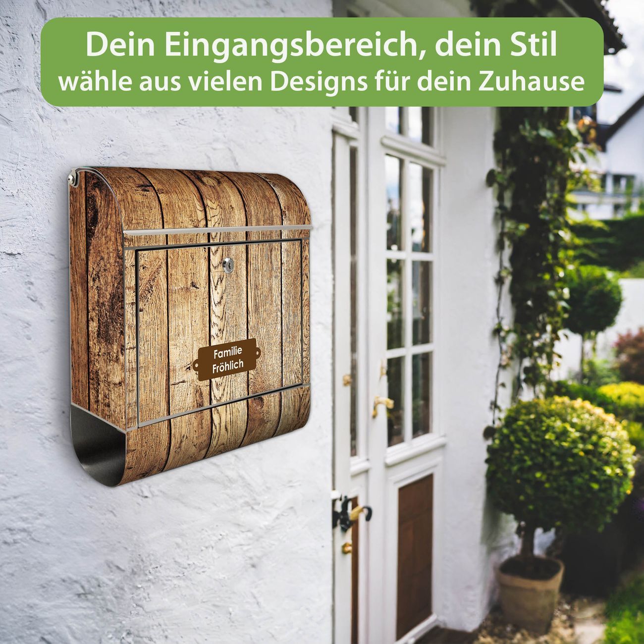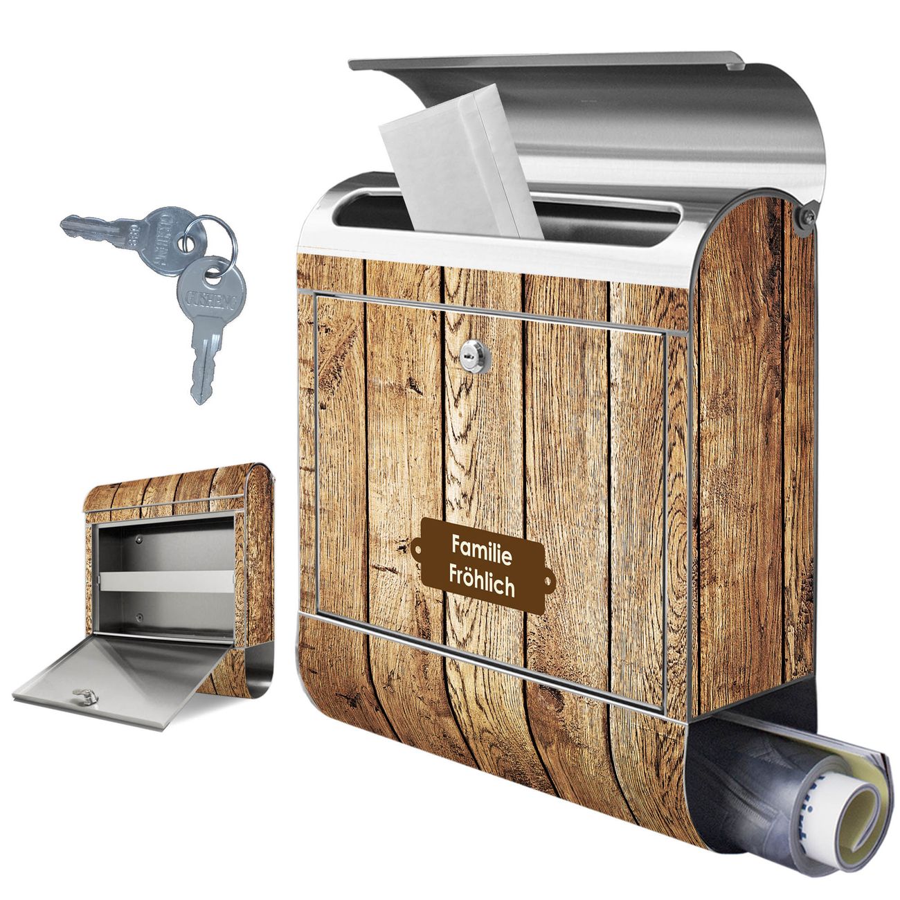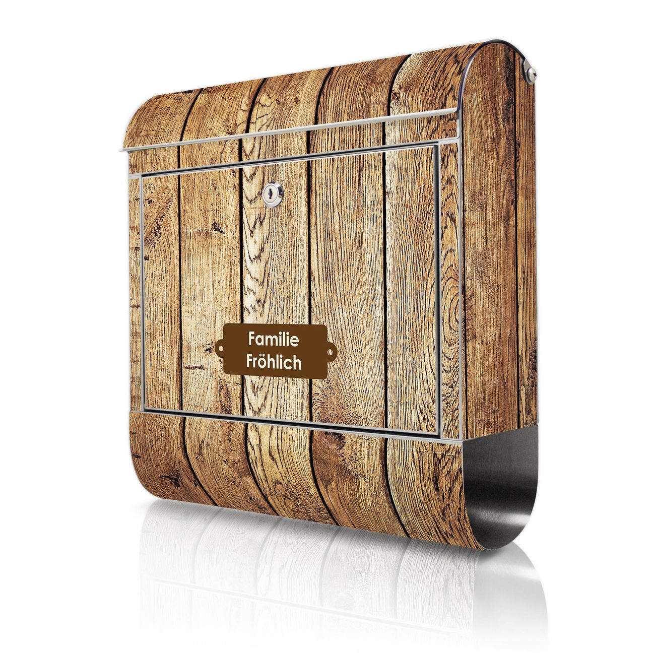 Wandbriefkasten Edelstahl Motiv Geöltes Holz