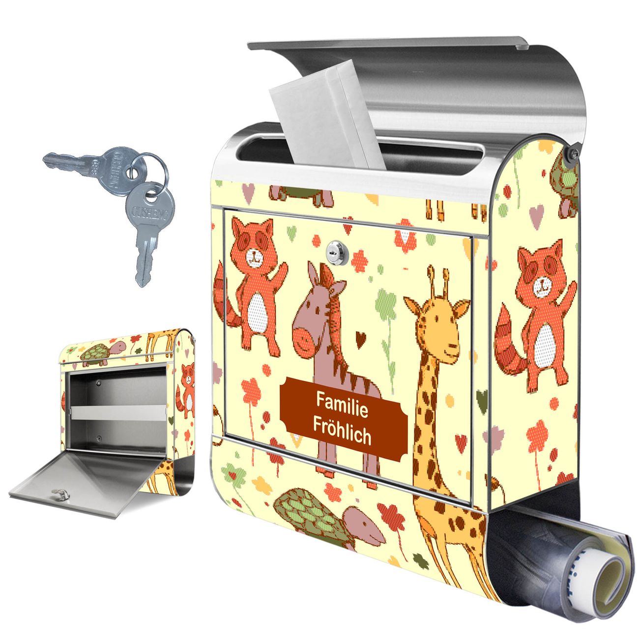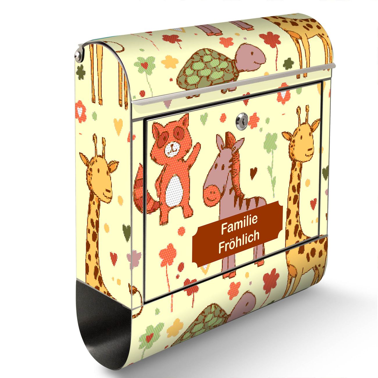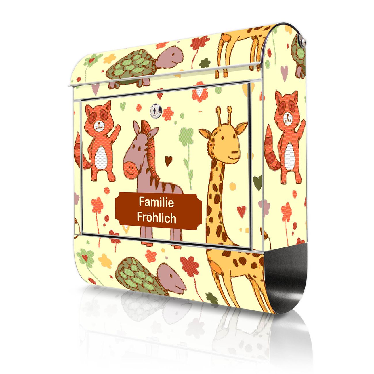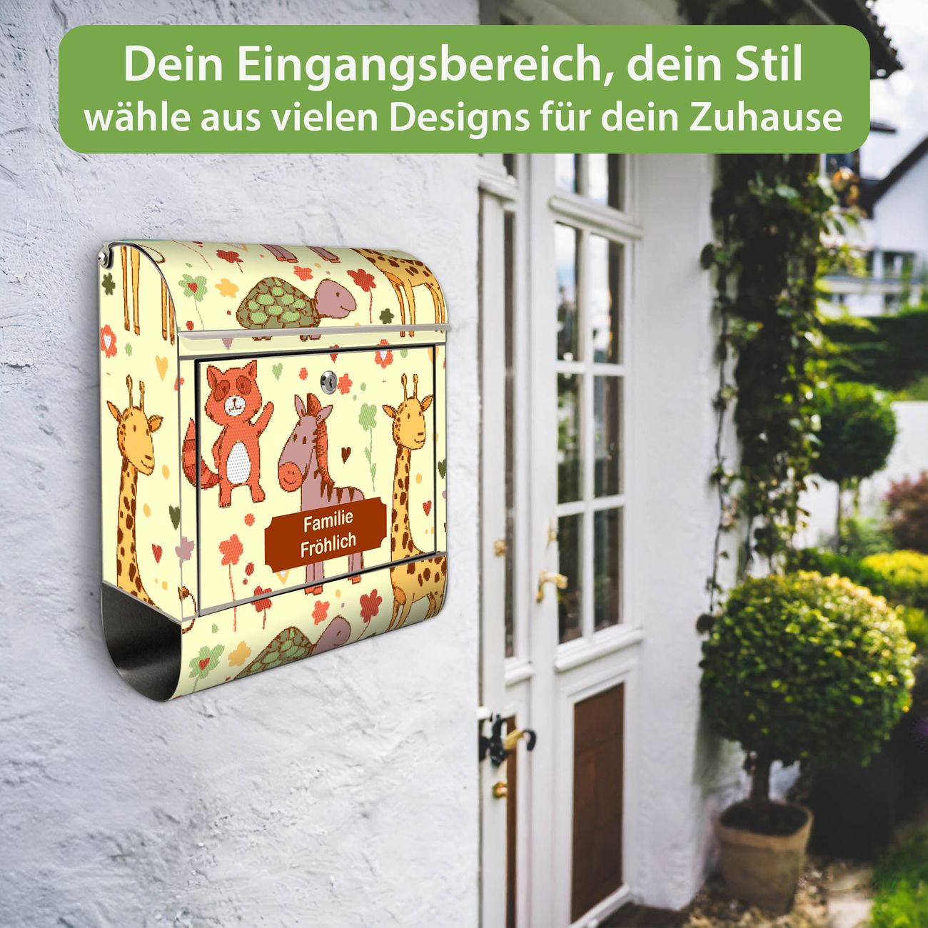 Wandbriefkasten Edelstahl Motiv Giraffe & Co