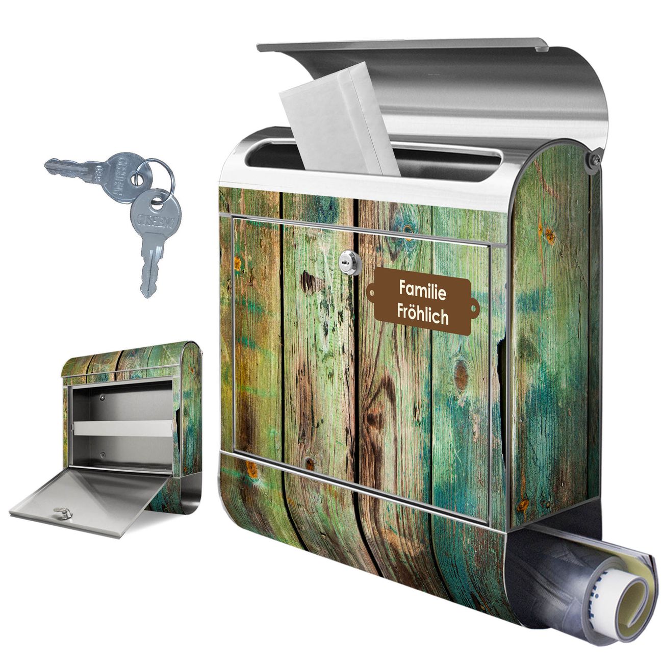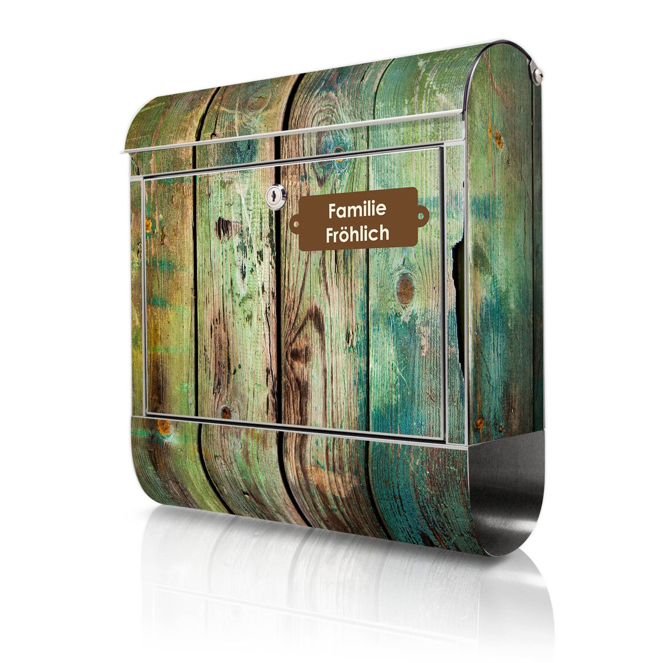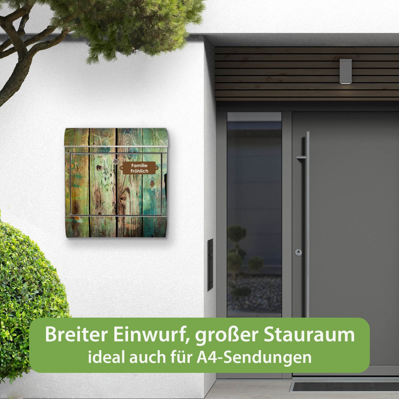 Wandbriefkasten Edelstahl Motiv Grünes Holz