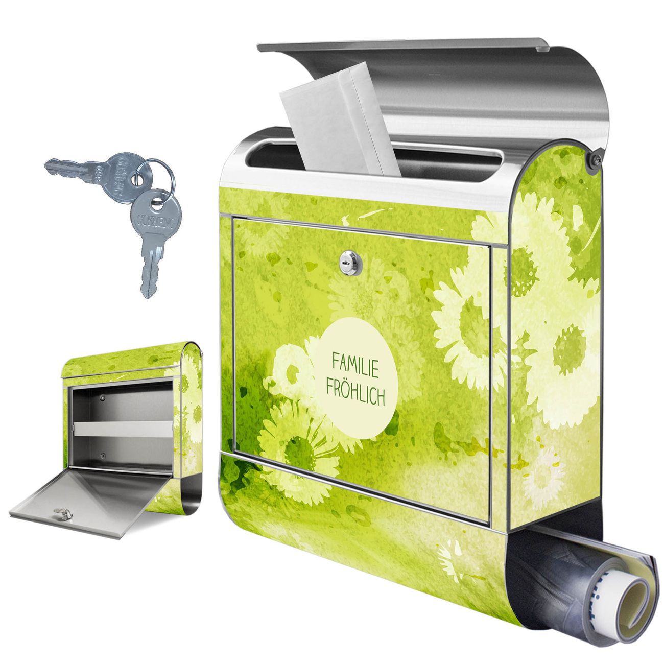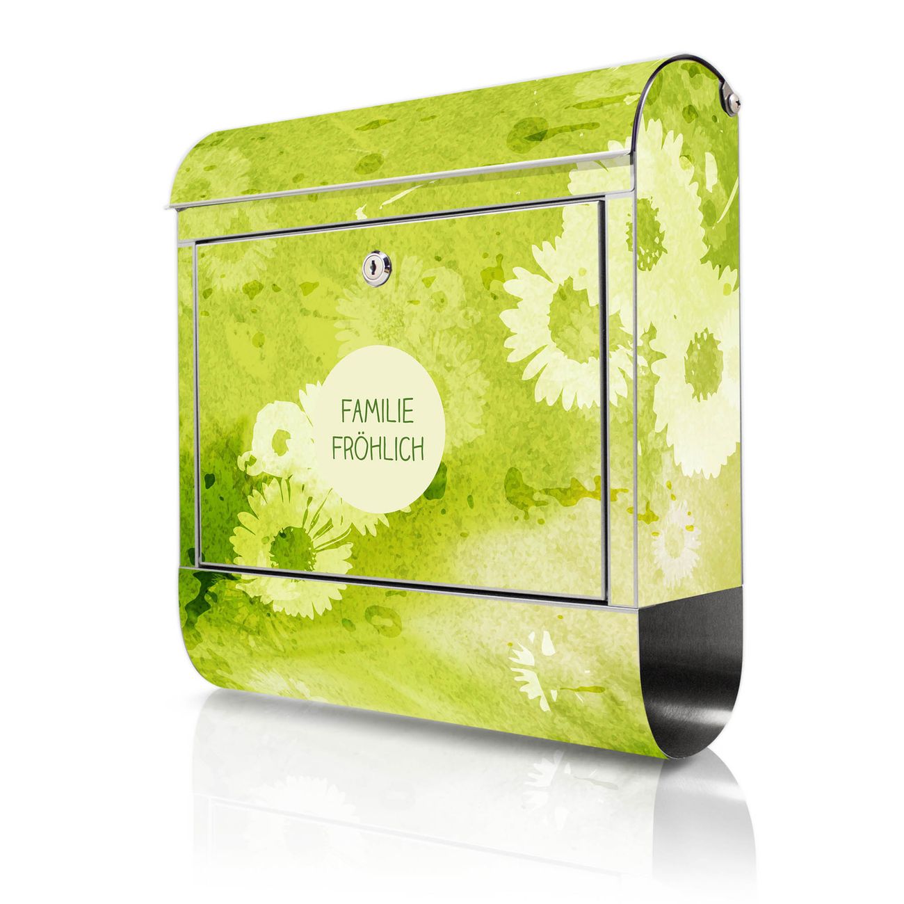 Wandbriefkasten Edelstahl Motiv Kamille Grün