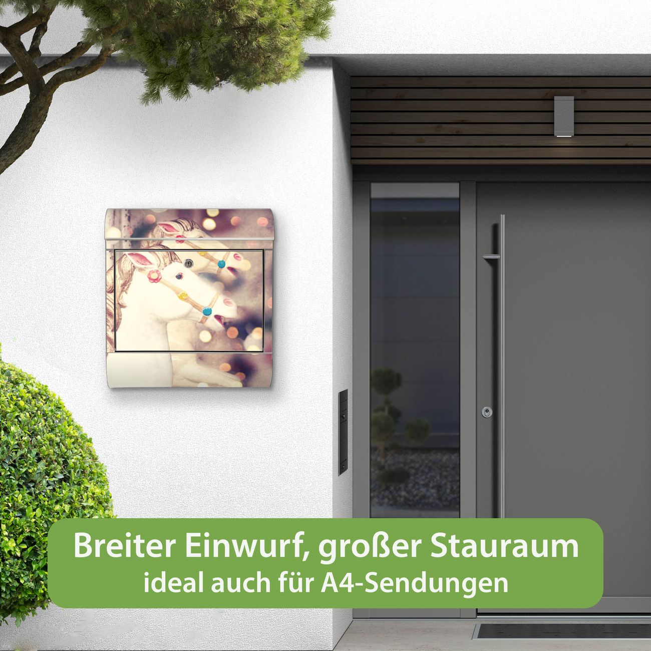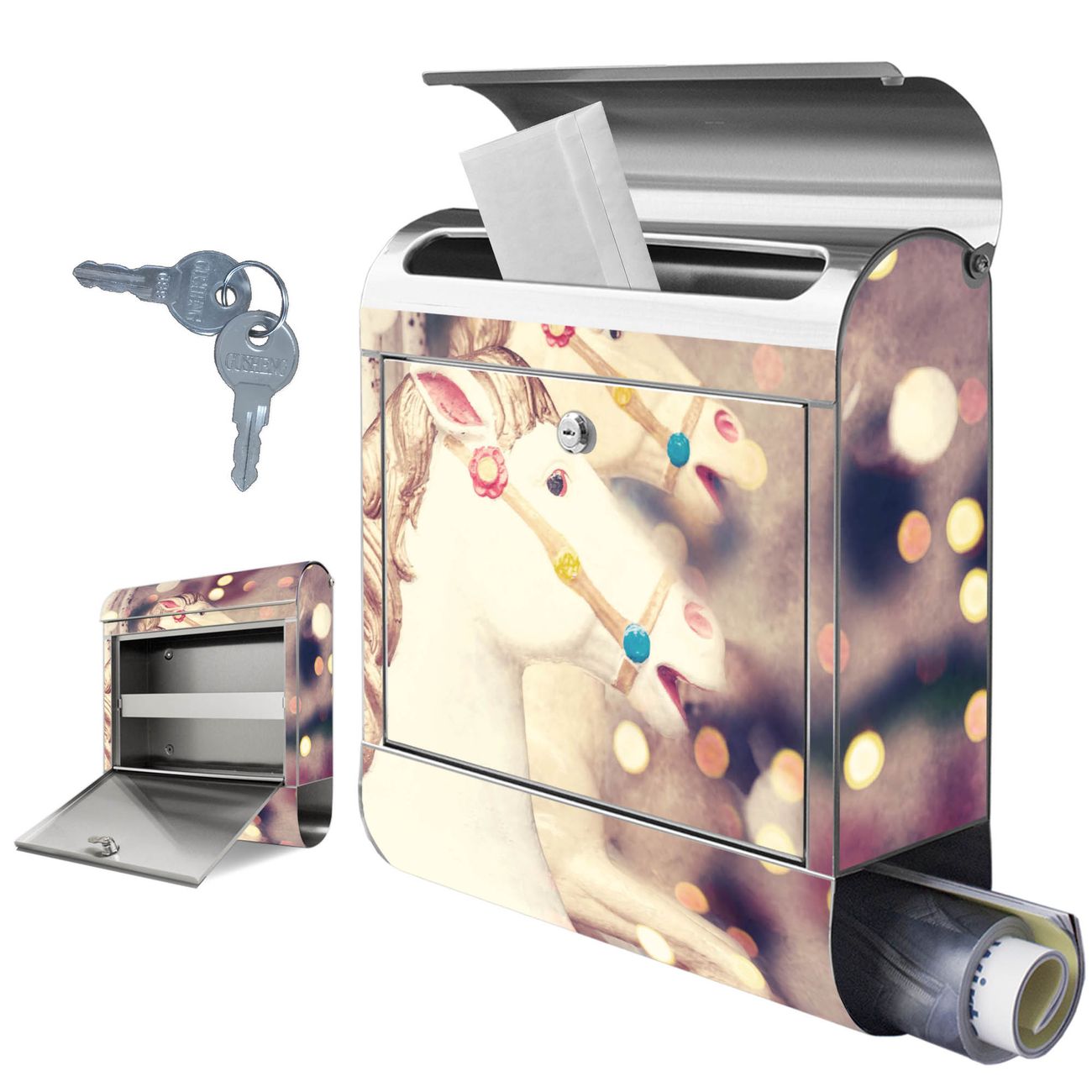 Wandbriefkasten Edelstahl Motiv Kinderkarussell