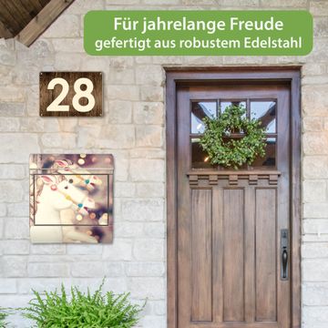 FUNKTION: Der banjado Edelstahl Briefkasten mit Motiv Motiv Kinderkarussell bietet Ihnen mit seinem Fassungsvermögen genügend Platz auch für große A4 Sendungen. Das integrierte Zeitungsfach eignet sich hervorragend um unkompliziert die Tageszeitung zu fassen. Auf Wunsch können Sie bei uns den passenden Ständer kaufen und so aus dem Wandbriefkasten einen Standbriefkasten machen. DESIGN: Der Motivbriefkasten hat ein sehr ansprechendes und ausgefallenes Design, damit entlocken Sie Ihren Nachbarn und dem Postboten ein Lächeln. Heben Sie Sich ab von der tristen grauen Masse ohne auf Funktionalität zu verzichten. DETAILS: Der Design Briefkasten mit Motiv Motiv Kinderkarussell besteht aus hochwertigem 18/0 Edelstahl. Das Motiv besteht aus einer wetter- und UV-resistenten Folie, die mit einem Schutzlaminat überzogen ist. Der Briefkasten wird mit Montagematerial und zwei Schlüsseln geliefert. NUTZEN: Sie können diesen Briefkasten sowohl als Wandbriefkasten montieren oder einen passenden Ständer auswählen und als Standbriefkasten einbetonieren. Die Größe bietet genügend Platz für Sendungen aller Art, das hochwertige Edelstahl ist rostfrei und die Motivfolie absolut wetterfest. SCHUTZ: Um Ihre Post optimal vor Witterungseinflüssen wie Starkregen zu schützen, empfehlen wir, den Briefkasten geschützt anzubringen. BANJADO: Ihr Briefkasten wird in Sachsen in einer kleinen Manufaktur von Hand veredelt. Die Motivfolie ist lösungsmittelfrei und schutzlaminiert, dies sorgt für einen langen Halt. Wir legen großen Wert auf die Verbindung von Funktionalität und Design. Sie erhalten Handarbeit aus Sachsen.