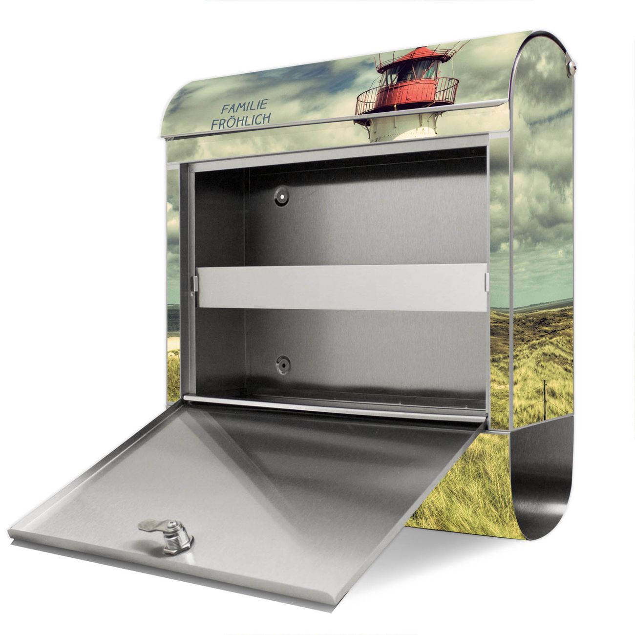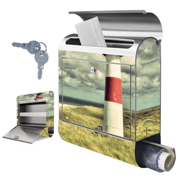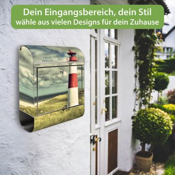 Wandbriefkasten Edelstahl Motiv Leuchtturm Sylt