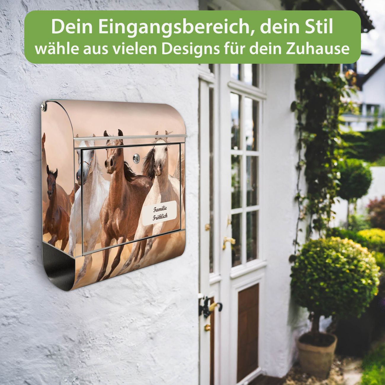 Der Vorschau-Text Familie Fröhlich wird durch Ihren persönlichen Wunschtext ersetzt. Die Schriftart und Farbe bleiben gleich wie in der Vorschau.