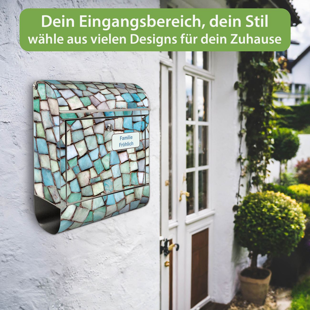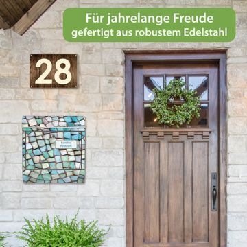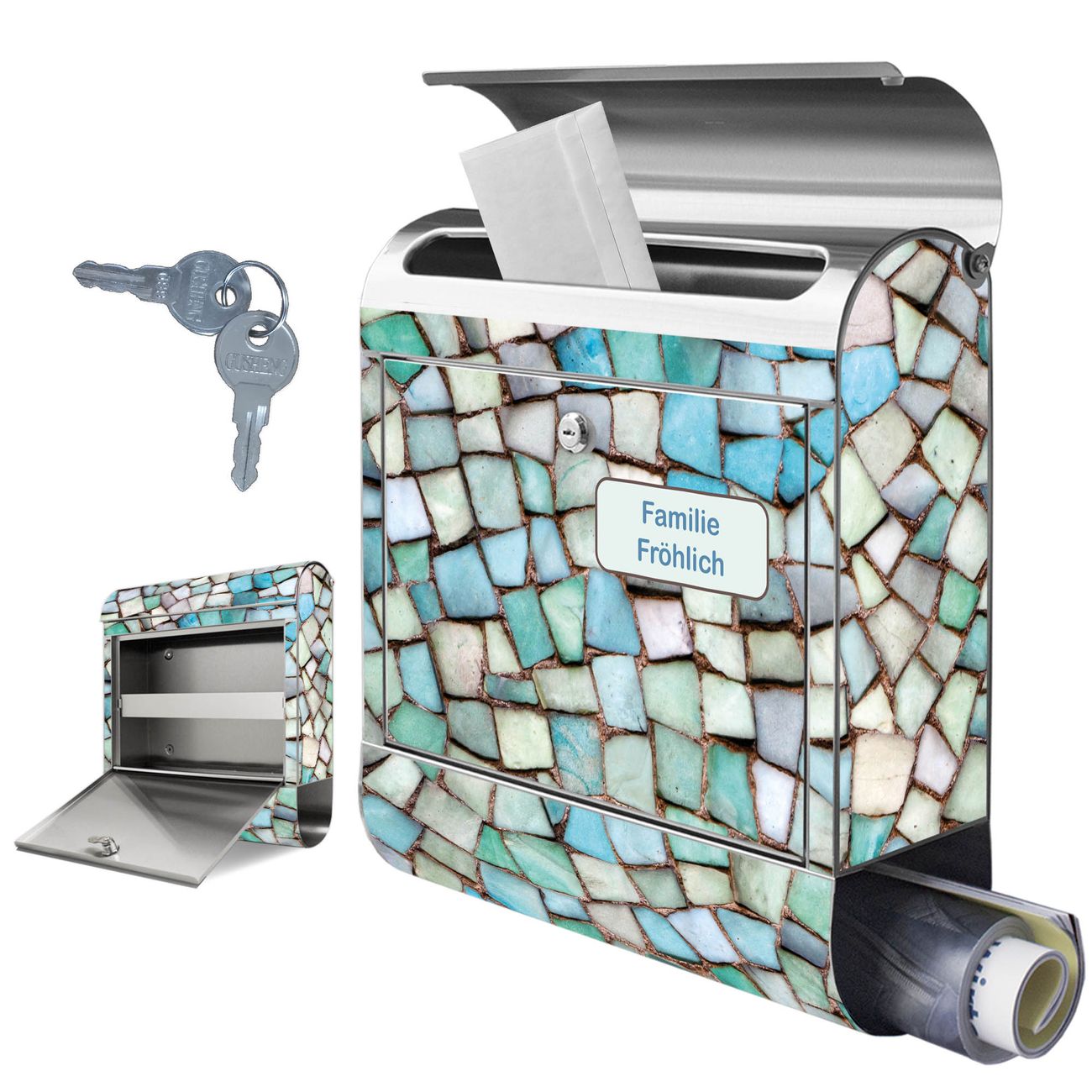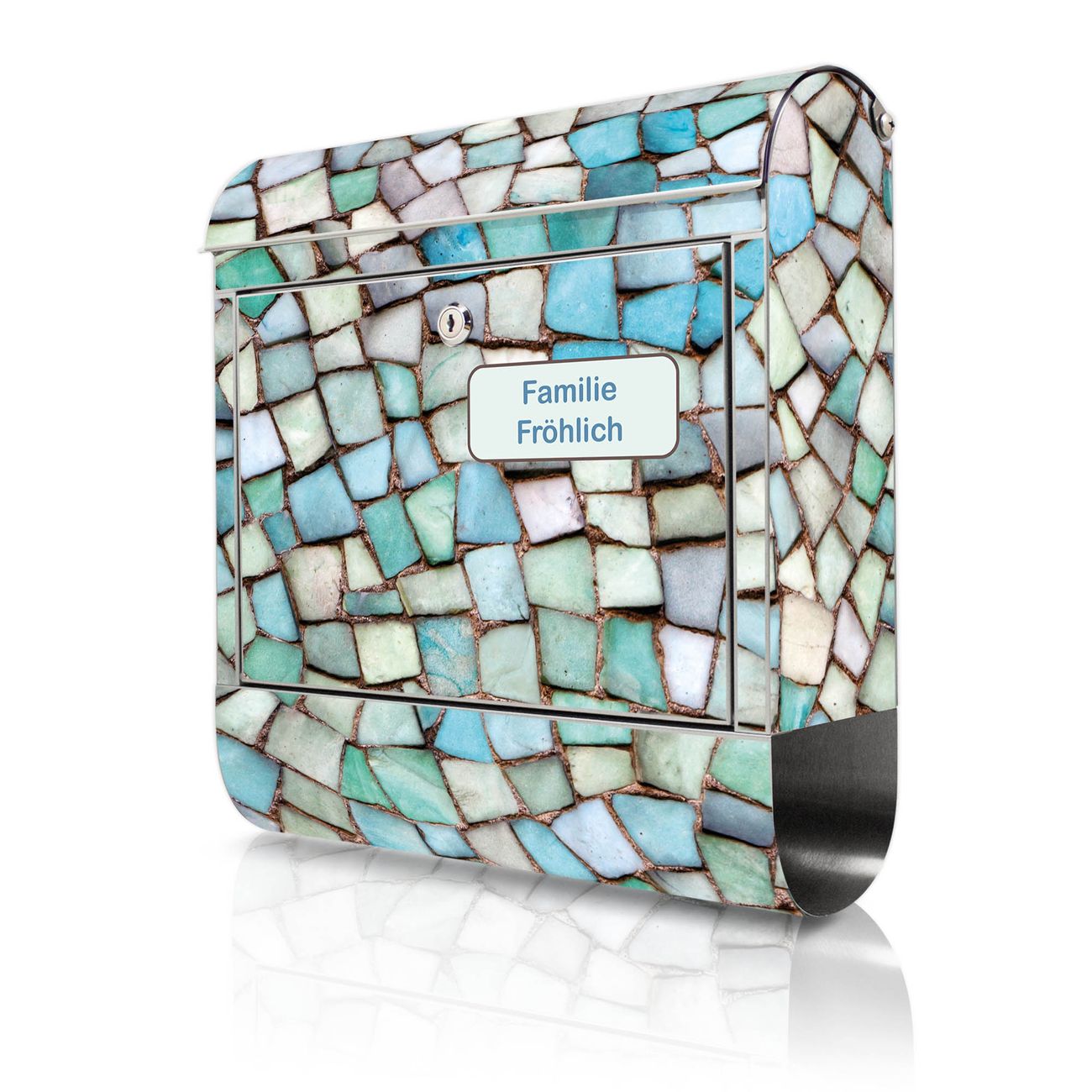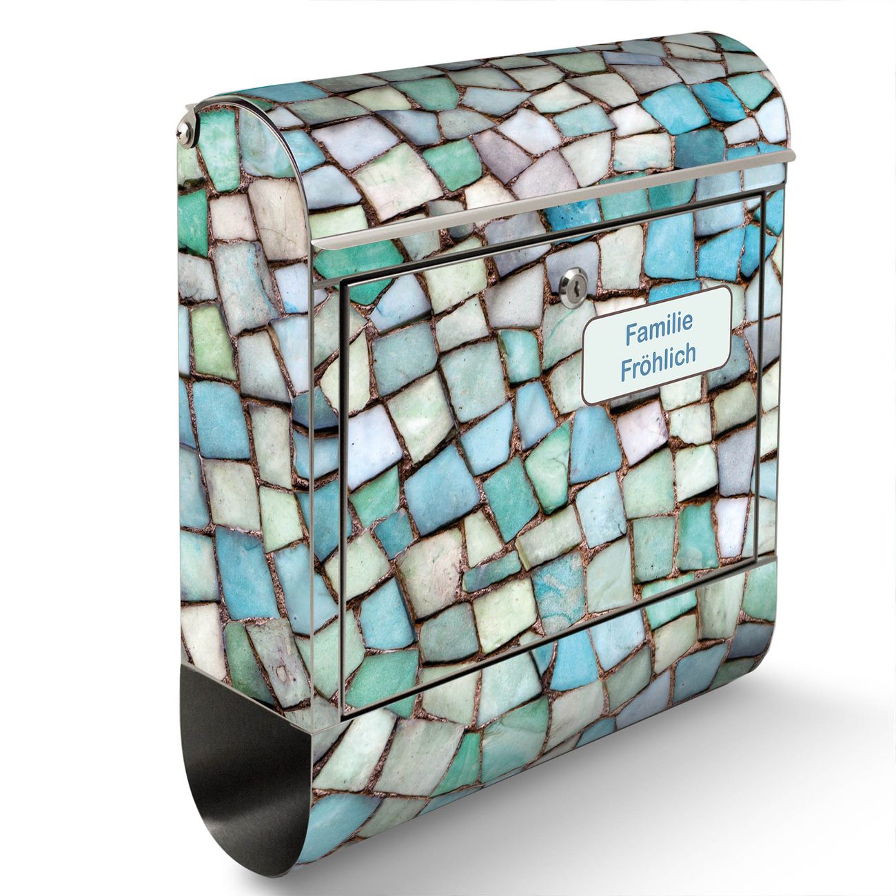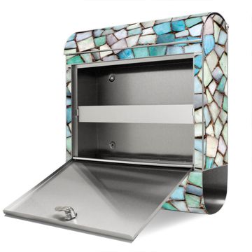 Wandbriefkasten Edelstahl Motiv Mosaik Blau