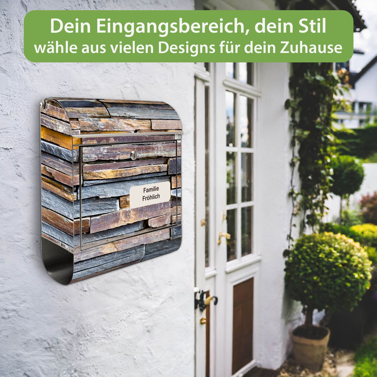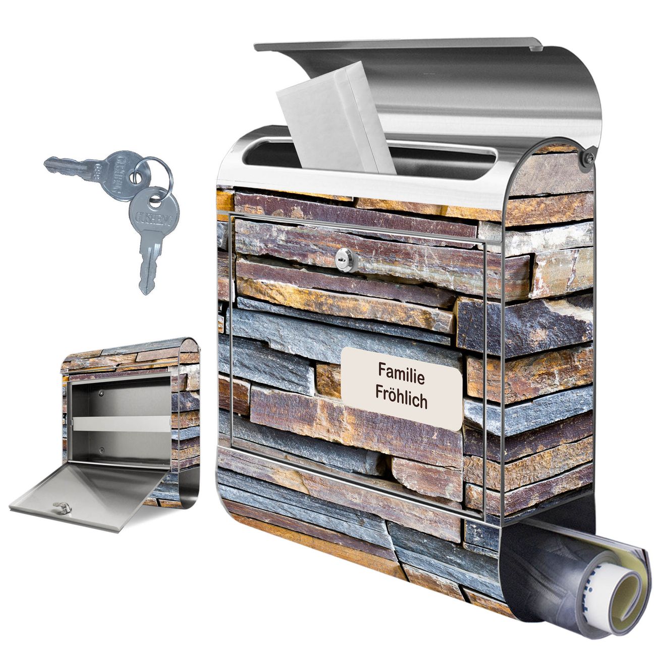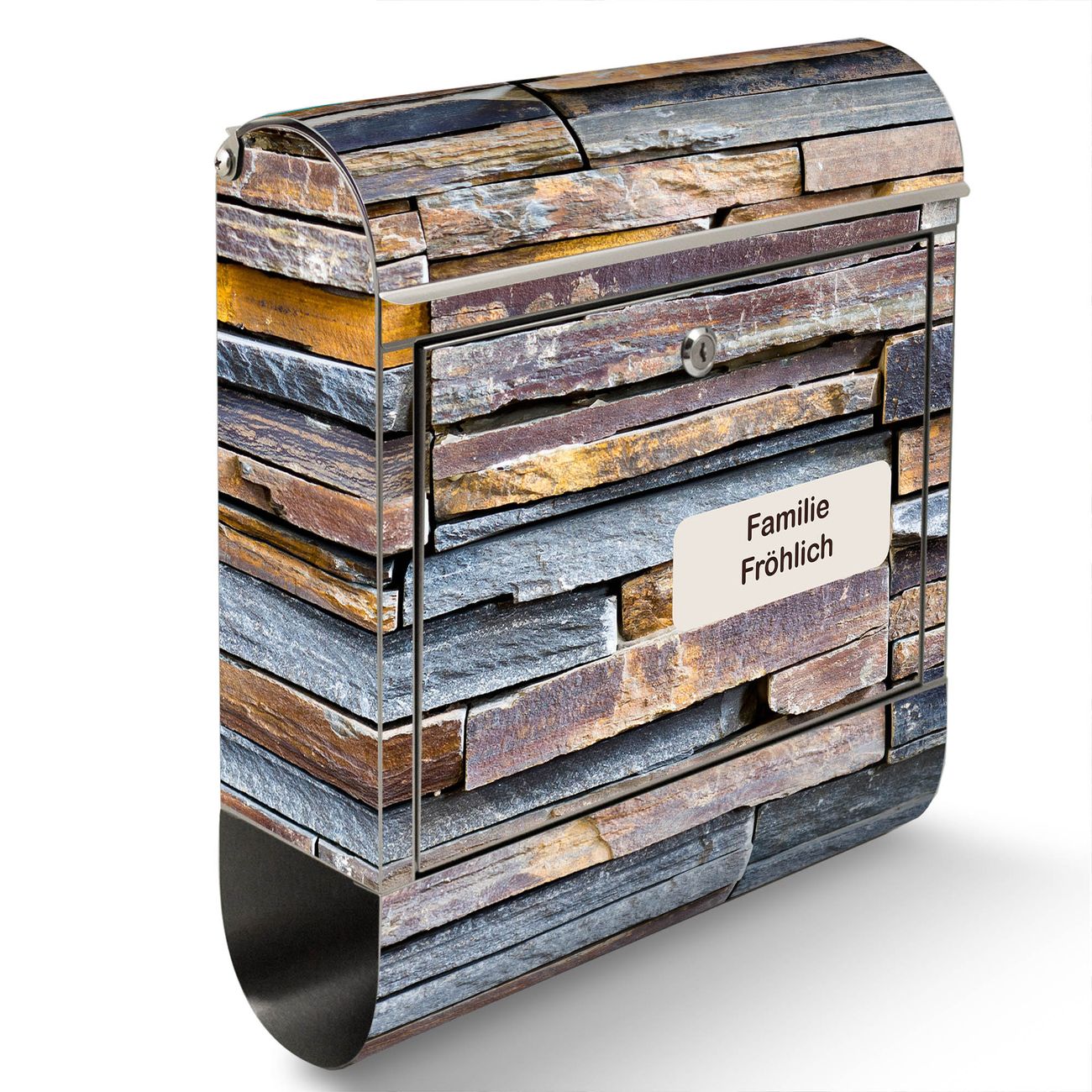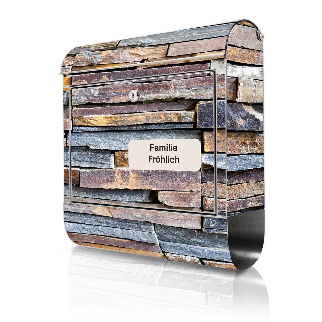 Wandbriefkasten Edelstahl Motiv Naturstein
