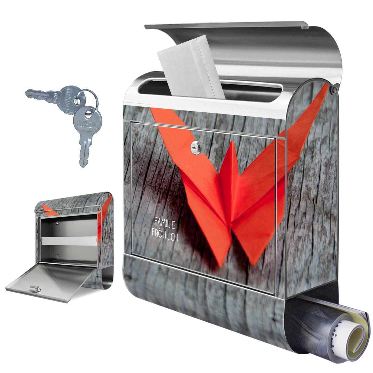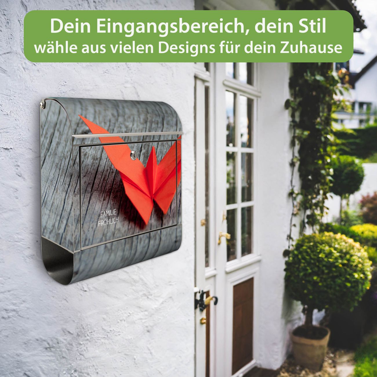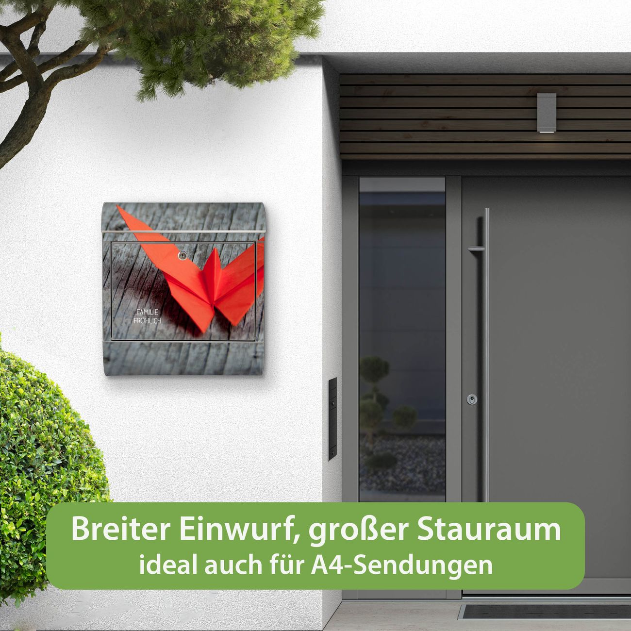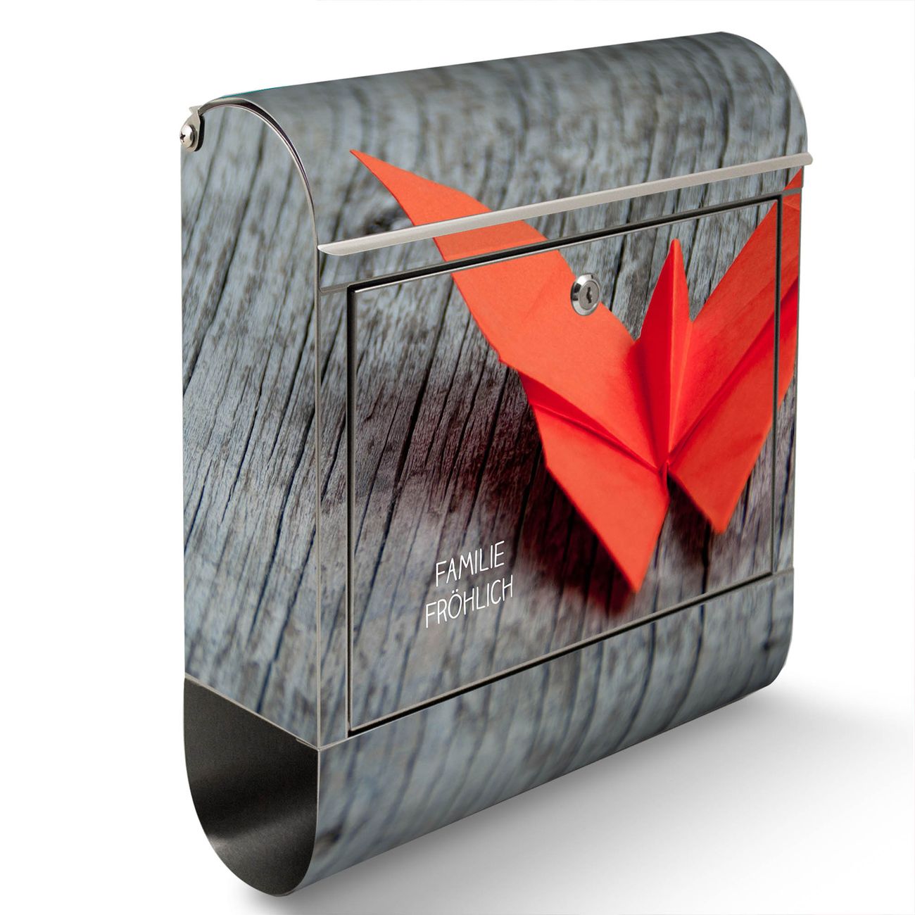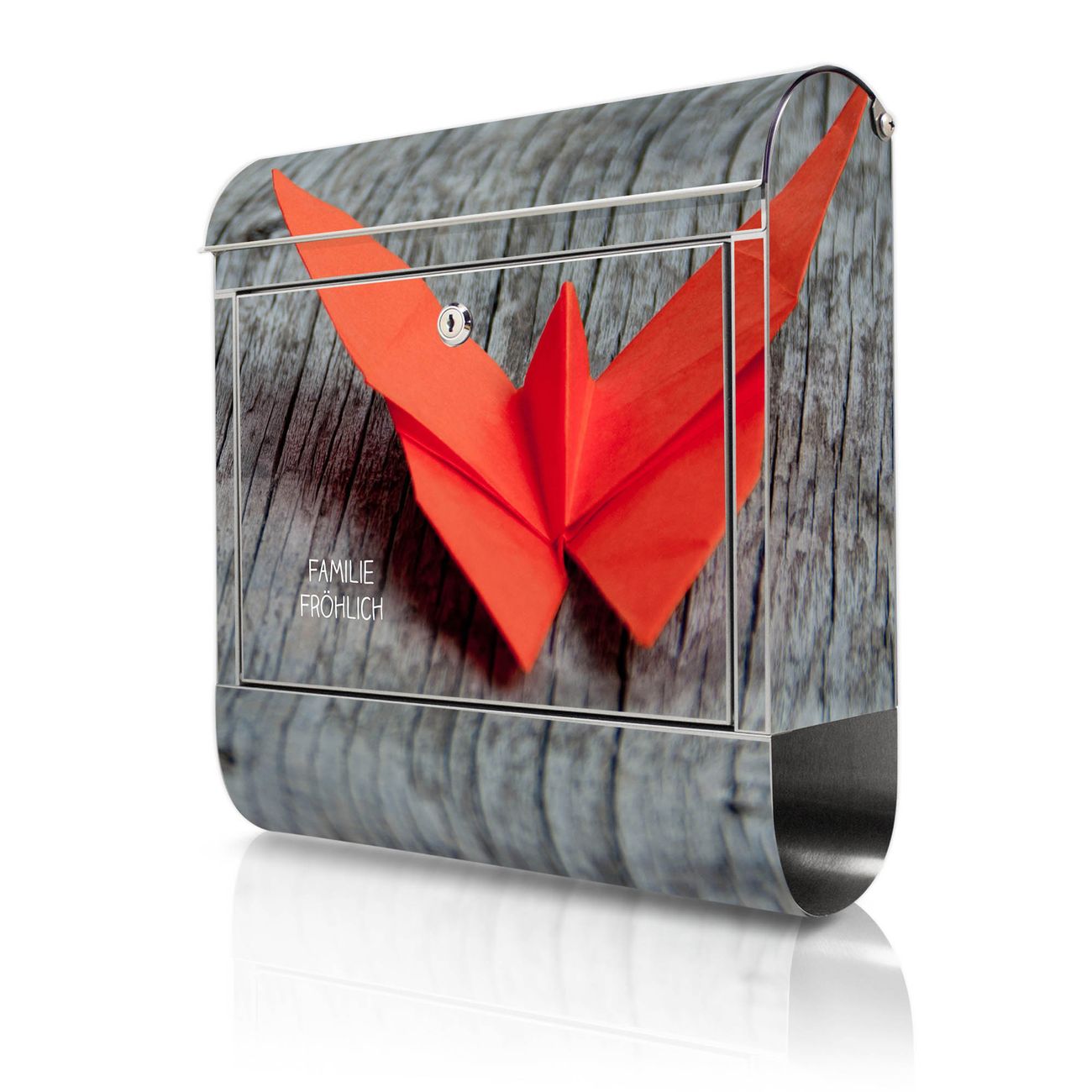 Wandbriefkasten Edelstahl Motiv Origami Schmetterling