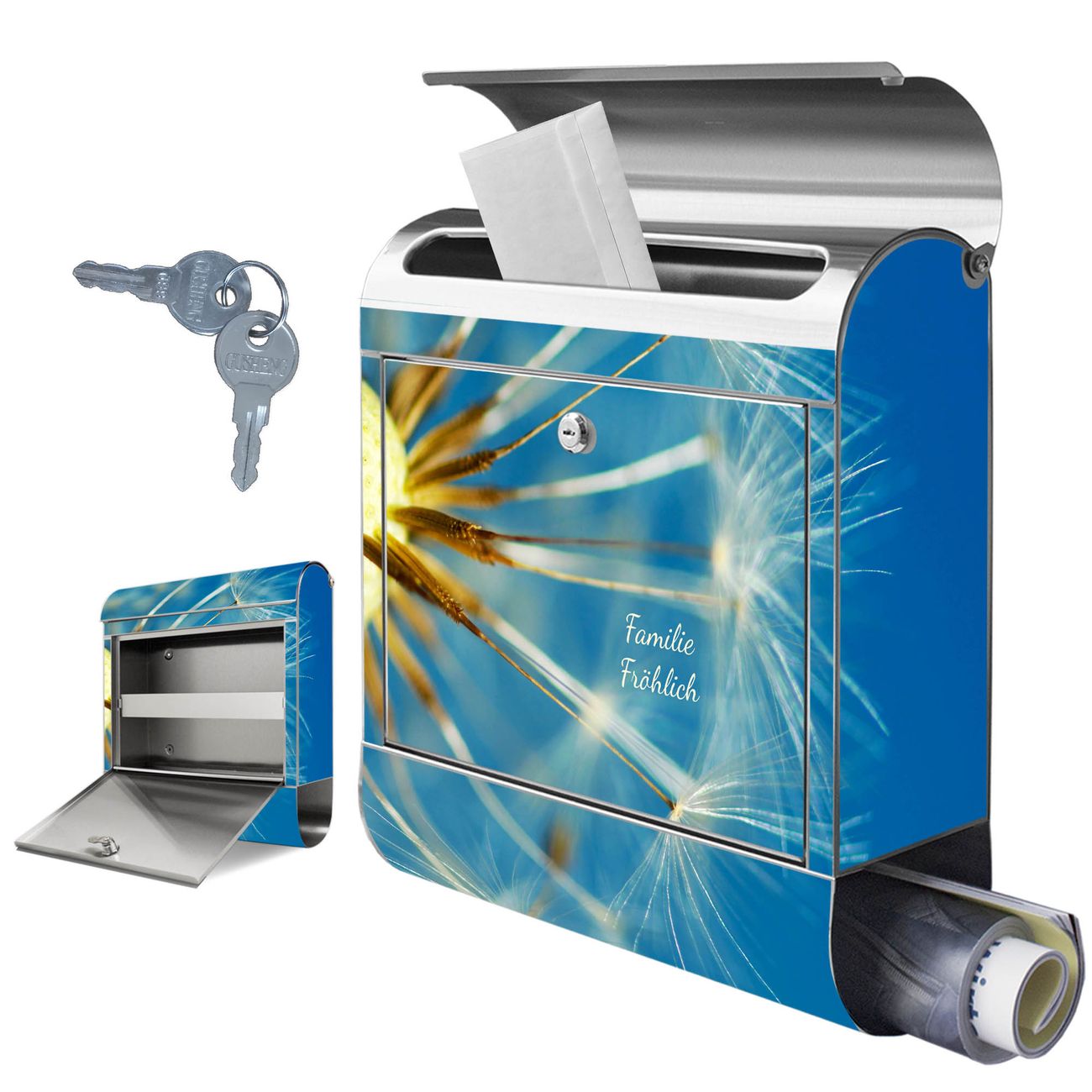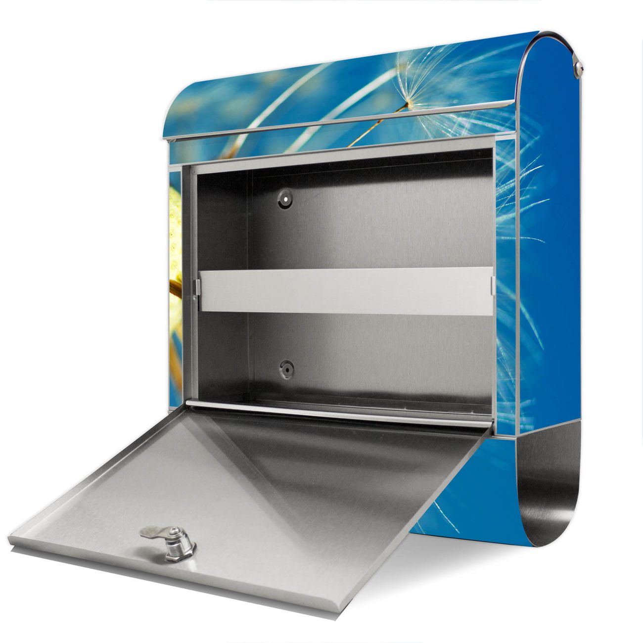 Wandbriefkasten Edelstahl Motiv Pusteblume Detail