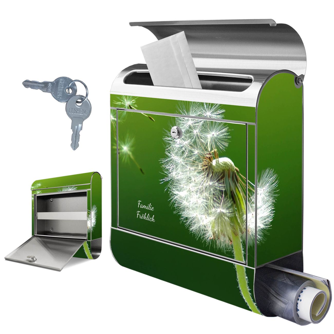 Wandbriefkasten Edelstahl Motiv Pusteblume