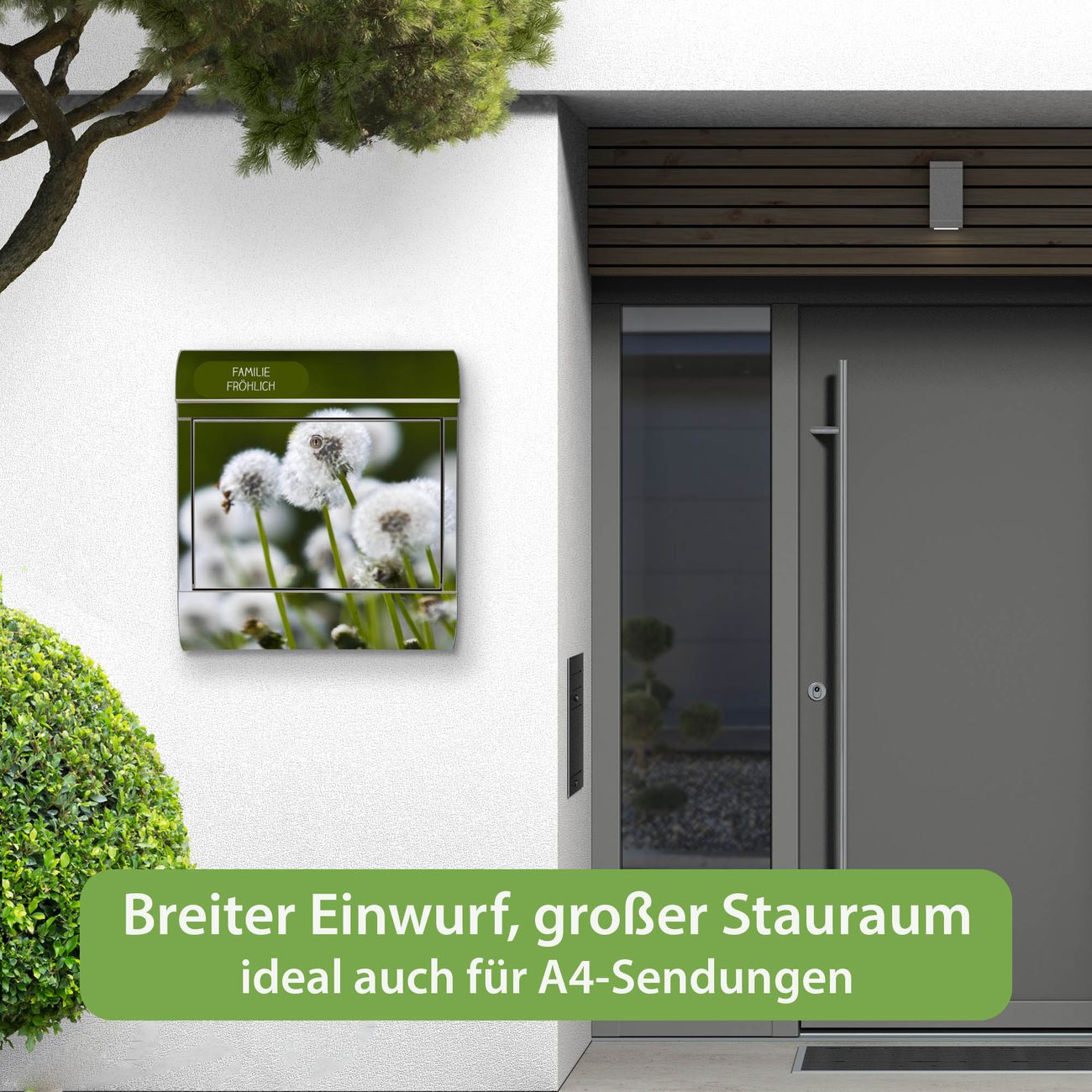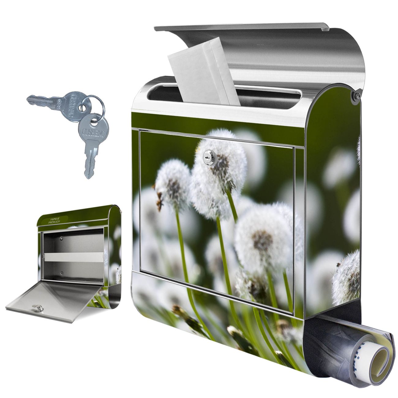 Wandbriefkasten Edelstahl Motiv Pusteblumenwiese