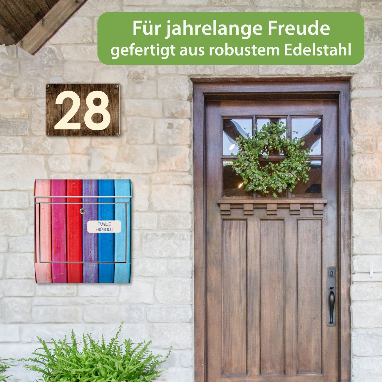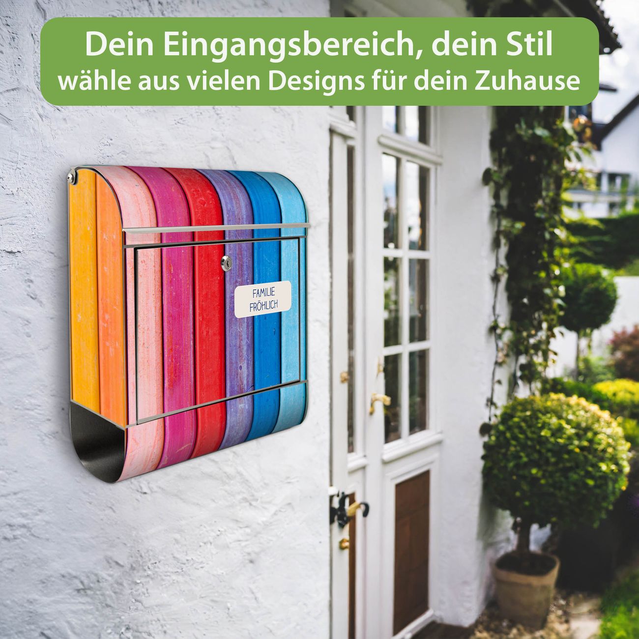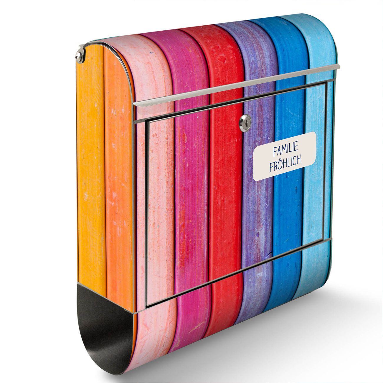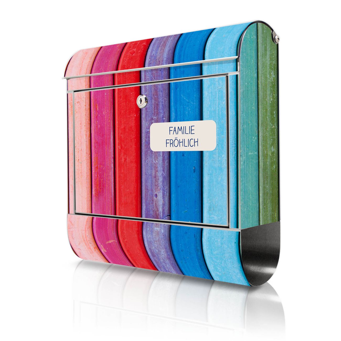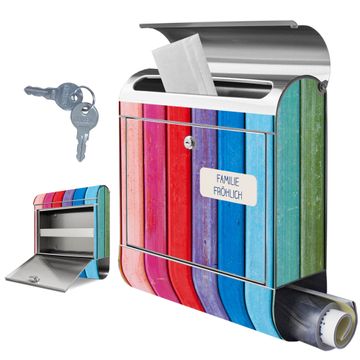 Wandbriefkasten Edelstahl Motiv Regenbogenfarben