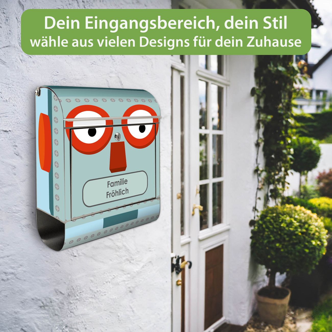 Wandbriefkasten Edelstahl Motiv Shocked Robot