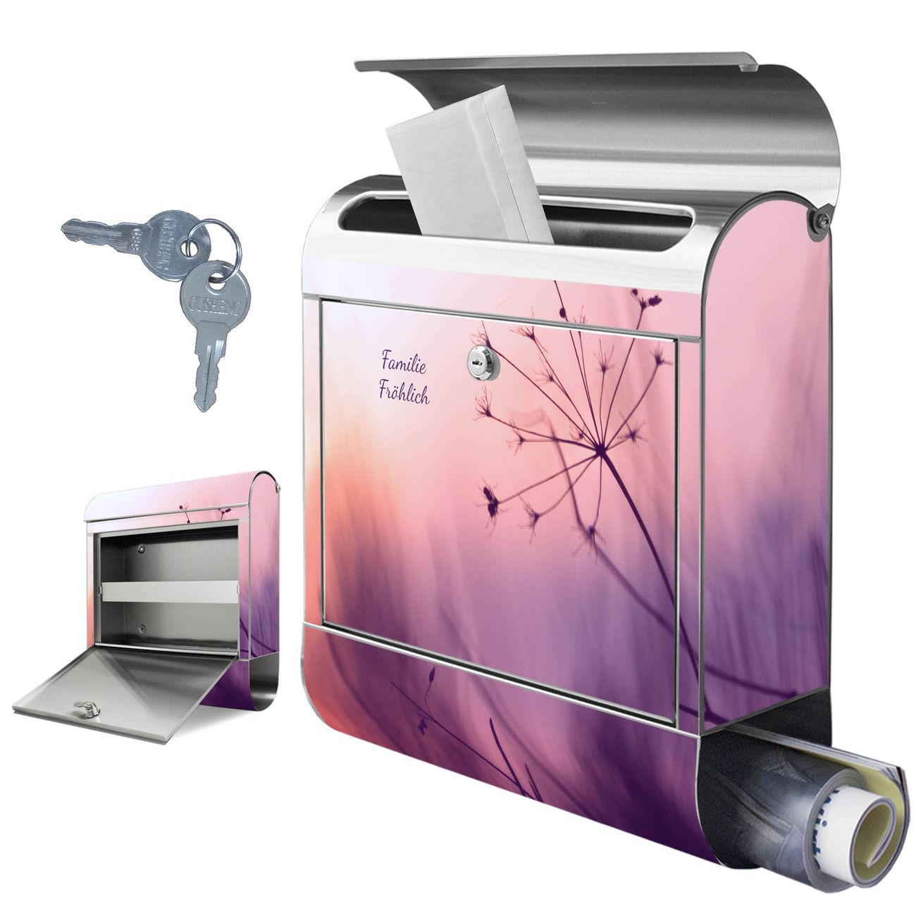Wandbriefkasten Edelstahl Motiv Sommergras