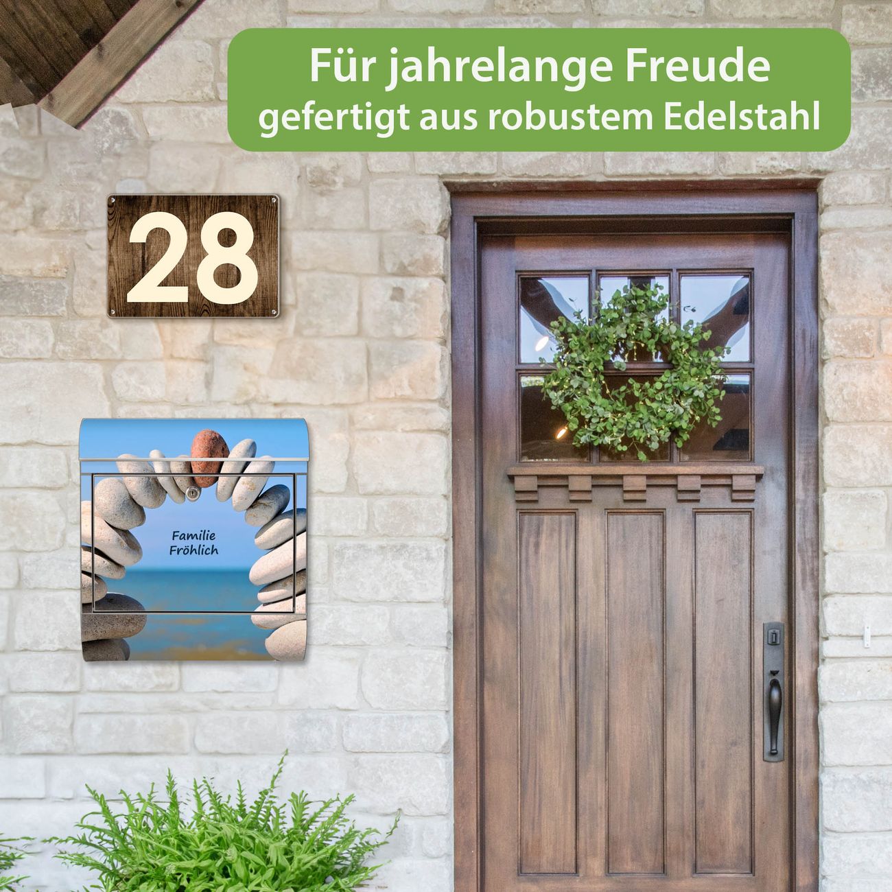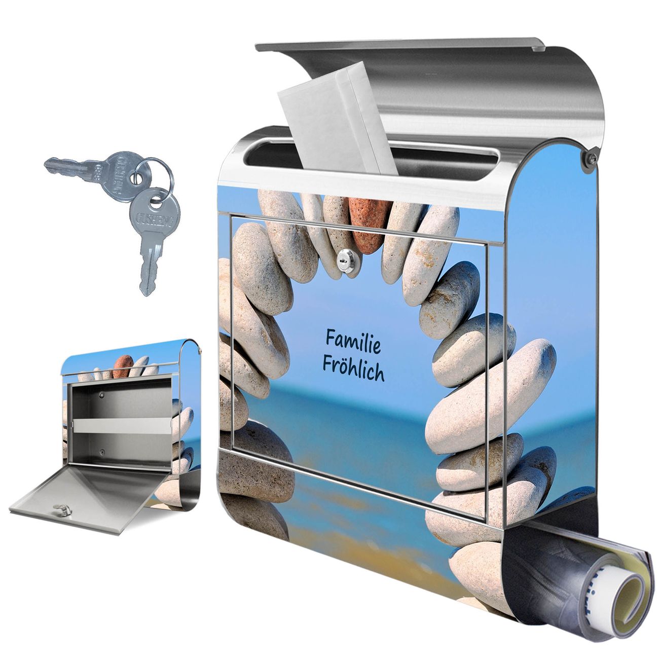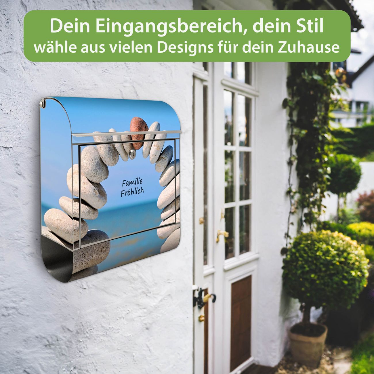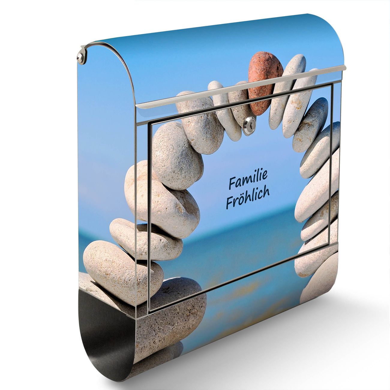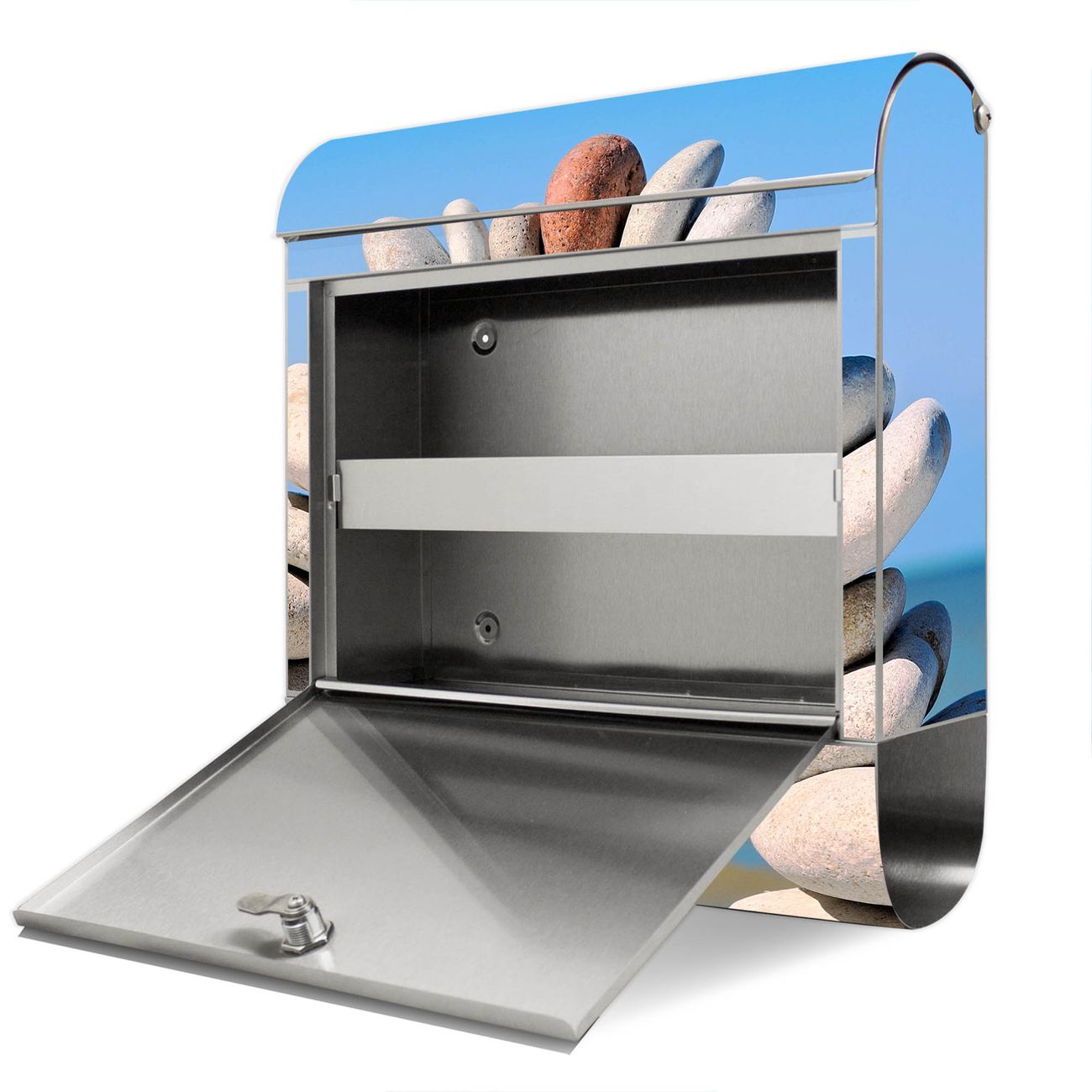 Wandbriefkasten Edelstahl Motiv Steine&Meer
