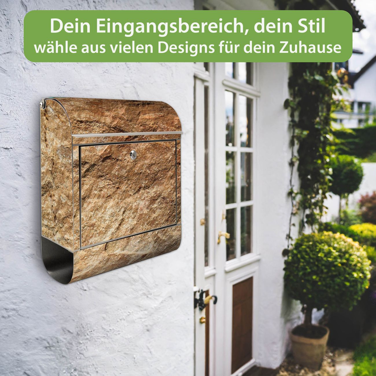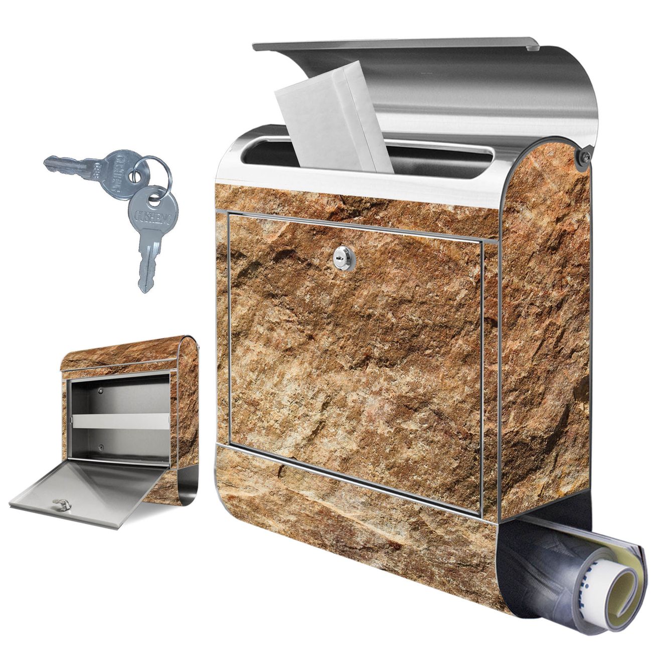 Wandbriefkasten Edelstahl Motiv Steinstruktur