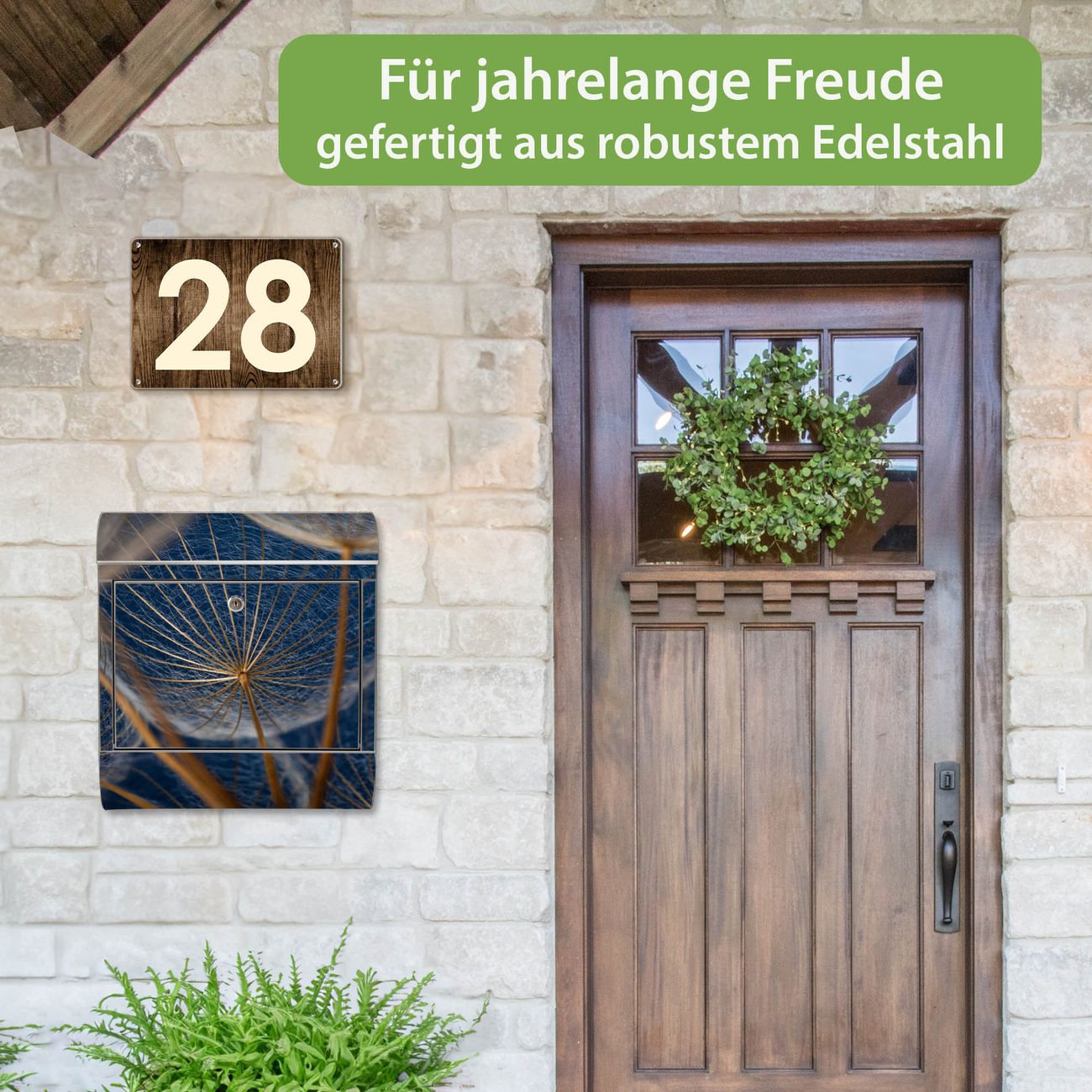 Wandbriefkasten Edelstahl Motiv Verblüht