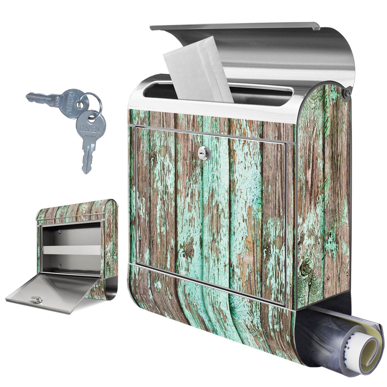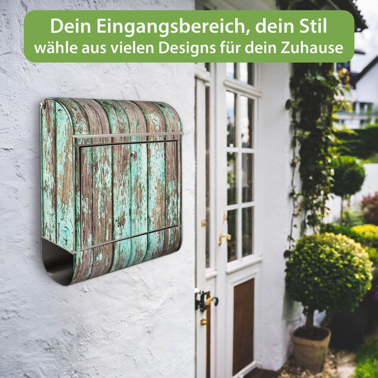 Wandbriefkasten Edelstahl Motiv Verwittertes Holz