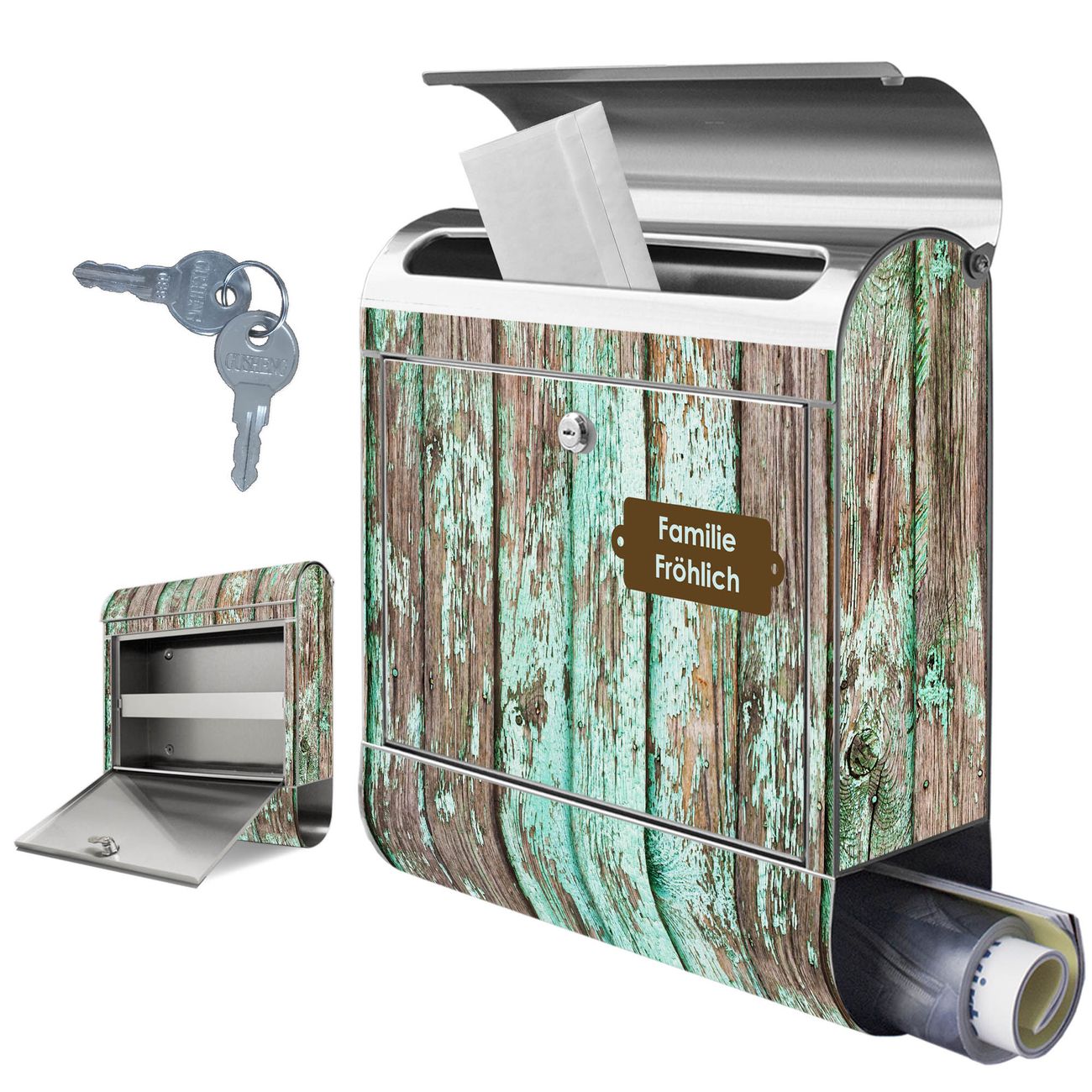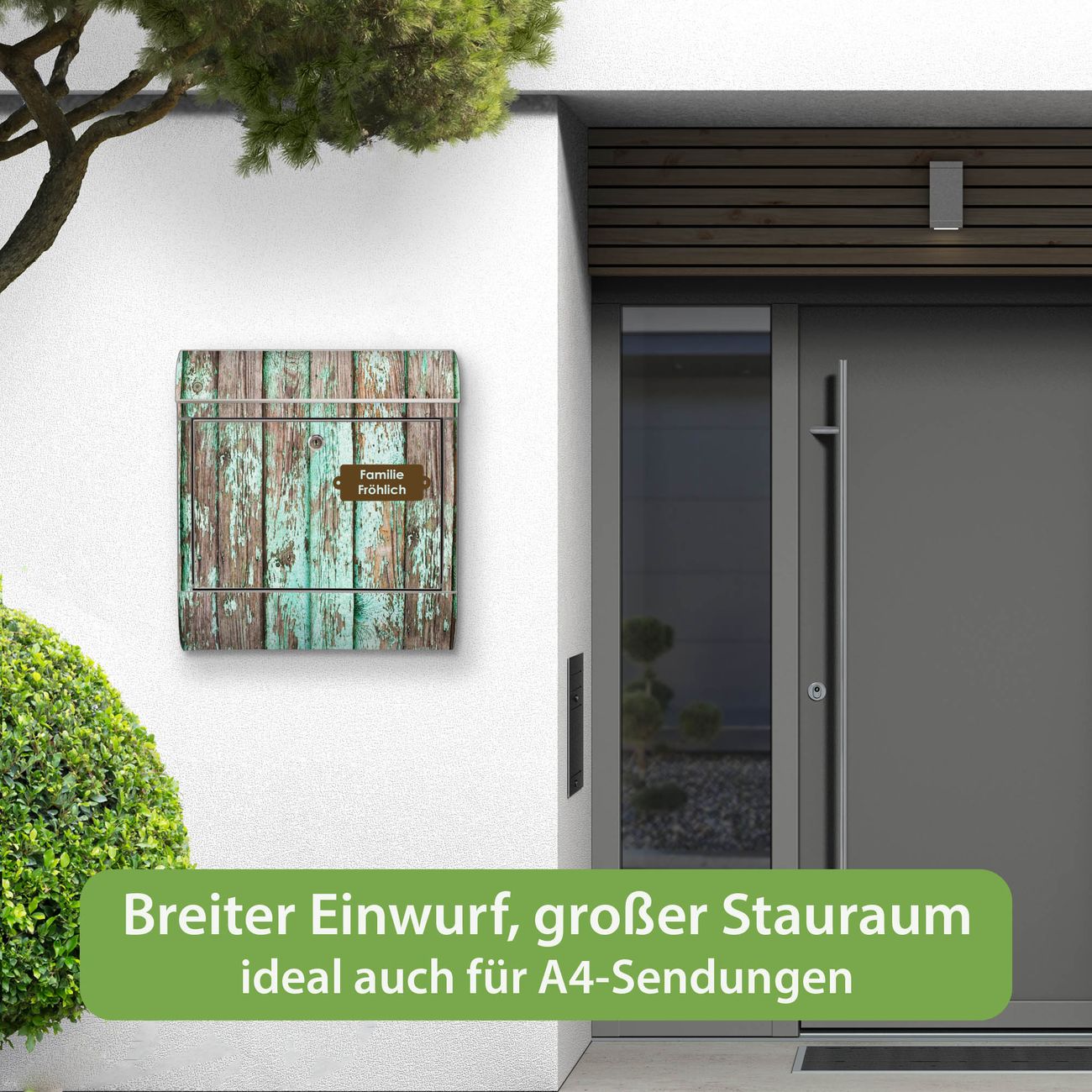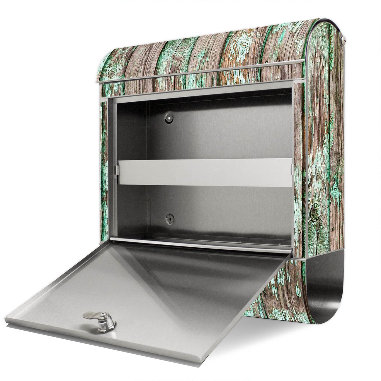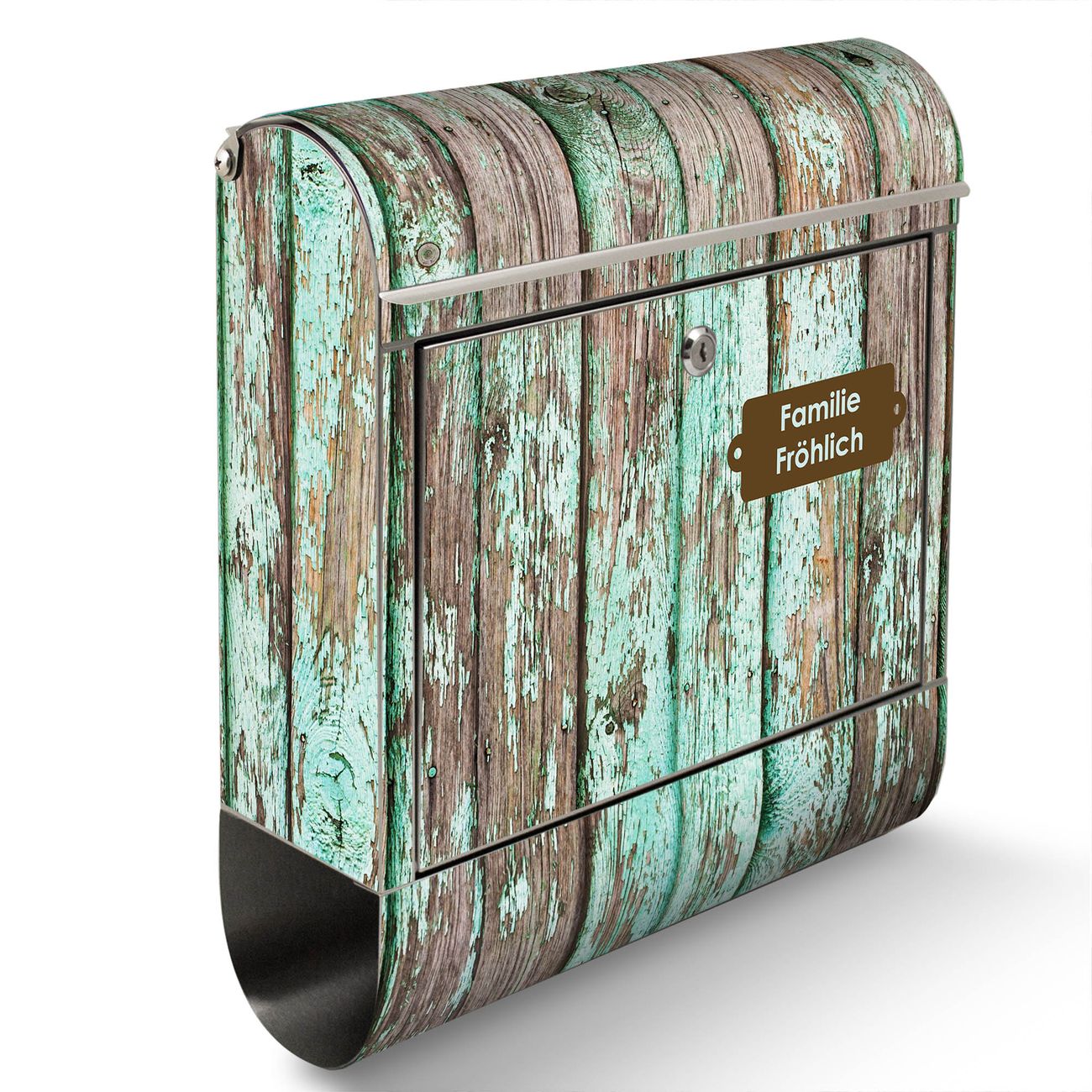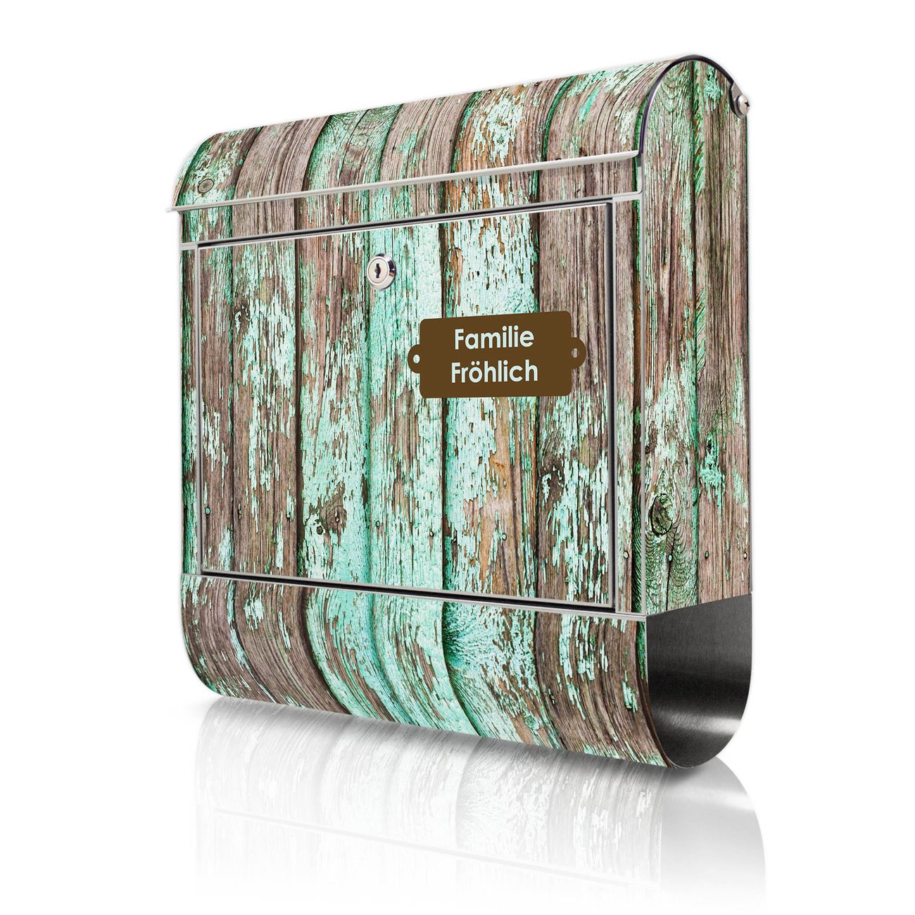 Wandbriefkasten Edelstahl Motiv Verwittertes Holz