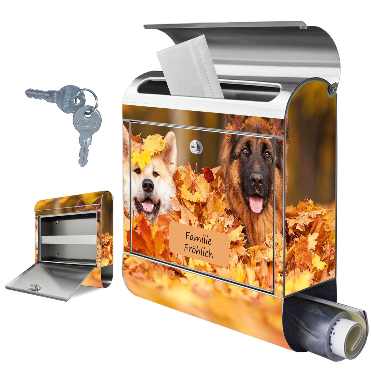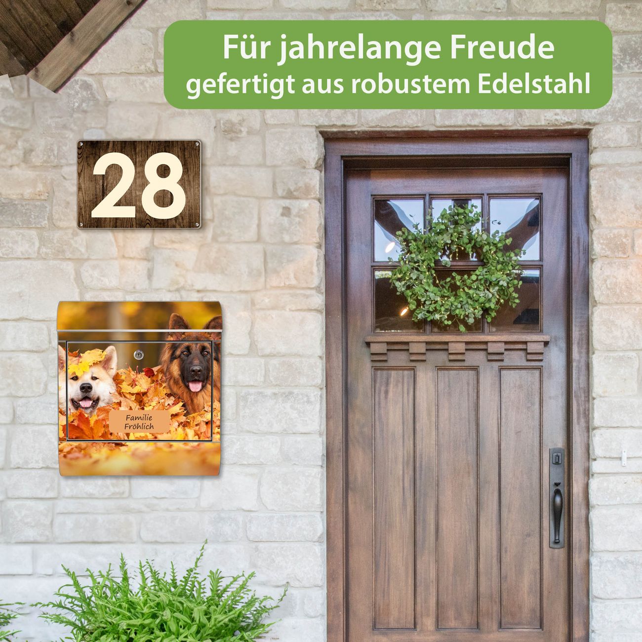 Wandbriefkasten Edelstahl Motiv Wayne und Wanda