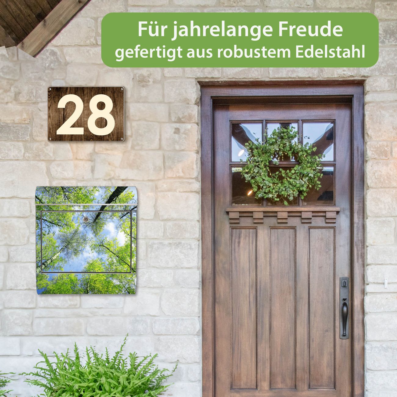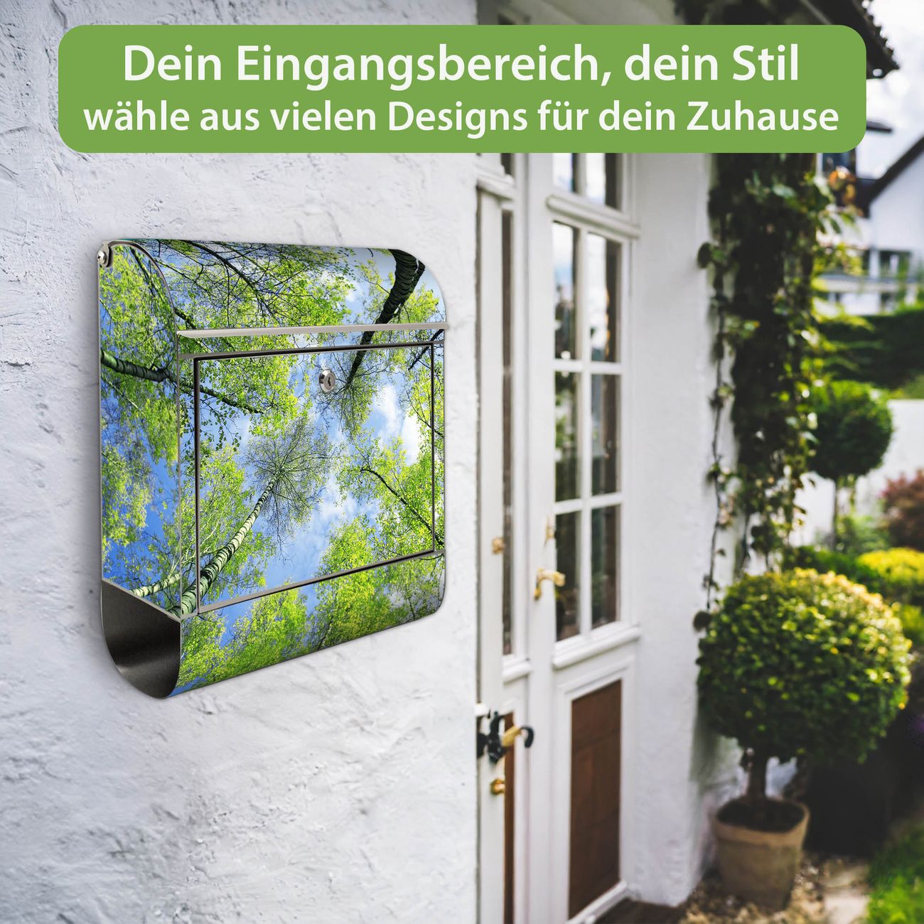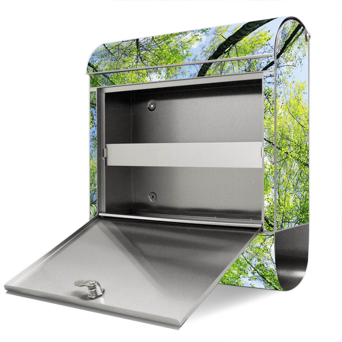 Wandbriefkasten Edelstahl Motiv Zwischen Bäumen 3