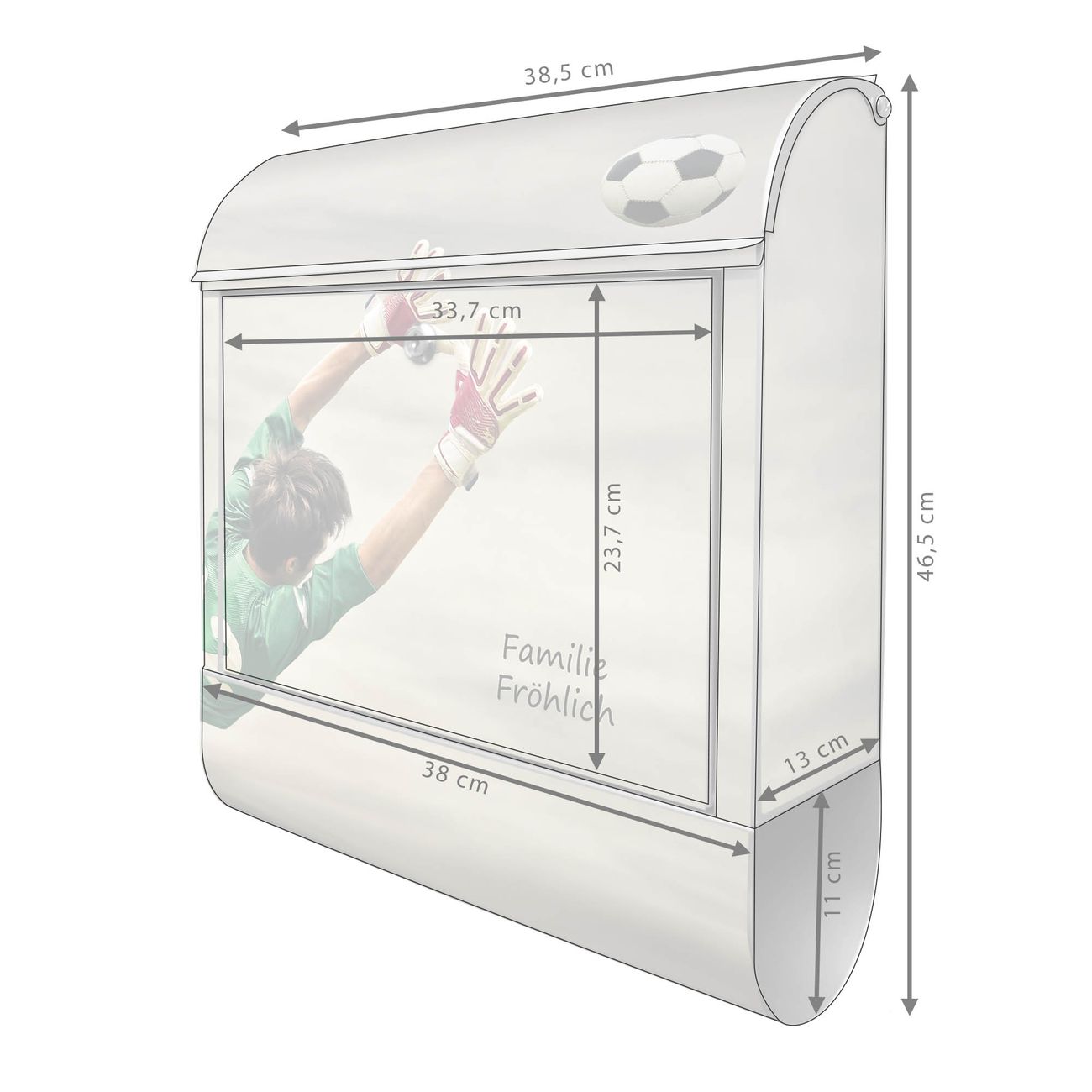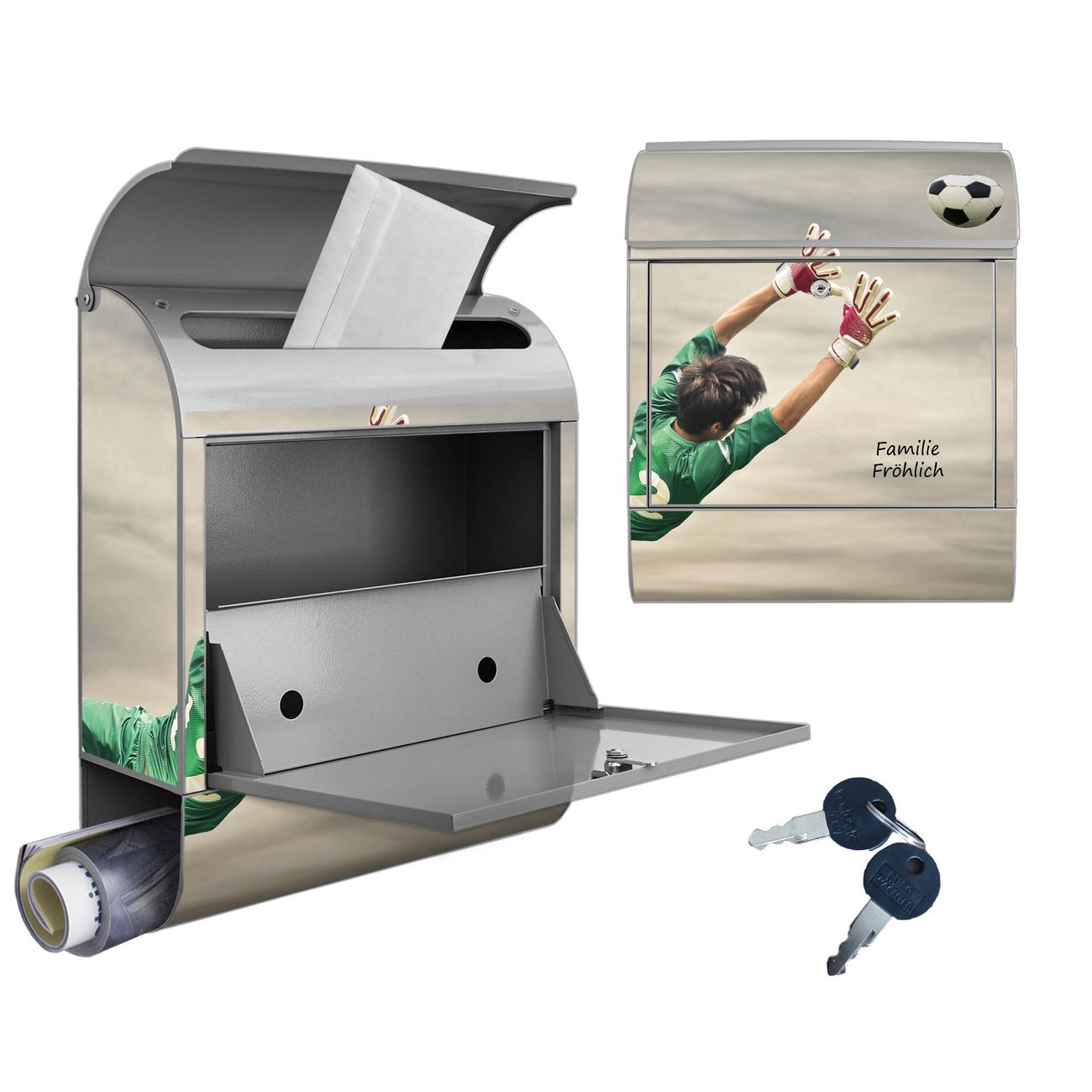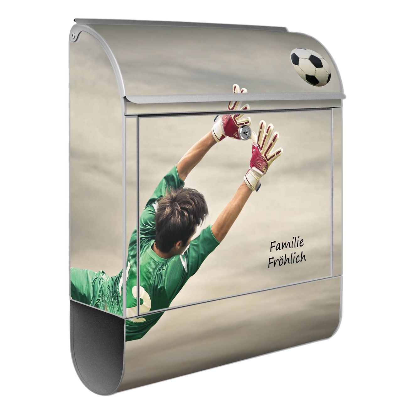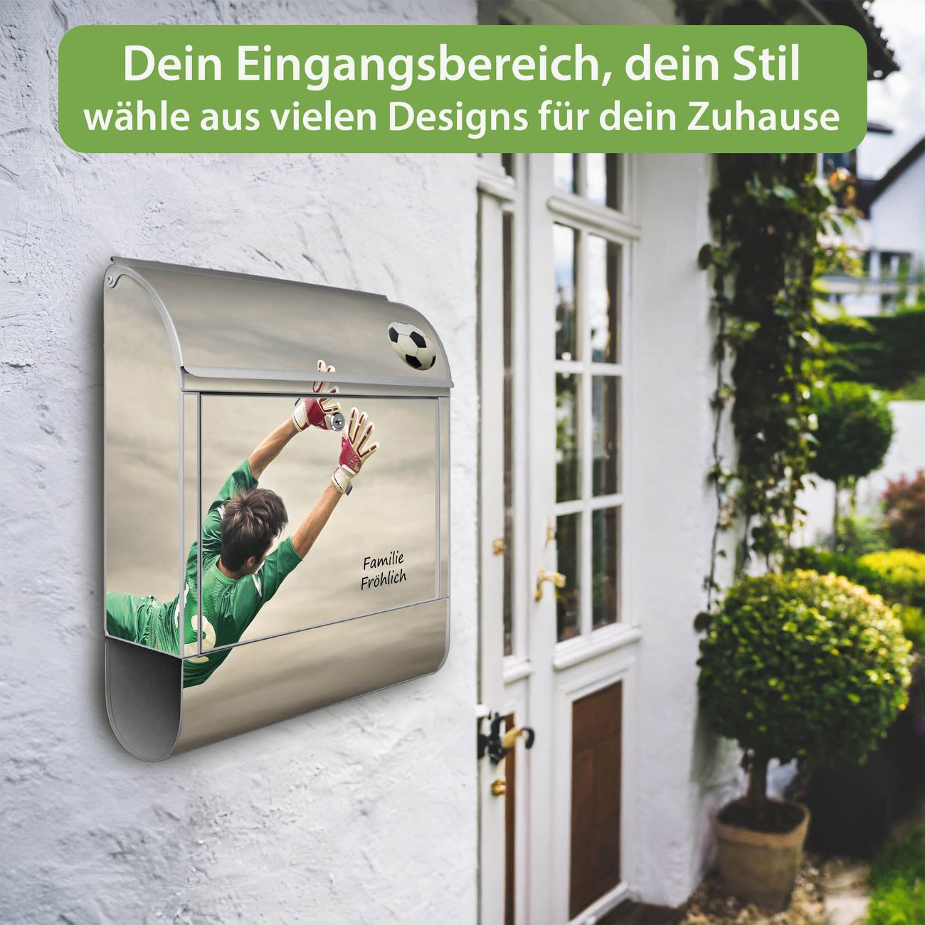DESIGN: Der Postkasten mit Motiv Motiv Abgewehrt hat ein sehr ansprechendes und ausgefallenes Design, damit entlocken Sie Ihren Nachbarn und dem Postboten ein Lächeln. Heben Sie Sich von der tristen grauen Masse ab, ohne auf Funktionalität zu verzichten. DETAILS: Der Postkasten besteht aus pulverbeschichtetem Stahl. Er ist 38x46x12,5cm groß. Das Motiv besteht aus einer wetter- und UV-resistenten Folie, die mit einem Schutzlaminat überzogen ist, sodass der Briefkasten zusätzlich vor Kratzern geschützt ist. Der Briefkasten wird mit Montagematerial, zusätzlich zwei Schlüssel sowie einer Bohrschablone geliefert. NUTZEN: Sie können diesen Briefkasten sowohl als Wandbriefkasten montieren oder einen passenden Ständer kaufen und als Standbriefkasten einbetonieren. Die Größe bietet genügend Platz für Sendungen aller Art, der Einwurf fasst auch größere A4 Sendungen. BANJADO: Ihr Briefkasten wird in Sachsen in einer kleinen Manufaktur von Hand veredelt. Die Motivfolie ist lösungsmittelfrei und schutzlaminiert für einen langen Halt. Wir legen großen Wert auf die Verbindung von Funktionalität und Design. Sie erhalten Handarbeit aus Sachsen.