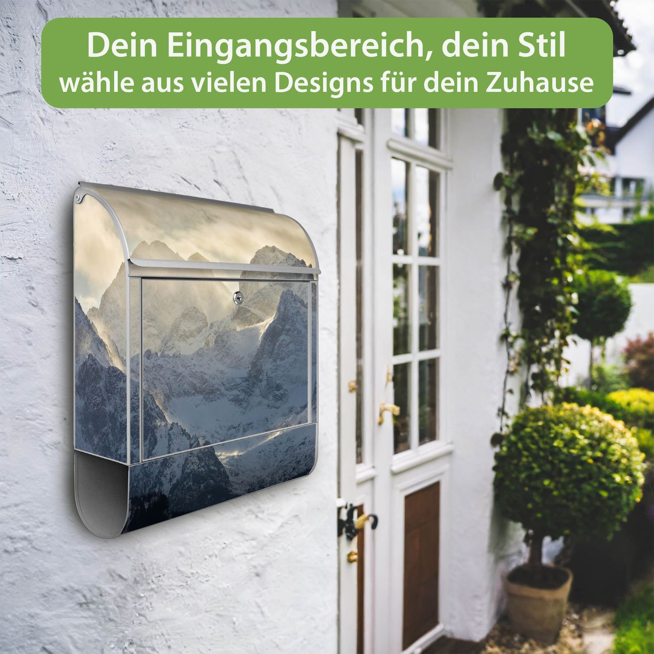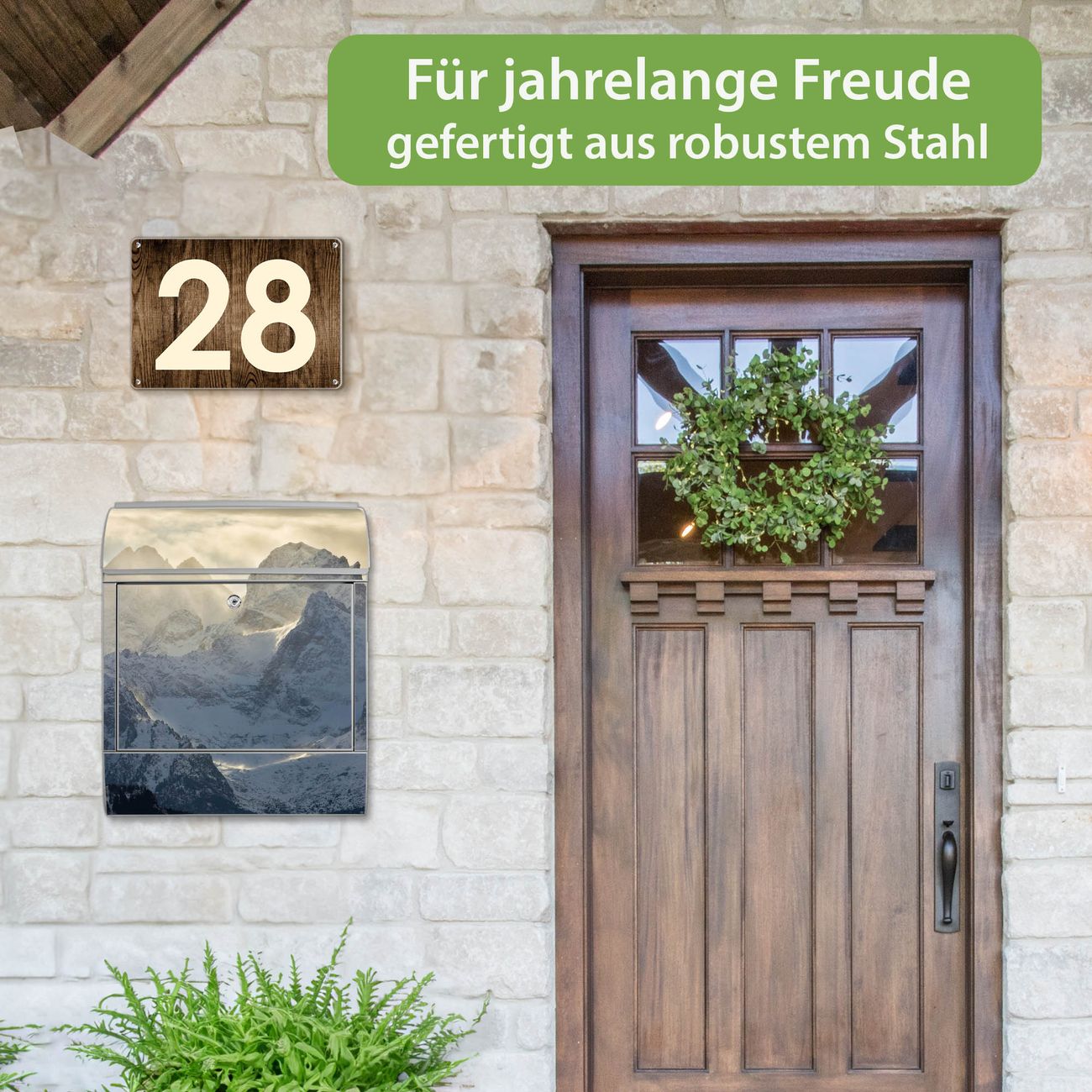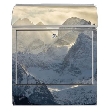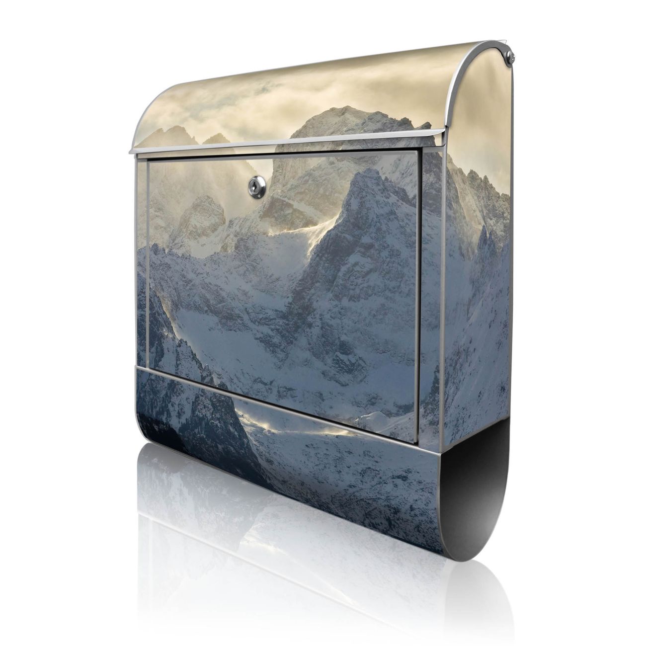 Großer Stahl Briefkasten Motiv Alpen im Sonnenschein