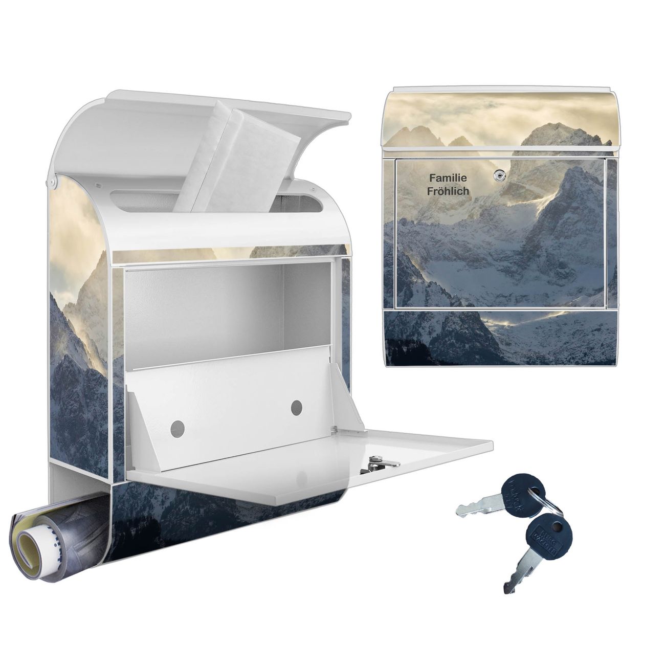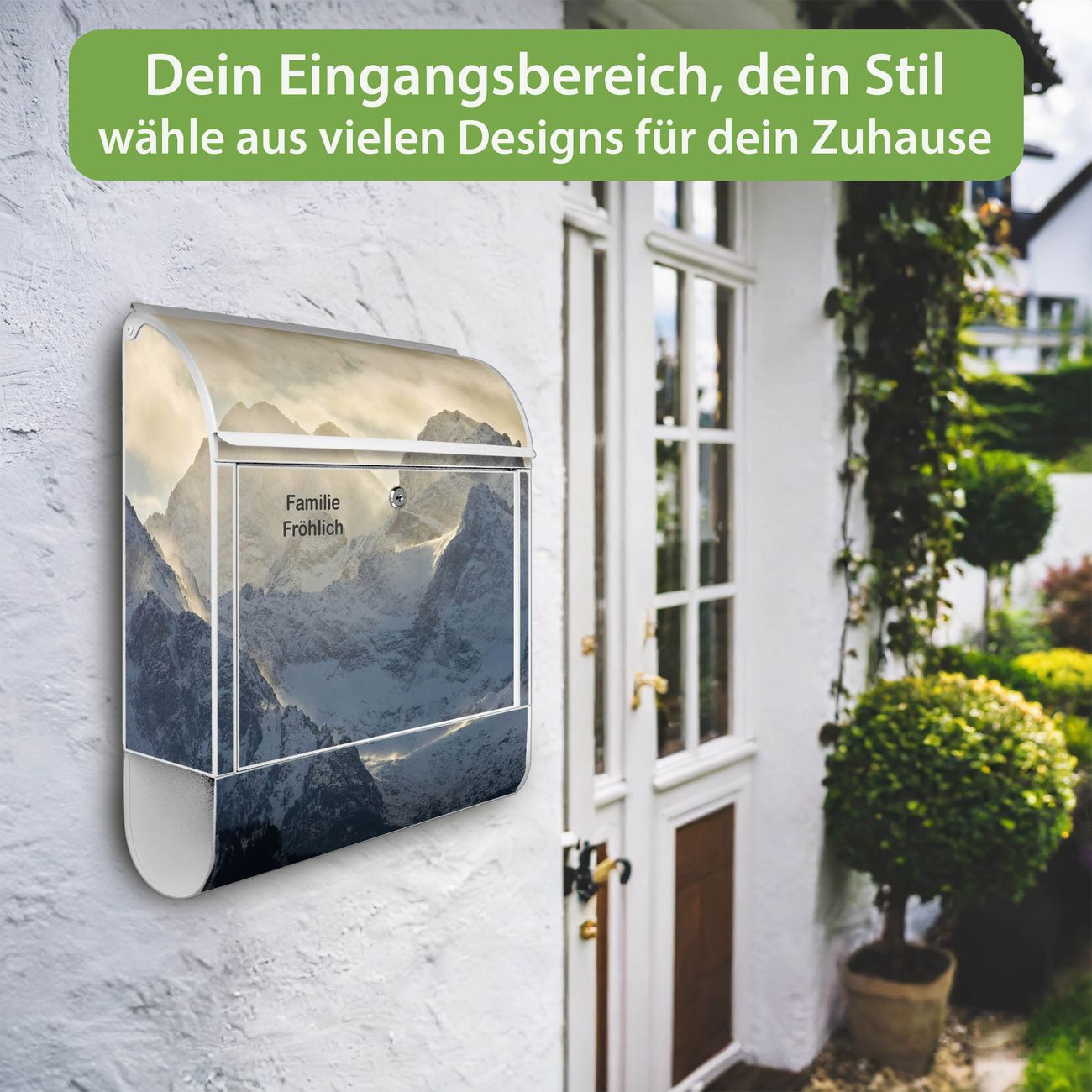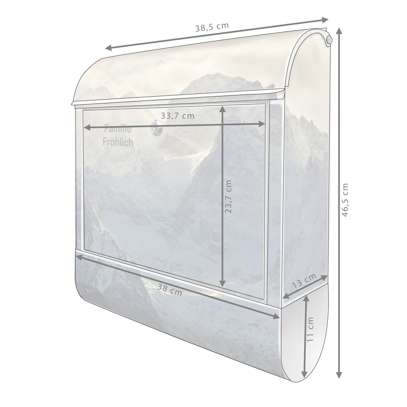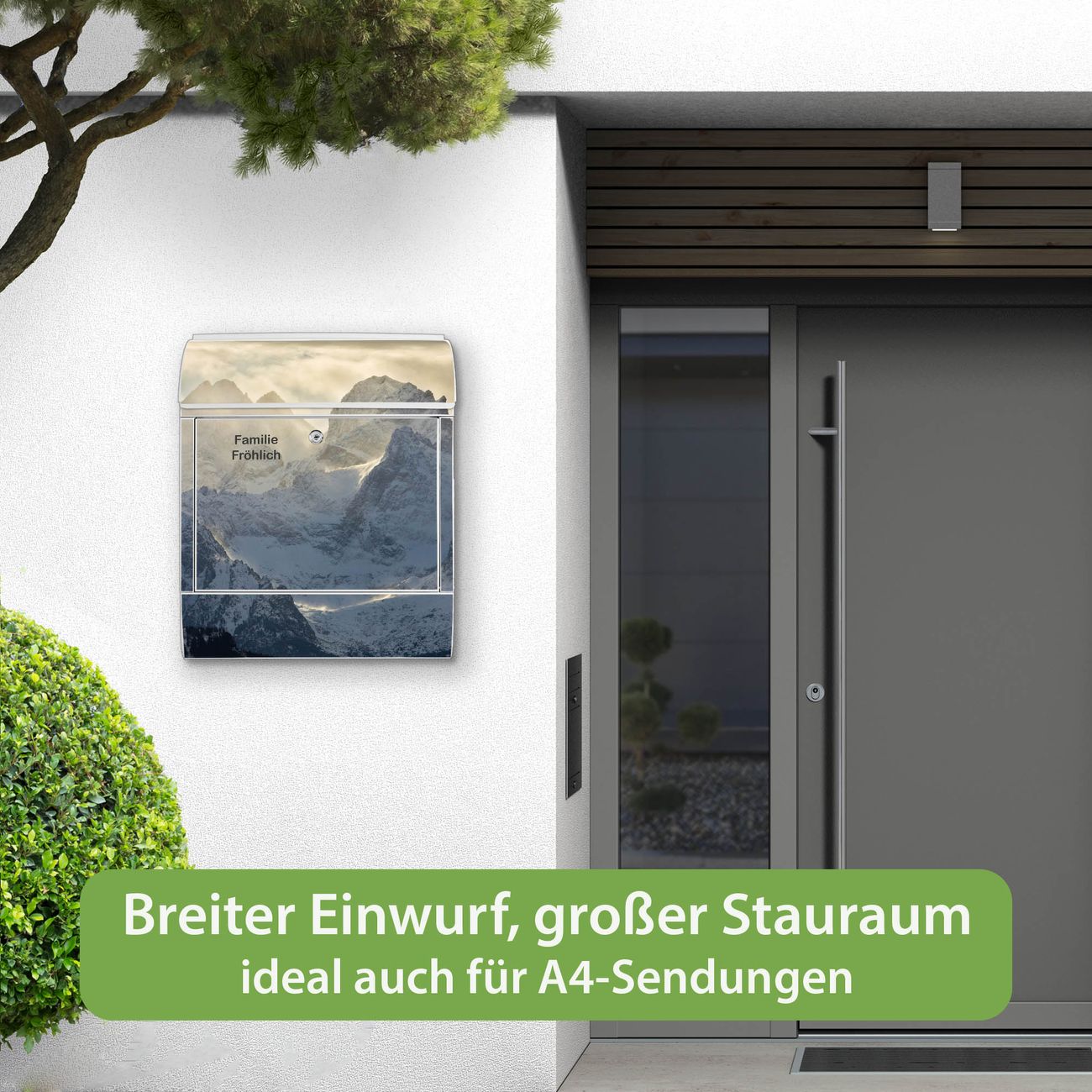 Großer Stahl Briefkasten Motiv Alpen im Sonnenschein