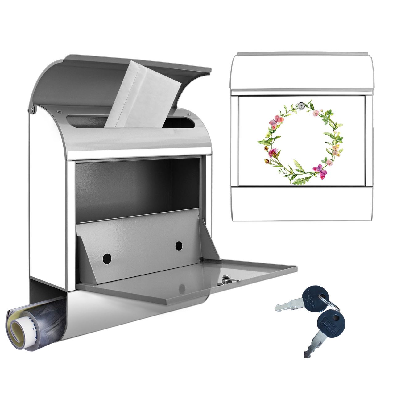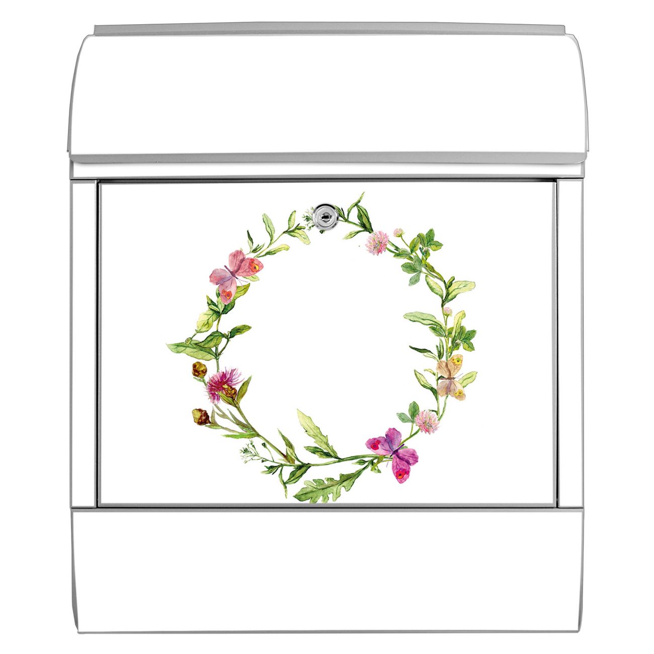 Großer Stahl Briefkasten Motiv Aquarell Blumenring